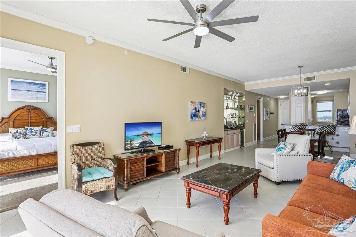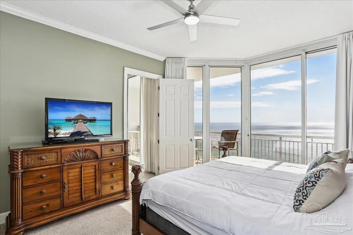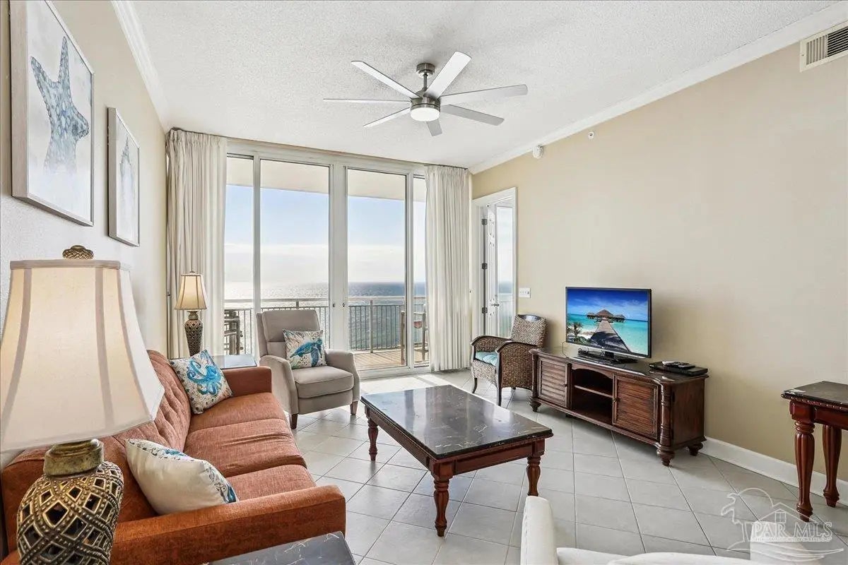 Refresh your spirit with Gulf-front beach views from this 17th floor Penthouse level with coded elevator for privacy. Waterfront balcony has access from both the living area and the Primary suite, providing the perfect place to greet the sunrise and unwind with unforgettable sunsets. This furnished 2-bedroom, 2-bath condominium features a spacious living room with sliding doors to the balcony, soaring 10-foot ceilings, granite-top wet bar, designer tile flooring, new ceiling fans and light fixtures, and a generous dining area. The kitchen offers granite countertops, tall cabinetry, a bistro dining nook, and stainless-steel appliances, including a 2024 smooth-top range and microwave, a 2019 dishwasher, 2018 refrigerator. Washer and dryer included. 2019 and 2025 water heaters. The waterfront primary suite provides direct balcony access and an en-suite bath with a separate tiled shower and relaxing garden tub. Enjoy privacy and convenience with a coded elevator serving this 17th-floor residence. Whether you are seeking an investment vacation rental, a second home, or a primary residence, this property offers exceptional flexibility. The Pearl is a gated Gulf-front paradise featuring two elevators, an exercise room overlooking the pool area, two large swimming pools, a hot tub, pergola, a Gulf walk-over, and on-site management. Navarre Beach is truly a hidden treasure, known for its sugar-white sand beaches and Emerald waters. Enjoy swimming, snorkeling, scuba diving, fishing, scenic walking and biking paths, and access to the Gulf Islands National Seashore. Spend your days fishing from the Gulf Coast’s longest pier, exploring reefs, collecting seashells, or simply relaxing by the water. Only four miles long and one of just ten beaches in the nation protected as a National Seashore, Navarre Beach is often called “Florida’s Best-Kept Secret and Most Relaxing Place.” Conveniently located between Destin and Pensacola Beach.