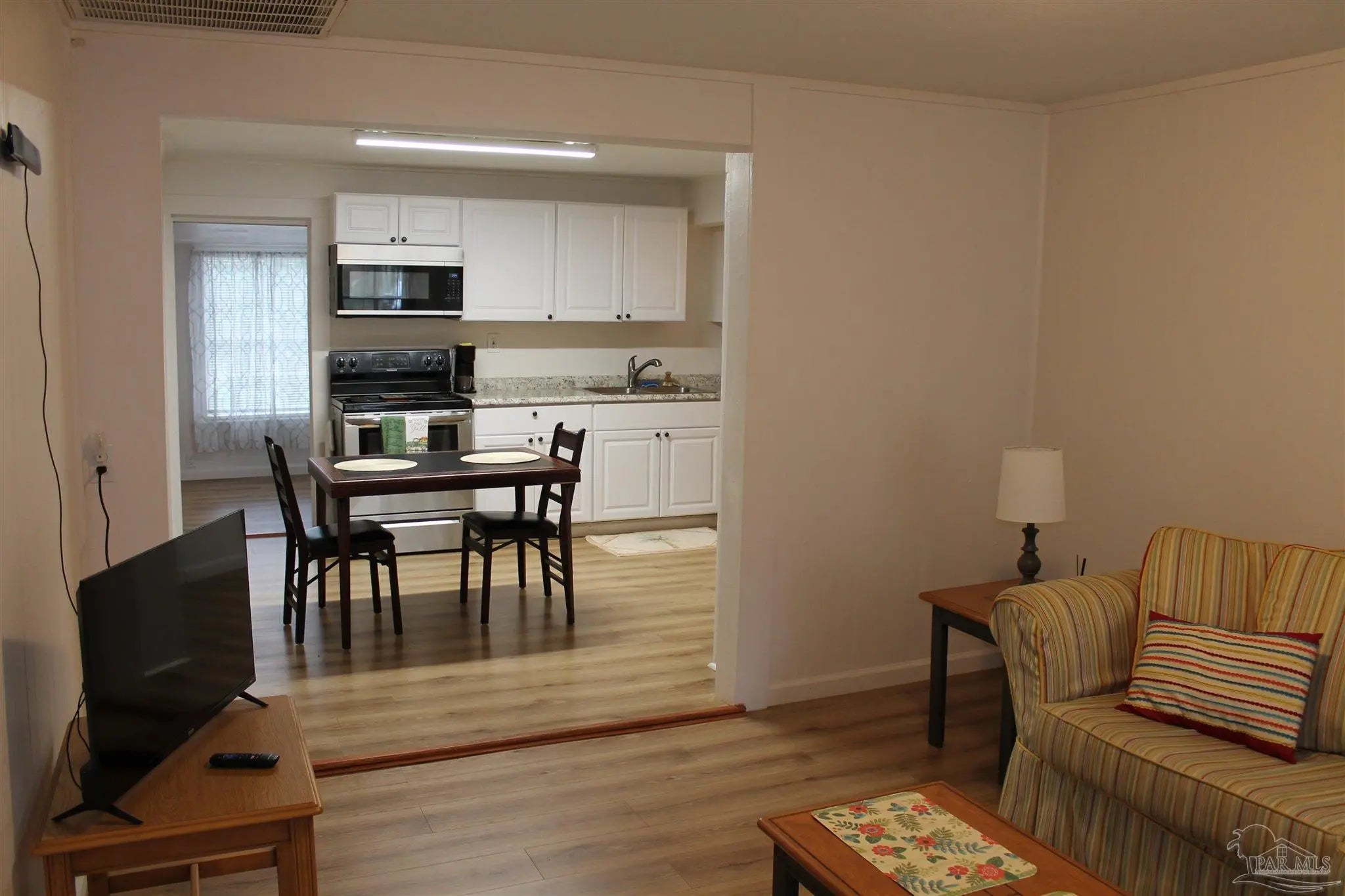 Welcome home to this charming, move-in-ready residence filled with curb appeal from the moment you arrive. Step inside to a spacious, open-concept living area that flows effortlessly into a fully updated kitchen—perfect for entertaining, hosting gatherings, or enjoying quiet evenings at home. Luxury vinyl plank flooring runs throughout the home, adding a modern, cohesive touch to every space. The interior laundry room is conveniently located just off the kitchen, offering everyday functionality without sacrificing style. The thoughtfully designed layout places the primary bedroom at the rear of the home, providing added privacy and a peaceful retreat. The bathroom has also been fully updated with fixtures and finishes that complement the home’s contemporary feel. Outside, the shaded lot offers a cool escape during warmer months, with ample space to create your ideal outdoor oasis—whether that’s grilling, relaxing, or room to play for kids and pets. With a roof less than five years old, this home delivers peace of mind along with charm. This is a wonderful opportunity to own a beautifully updated home. Schedule your showing today and see all it has to offer!
