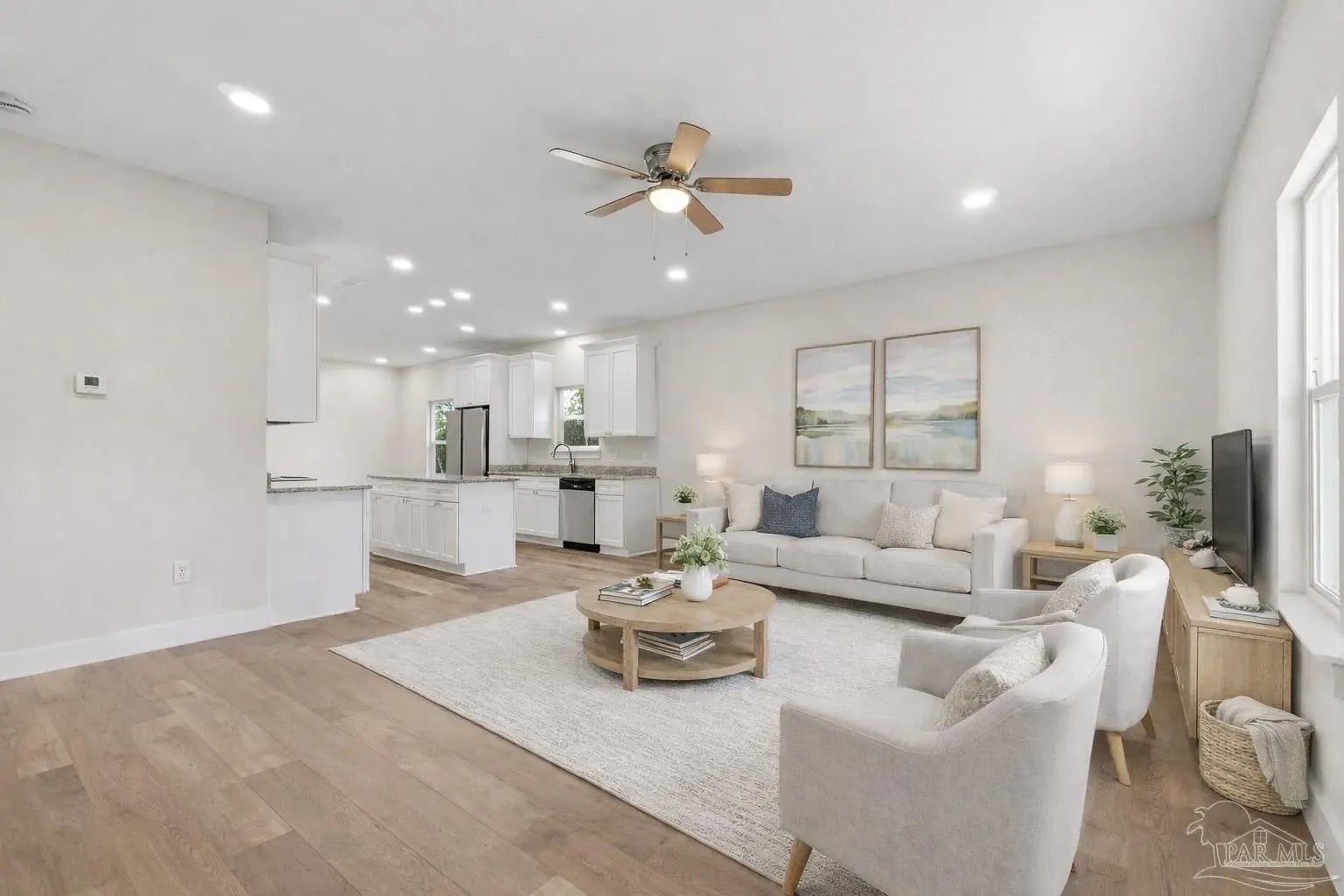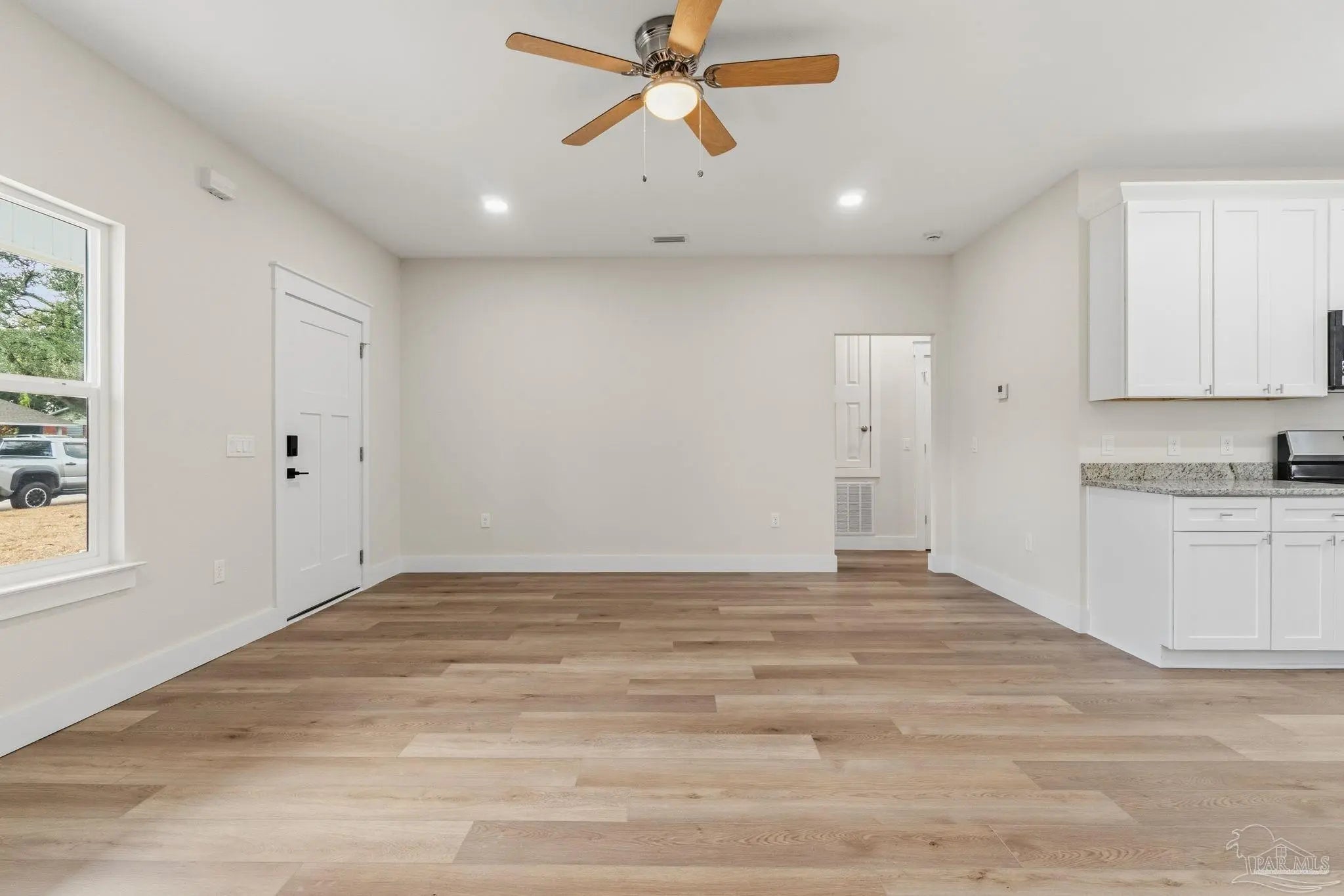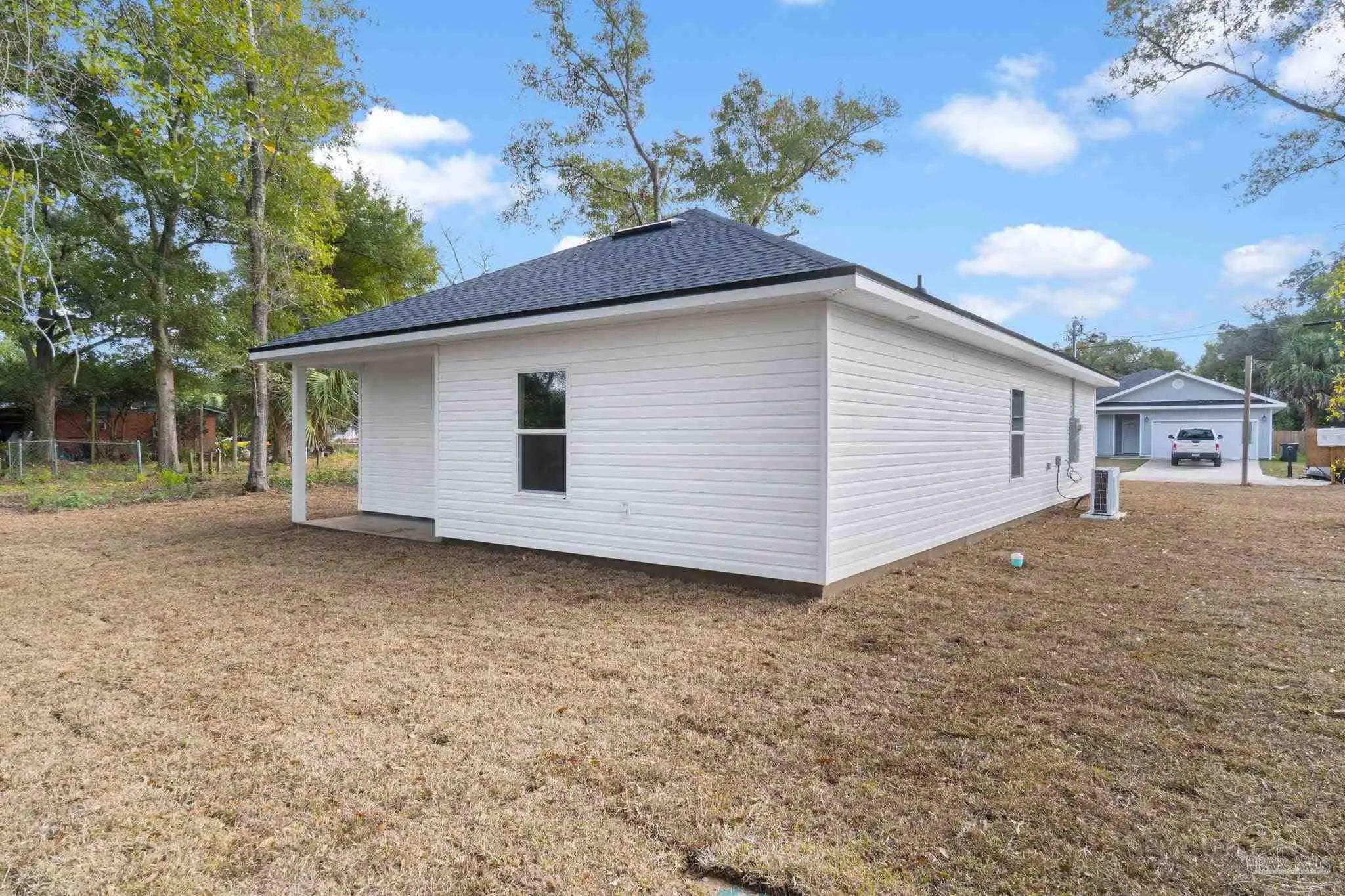 Construction is now complete on this thoughtfully built new construction 3-bedroom, 2-bath home offering modern finishes, efficient use of space, and a highly convenient location. Built by a local builder with an emphasis on craftsmanship and long-term durability, this home reflects intentional design choices rather than mass-produced finishes. Just minutes from downtown Pensacola, NAS Pensacola, and a short drive to the beaches, the property is well positioned for owner-occupants as well as both short- and long-term rental buyers, with proximity to the coast creating potential for short-term rental use where permitted. Inside, the open-concept living area features durable LVP flooring and a well-appointed kitchen with white shaker cabinetry, granite countertops, and quality fixtures selected for everyday use. The layout is practical and comfortable, with three bedrooms and two full bathrooms designed to maximize function without wasted space. The home is equipped with a high-efficiency 18 SEER HVAC system, and when paired with energy-efficient double-pane windows, ample insulation, and modern construction standards, it is expected to offer affordable and efficient heating and cooling costs. Covered front and rear porches add usable outdoor living space, while architectural shingles, impact-rated exterior doors, and low-maintenance exterior finishes contribute to ease of ownership and long-term performance. The clean, modern exterior provides strong curb appeal while fitting naturally into the surrounding neighborhood. Move-in ready and built with care from start to finish, this home delivers the benefits of new construction paired with the added confidence that comes from a locally built project.