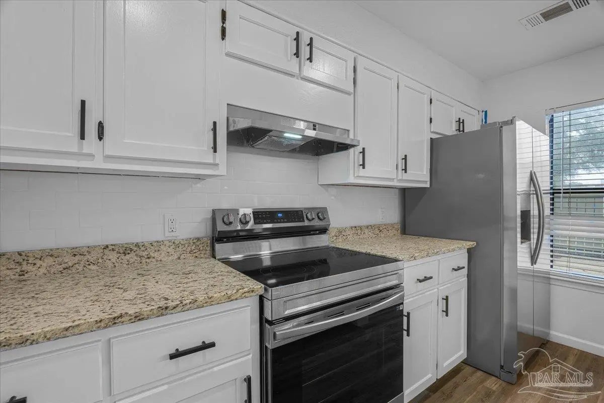 Here is a great opportunity to own this beautifully REMODELED townhome that has been fully upgraded and shows pride of workmanship from every corner. Prime location close to all the Restaurants, I10, and only 15-20 minutes to Downtown Pensacola and lovely beaches. This townhome is perfect for an investor who likes to rent it out and build their rental portfolio or for a homeowner who is tired of paying someone else`s mortgage and wants their own mortgage. As you arrive, you are welcomed by a private front patio COURTYARD ENTRANCE, perfect for relaxing after a long day, enjoying your morning coffee, or entertaining guests. Step inside to find NEW, gorgeous water-resistant LVP FLOORING throughout, complemented by brand-NEW interior PAINT and added RECESSED LIGHTING creating a bright, modern, and inviting atmosphere. Every detail has been carefully selected. The living room features a FIREPLACE for cozy evenings. The fully REMODELED KITCHEN is a standout feature, showcasing brand-new GRANITE countertops, Brand new ample cabinetry, all STAINLESS-STEEL appliances, and a layout designed for both everyday living and entertaining. The open flow makes meal preparation and hosting effortless. Downstairs features a fully REMODELED half bath/laundry room measuring 8.5 x 5.5 for convenience and extra storage. Upstairs, the home features two spacious bedrooms and two full bathrooms. The primary suite has been fully updated and offers its own private fully remodeled bathroom with NEW VANITY, New walk in shower, a WALK-IN CLOSET, and access to a PRIVATE BALCONY through sliding glass doors—a perfect place to unwind. The second bedroom is generously sized, also featuring its own private balcony, and has easy access to the fully remodeled hallway bathroom, making it ideal for guests, roommates, or tenants. The secondary bath also features NEW VANITY, New toilet and new shower. This unit is offered at a great price for quick sale. Call us today for your private showing!