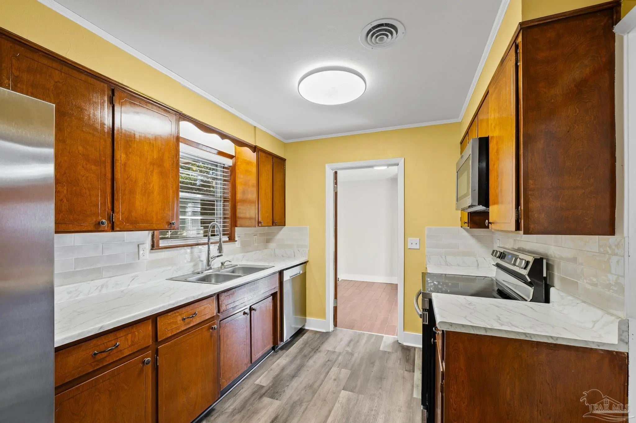 - Gas Water Heater, Built In Microwave, Dishwasher, Disposal, Refrigerator, Self Cleaning Oven