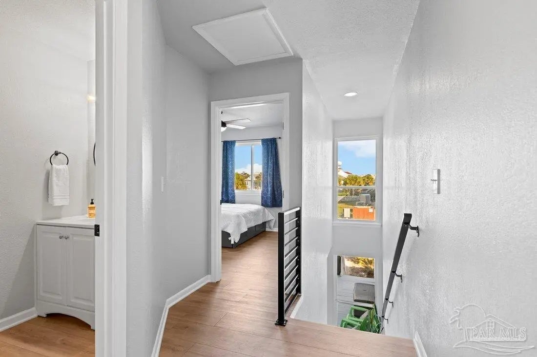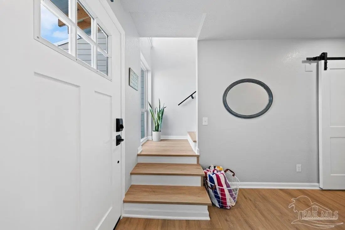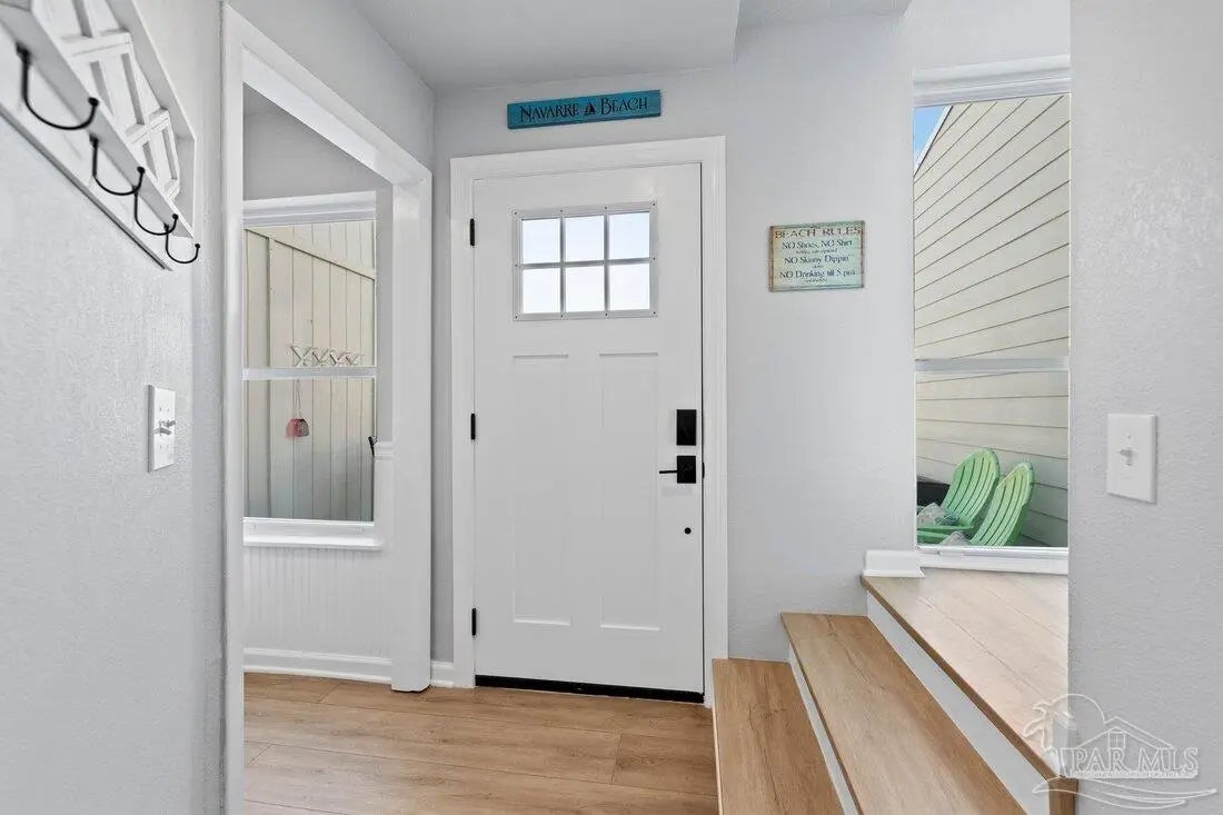 Navarre Beach Townhome. NO HOA. Renovated! Short term rental allowed. Just steps from the sugar-white sands of the Gulf of America and private beach on the sound. Fully furnished, 2-bedroom, 2.5-bath. Vacant Easy Show! New 2022 metal roof and 2021 water heater. The open-concept main level features luxury vinyl plank flooring, tiled backsplash, glazed countertops, plus a convenient half bath. Enjoy multiple outdoor living spaces with front and back decks, and a private master balcony. The spacious master suite boasts a walk-in shower, while the guest bedroom and full bath provide comfort and privacy. Ideal as a full-time residence, vacation getaway, or short-term rental, this turnkey home offers low-maintenance living in a prime beachside location