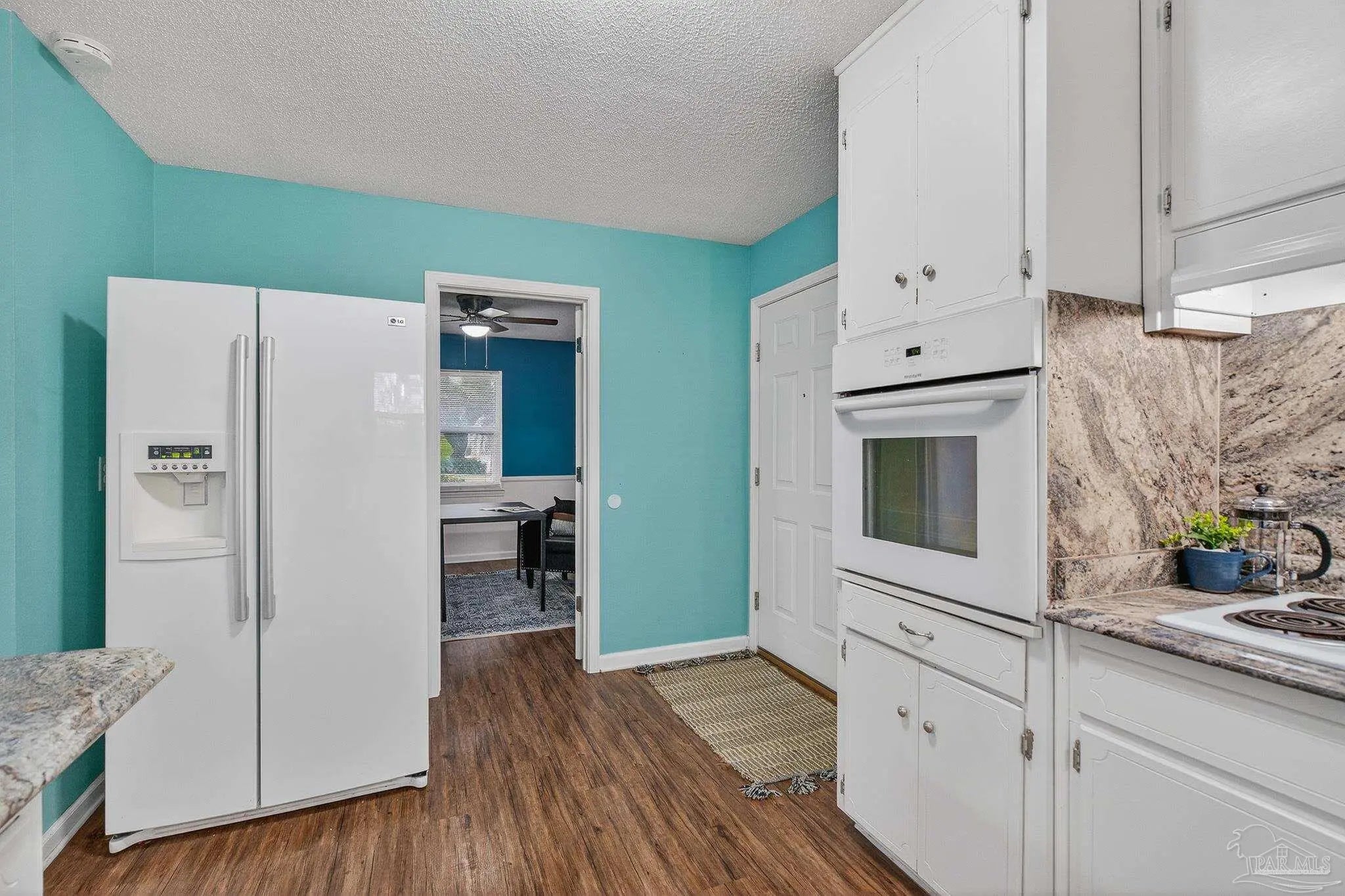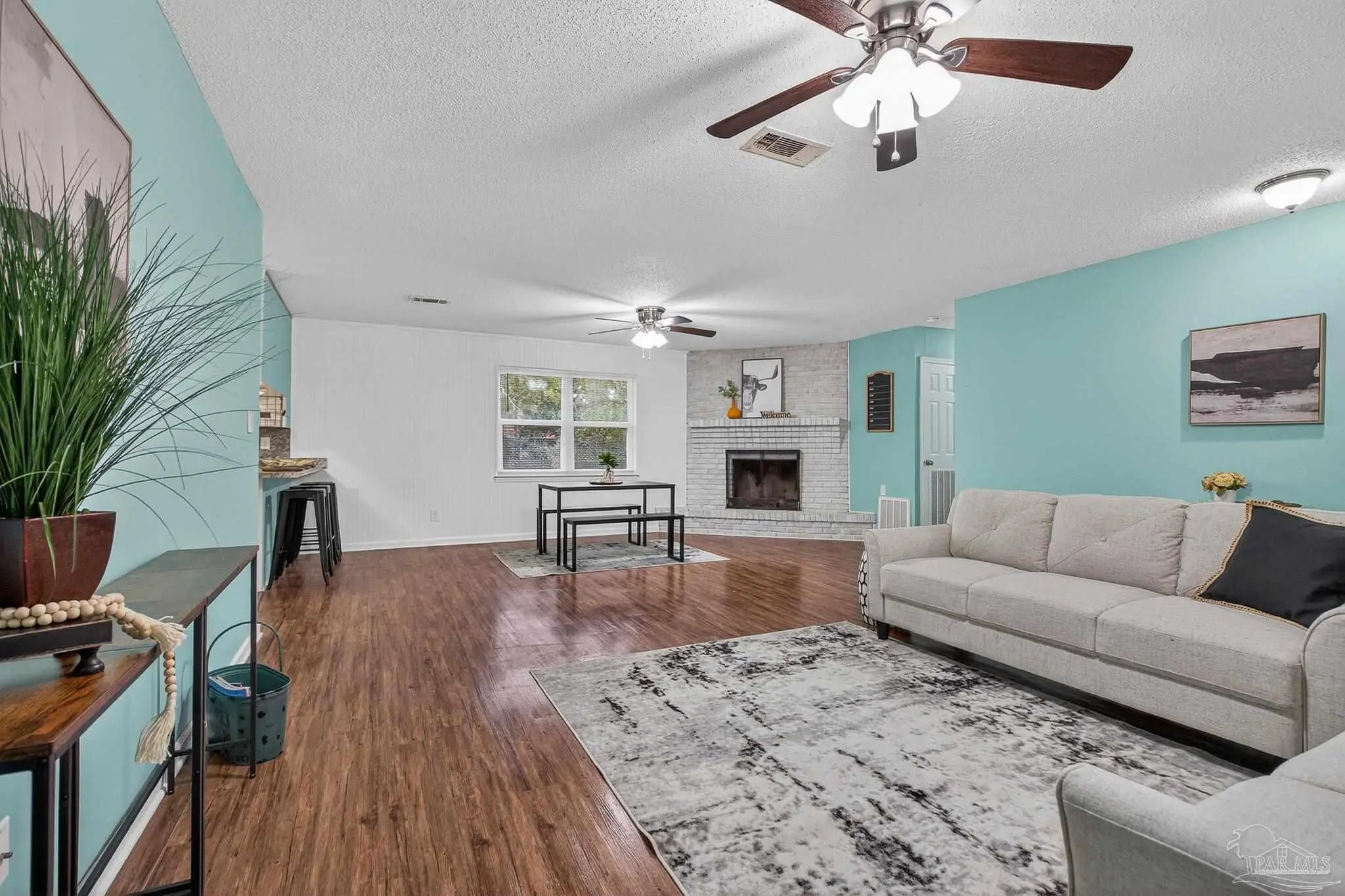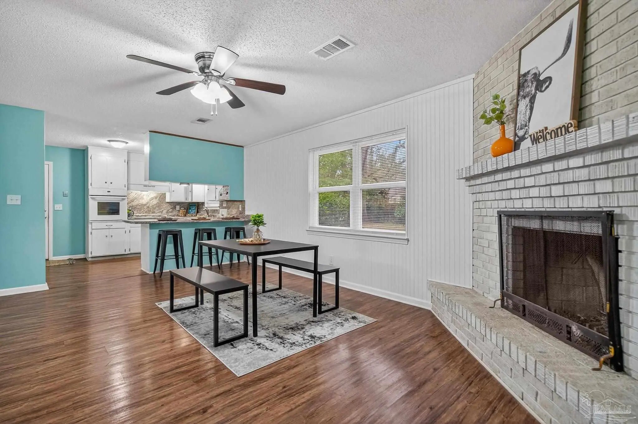 Nestled amidst beautiful live oaks, this ranch-style three-bedroom, two-bathroom home boasts an oversized two-car garage. Step into the open floor plan, which features a bonus room conveniently located off the kitchen. This room can be transformed into a dining room, office, or playroom, depending on your needs. The wood-burning fireplace, situated overlooking the living room, dining area, and kitchen, provides warmth during the chilly winter months. The bedrooms are conveniently located down the hallway, along with the additional bathroom. The primary suite offers two closets and a primary bathroom, ensuring ample space for relaxation and storage. The expansive fenced-in backyard, complete with an added parking pad and a sidewalk leading from the front door to the back door, makes this home an ideal choice for you and your family. Don’t miss the opportunity to see this beautiful home today!