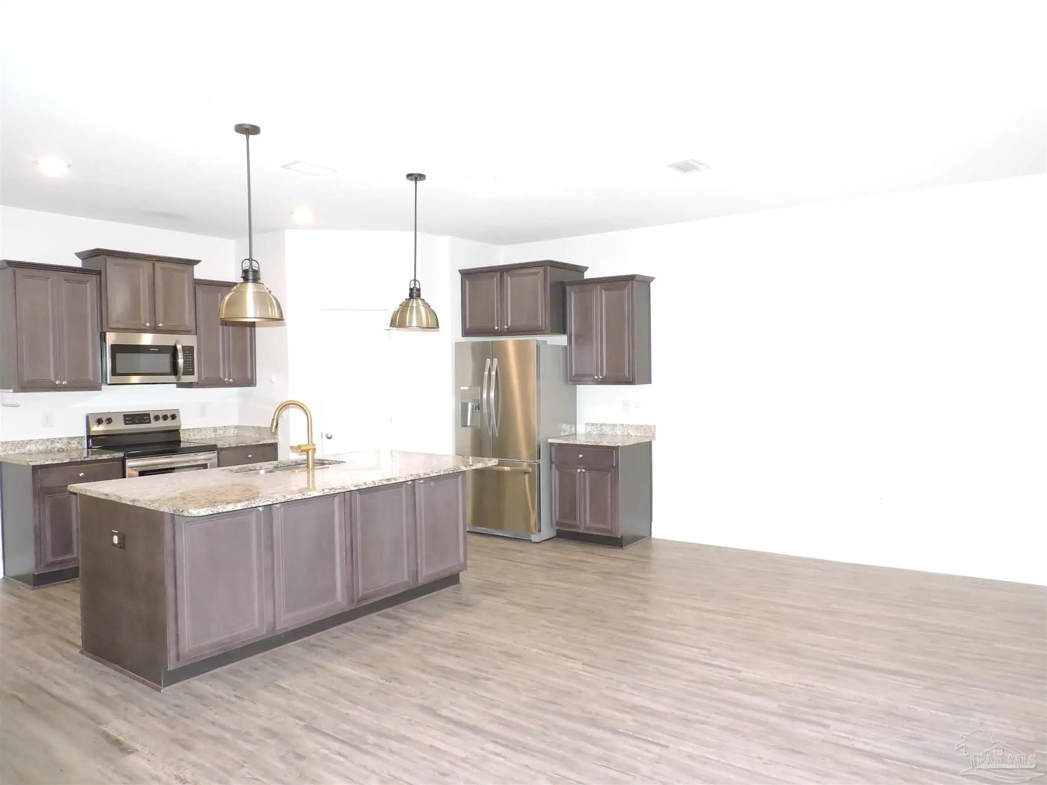 Convenient location in Pace! Easy access to schools & shopping. Open floor plan. Wood-look vinyl plank flooring in main living areas & carpet in bedrooms. Living room with ceiling fan, boxed ceiling & recessed lighting. Living/dining combination. Fully equipped kitchen with island (lights over island are decorative only & do not work), granite countertops, stainless steel appliances and pantry. Split bedroom plan. Main suite with double vanity, garden tub, separate shower & oversized closet. Inside laundry with washer & dryer - units are "as is" - no warranty. Two car garage. Privacy fenced backyard with covered porch. Small dogs considered with owner approval - no cats.