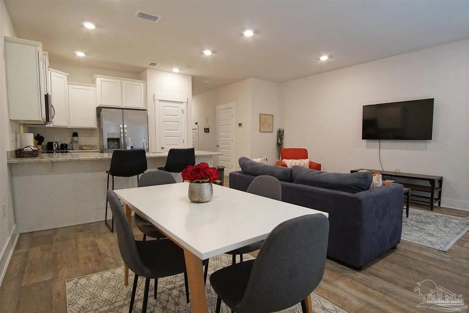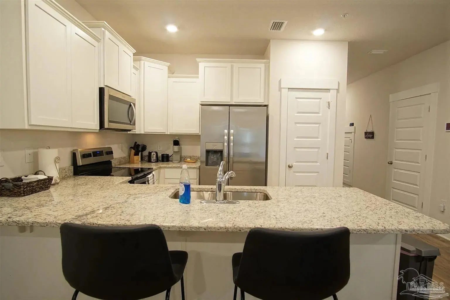 Easy access to Navy Federal complex, shopping & interstate. Fully furnished town home located off 9 Mile Rd in the Admiral's Quarters subdivision. Wood-look vinyl plank flooring in main living areas with carpet in bedrooms. Living/dining combination with high ceilings & recessed lighting. Fully equipped kitchen with granite countertops, stainless steel appliances, pantry & breakfast bar. Bedrooms are located upstairs. Main suite has ceiling fan, granite countertop, double vanity & 5' shower. Laundry is located upstairs with washer & dryer -- "as is" - no warranty. Lawn maintenance included in rent. The community offers a community pool. No pets.
