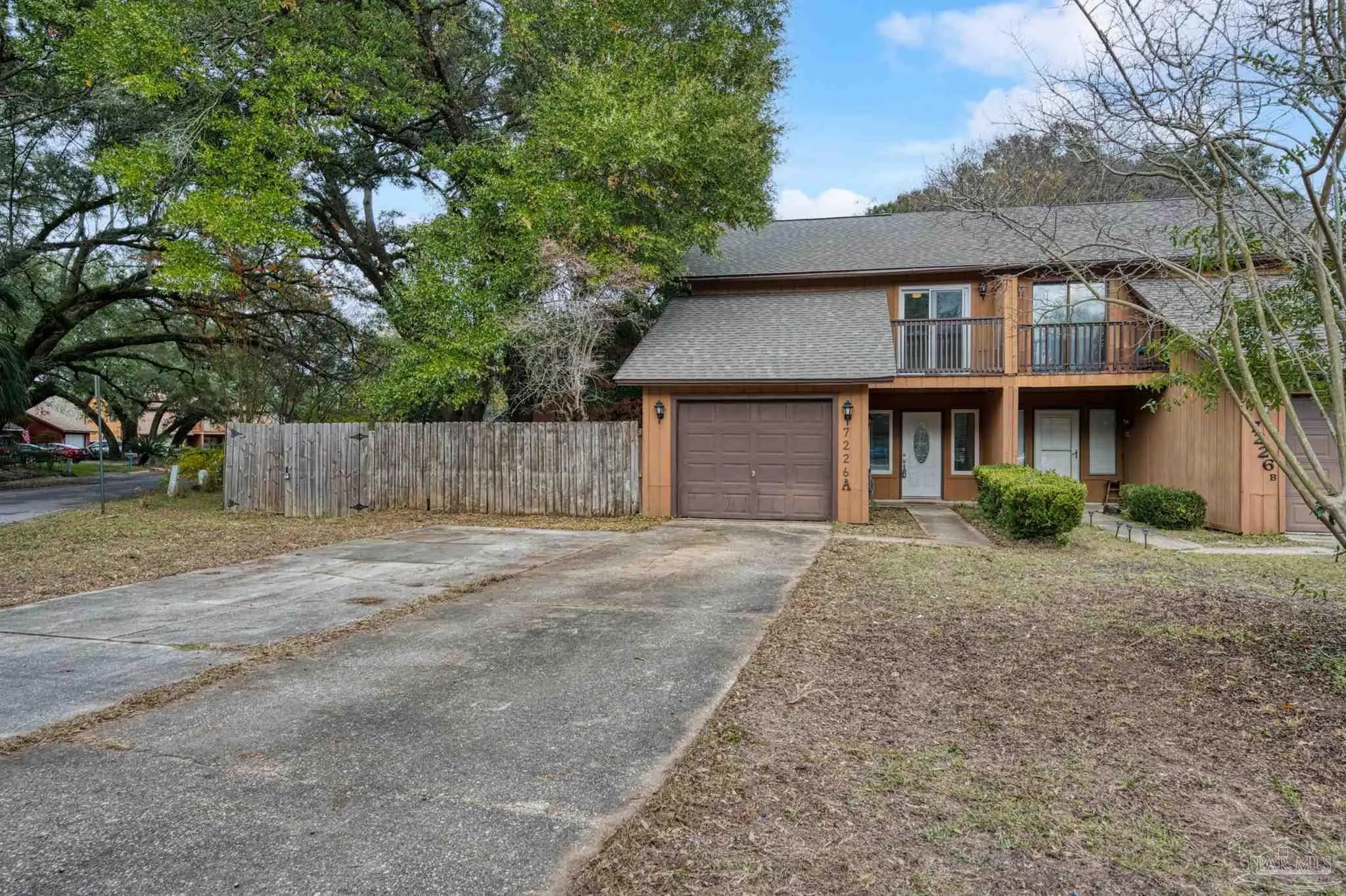 This well-located end-unit townhome offers comfort and convenience in the heart of Pensacola, just off Creighton Road and Scenic Heights. Surrounded by mature trees, the home features a large, fully fenced backyard that feels like a private retreat. Inside, the main level welcomes you with a cozy living room centered around a fireplace, creating a warm and inviting space. The adjacent kitchen and dining area offer easy flow and direct access to the back patio, ideal for outdoor meals. A convenient half bathroom on the main floor adds functionality for guests. Upstairs, all three bedrooms are thoughtfully arranged - the spacious primary suite stands out with a covered balcony overlooking the backyard, along with an en-suite bathroom featuring double vanities, a large walk-in closet, and a shared tub/shower combo. Additional highlights include all impact glass windows (replaced 2023), a one-car garage with washer and dryer hookups, a fully fenced backyard complete with a privacy fence, storage shed, plenty of parking, and double gate access to the backyard. With its central location, private outdoor space, and functional layout, this townhome is an excellent opportunity for first-time homebuyers or investors seeking rental potential in Pensacola!