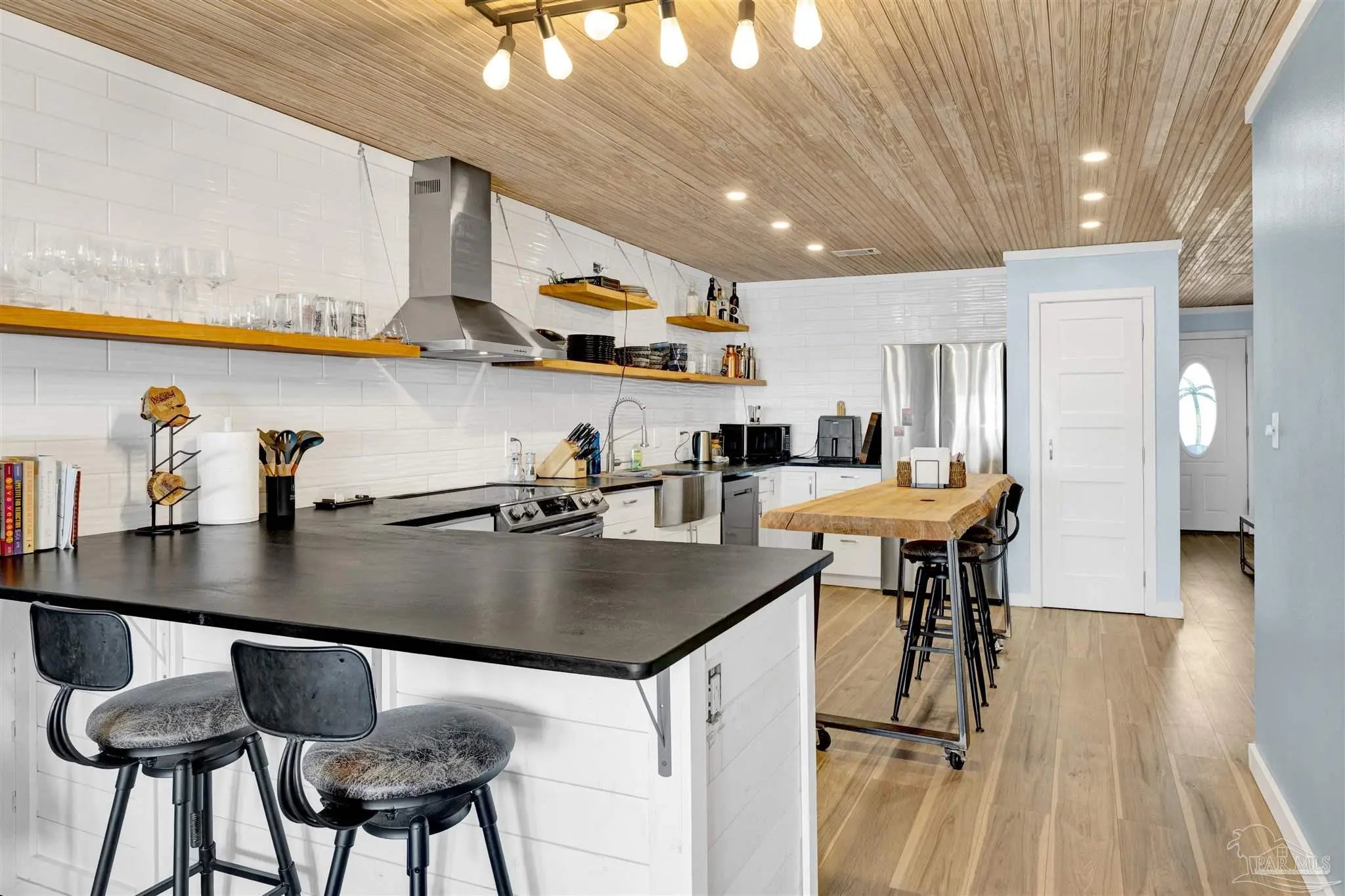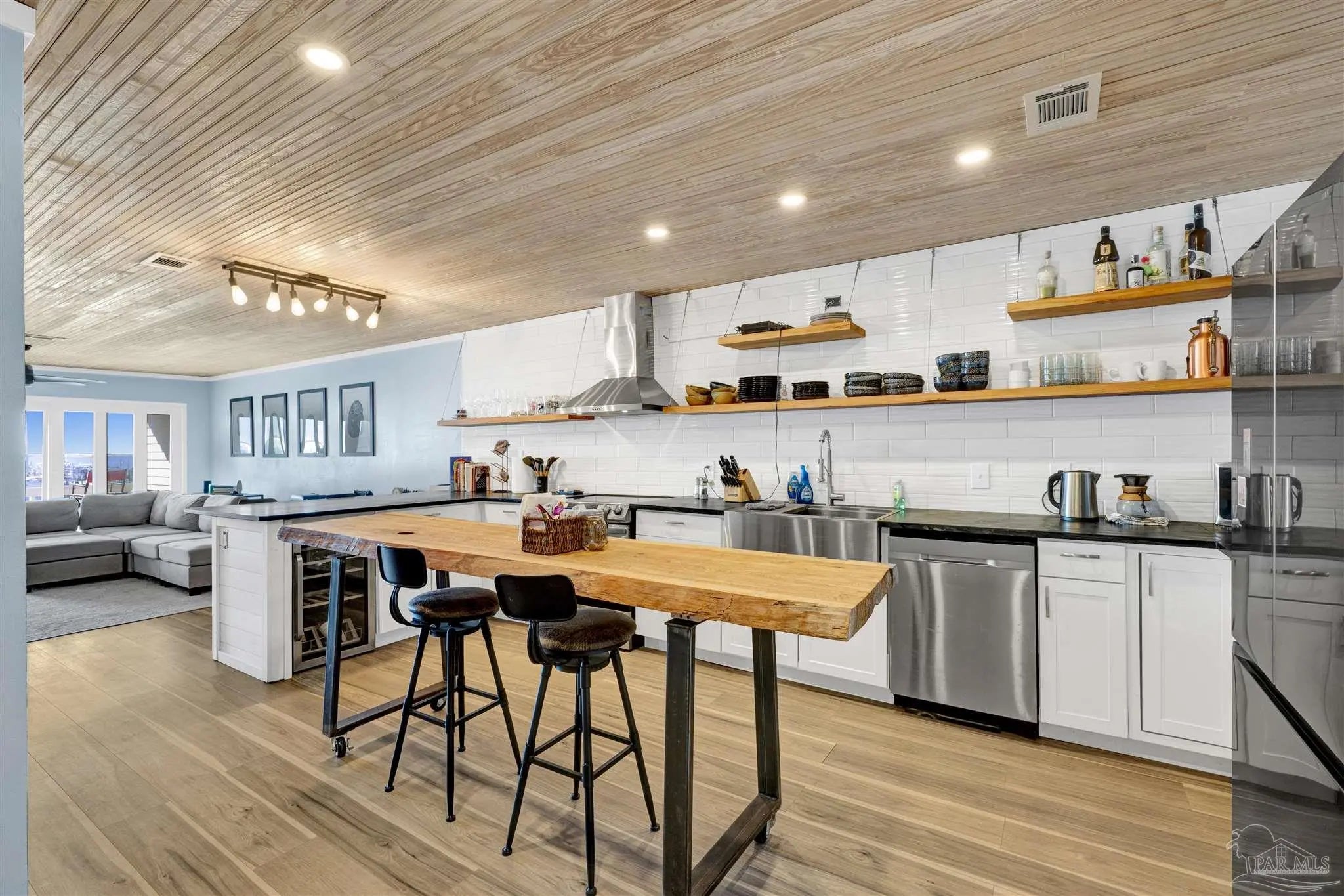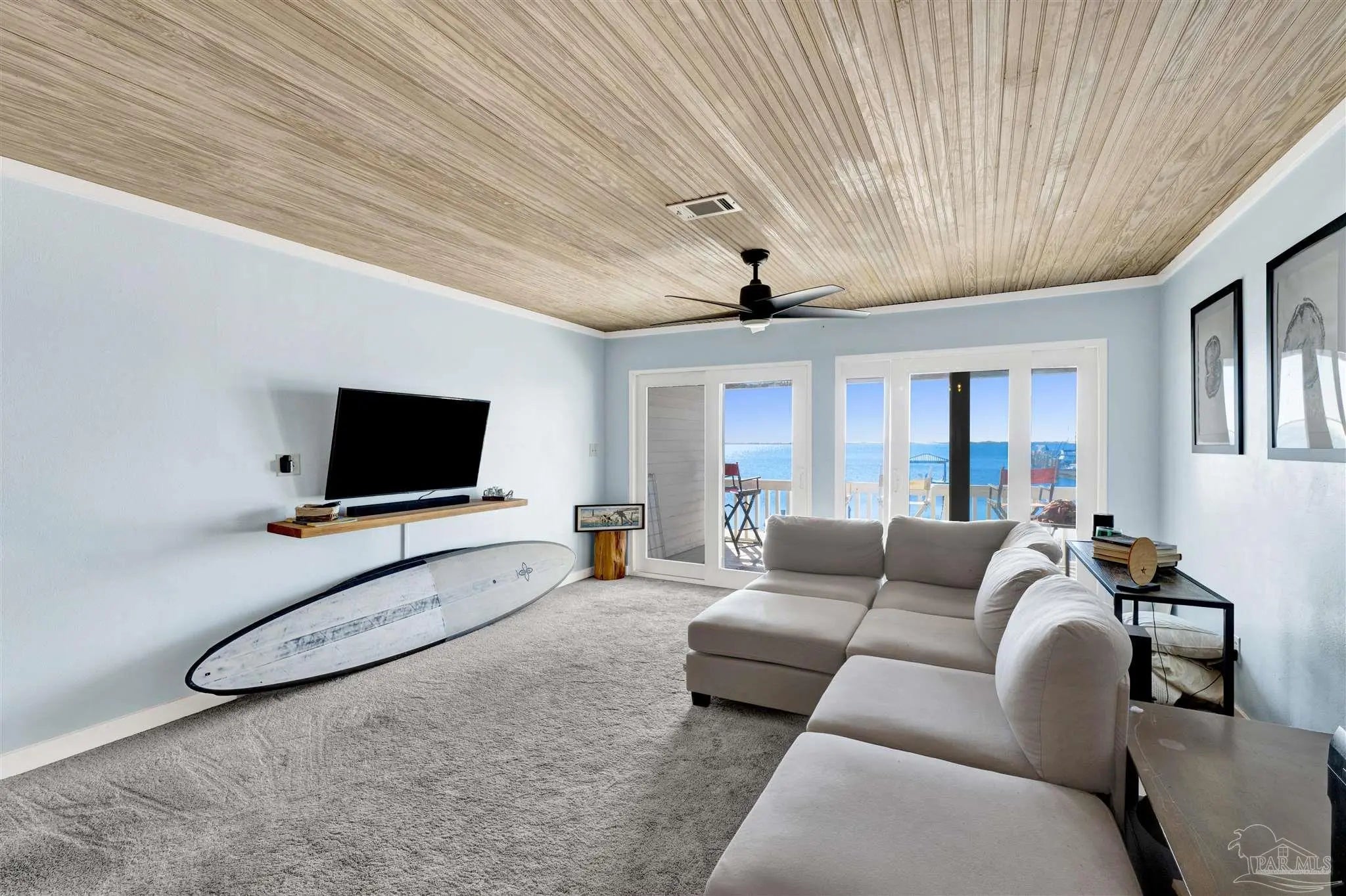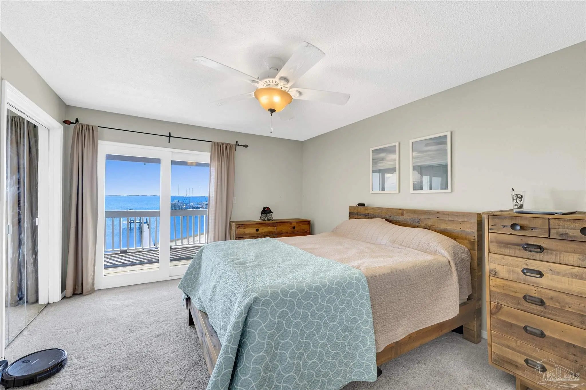 Enjoy living on gorgeous Grand Lagoon with stunning direct blue green water views from all three levels of this beautifully updated 2 Bedroom, 2.5 Bath residence! Recent upgrades include a kitchen remodel with granite counters, new cabinetry, durable 12mm LVP flooring, 2023 appliances with wine cooler, all new sliding glass doors, and an HVAC system replaced just two years ago. Private Community Pier with new composite decking! Outdoor living shines with a new sun sail, fire pit, and direct access to serene surroundings. The upper level hosts a spacious primary suite with an en-suite bath and expansive windows framing beautiful water views, and an additional bedroom with en-suite full bath. A secondary living area on the lower level opens to the back patio, creating a seamless indoor-outdoor flow ideal for relaxing or entertaining. The ground level also features a private gym space along with a garage with workshop area, perfect for hobbies or storage. Boat lovers will appreciate the yacht club next door with social memberships and boat slips - minutes from Pensacola Pass! Take in sweeping views of Big Lagoon, Gulf Islands National Seashore, and the Gulf. The property's location makes this a rare opportunity for both full-time living or a coastal retreat. Make sure to watch the Virtual Tour Video! Buyer to verify all information during due diligence.