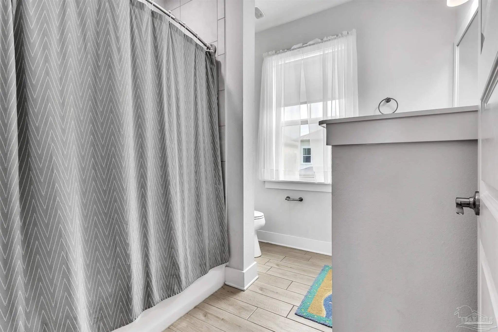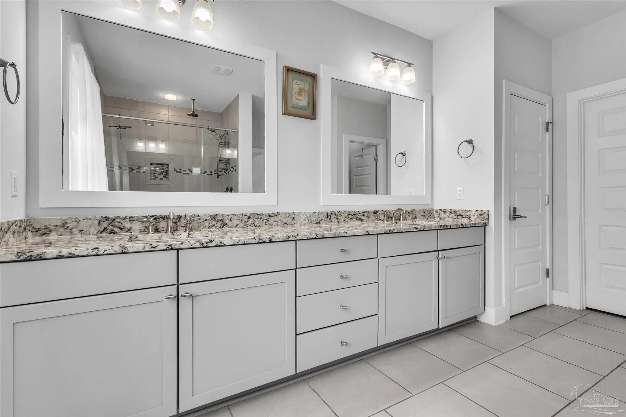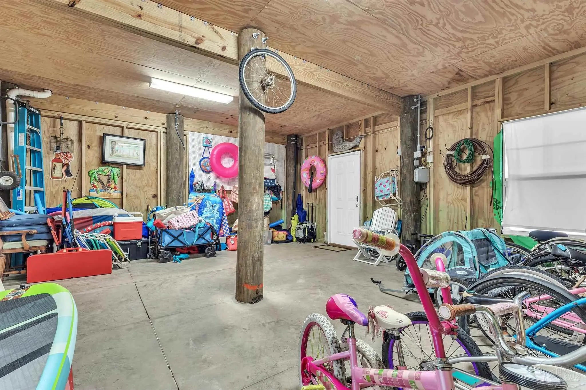 Located in a gated soundside community on Navarre Beach, this turnkey, fully furnished 4-bedroom, 2.5-bath home offers a flexible layout and coastal lifestyle convenience. Built in 2016 with 2,209 sq feet, it is a quick walk to both the community's deeded Santa Rosa Sound access and the white sand beaches and emerald waters of the Gulf of Mexico. The main level features an open and bright floor plan with hardwood floors, tall ceilings, crown molding, and abundant natural light. The kitchen includes a large island with granite countertops, stainless steel appliances, soft-close wood cabinetry, under-cabinet lighting, and a stylish backsplash. The spacious living and dining areas flow directly to a large wraparound porch with multiple seating and dining areas. Also on this level is a guest bedroom with private porch and a powder bath. Upstairs, the home offers two additional guest bedrooms, a full bath, a laundry room, and a generously sized primary suite. The primary suite includes a king-size sleeping area with space for additional furniture and a seating area. The primary bath features double sinks, ample cabinetry, a large tiled shower with glass enclosure, a water closet, and a walk-in closet. The ground level provides parking for four vehicles, two covered and two uncovered spots, along with a large storage area that is fully outfitted with bikes, paddleboards, beach chairs, and beach and water toys. A covered area offers space for casual outdoor dining or relaxing after a day at the beach. Community amenities include private sound access, a pool, hot tub, and fire pit. This property is well suited as a primary residence, second home, or investment property with strong rental performance.