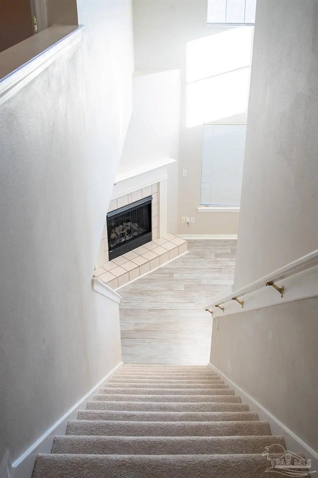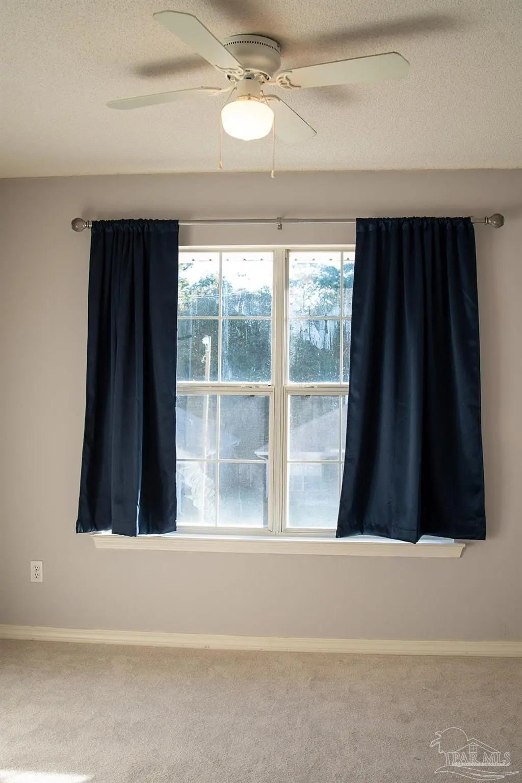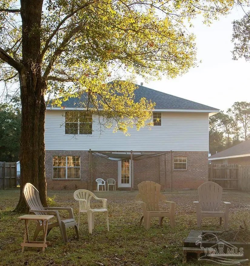 Welcome to this charming home nestled in a quiet, well-established neighborhood. Step inside to a bright and open living room featuring 16-foot ceilings and large windows that fill the space with beautiful natural light. An electric fireplace adds both comfort and modern style, making this room perfect for relaxing or entertaining. The thoughtfully designed floor plan includes three full bathrooms and a downstairs fourth bedroom that can easily serve as a home office or study. The kitchen boasts granite countertops, while the dining room features updated flooring. Recent upgrades include a water heater installed December 2025 and new carpet on the stairs and in two upstairs bedrooms. The roof was replaced in June of 2020. Enjoy outdoor living in the large, fully fenced backyard, ideal for children, pets, and gatherings. A spacious fire pit creates the perfect setting for cozy evenings, and entertaining friends and family. Conveniently located near the Pensacola Fairgrounds, multiple grocery stores, schools, and a variety of restaurants, this home combines comfort, functionality, and an excellent location. Spacious and welcoming—this is a perfect place to call home.