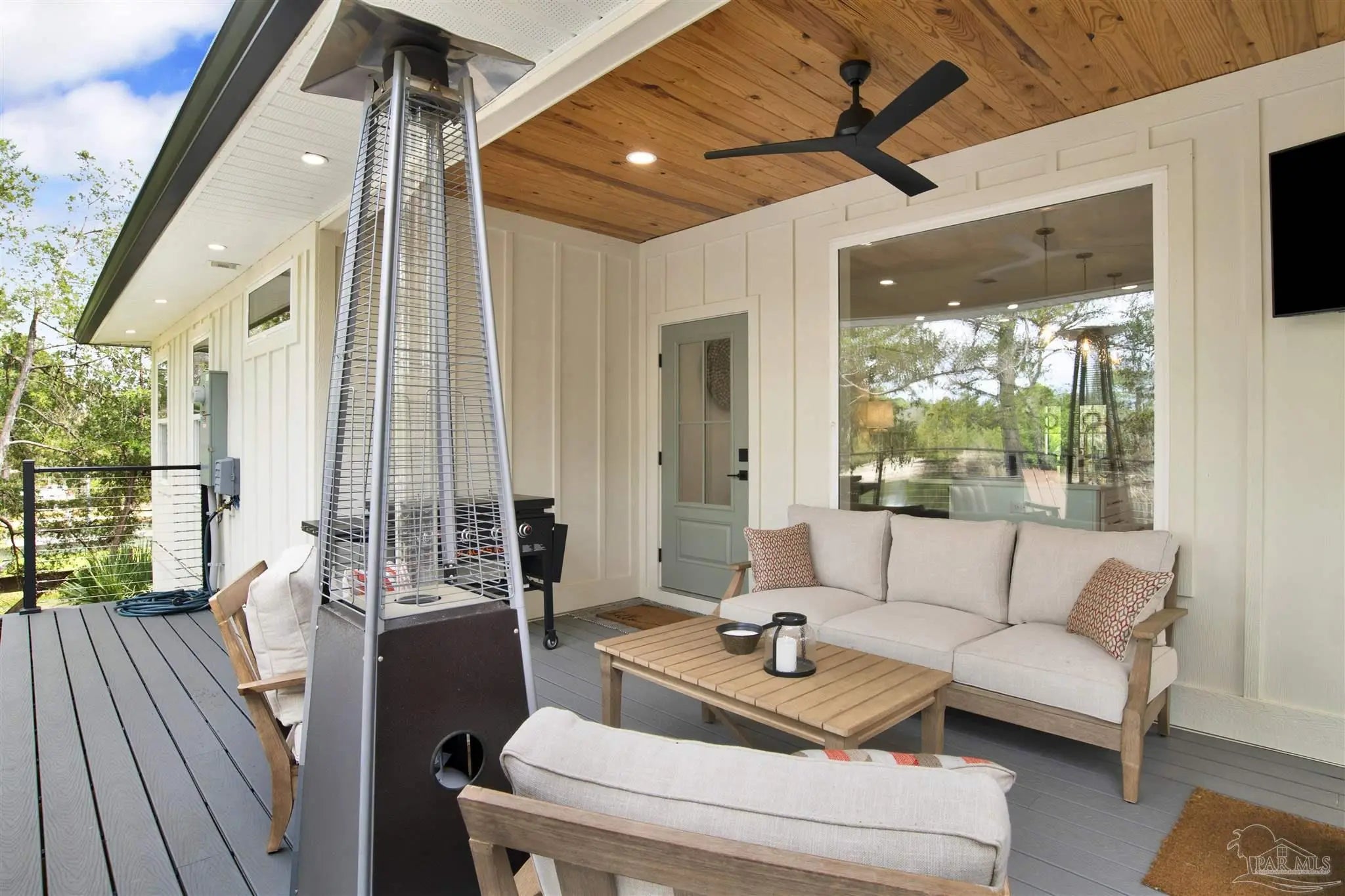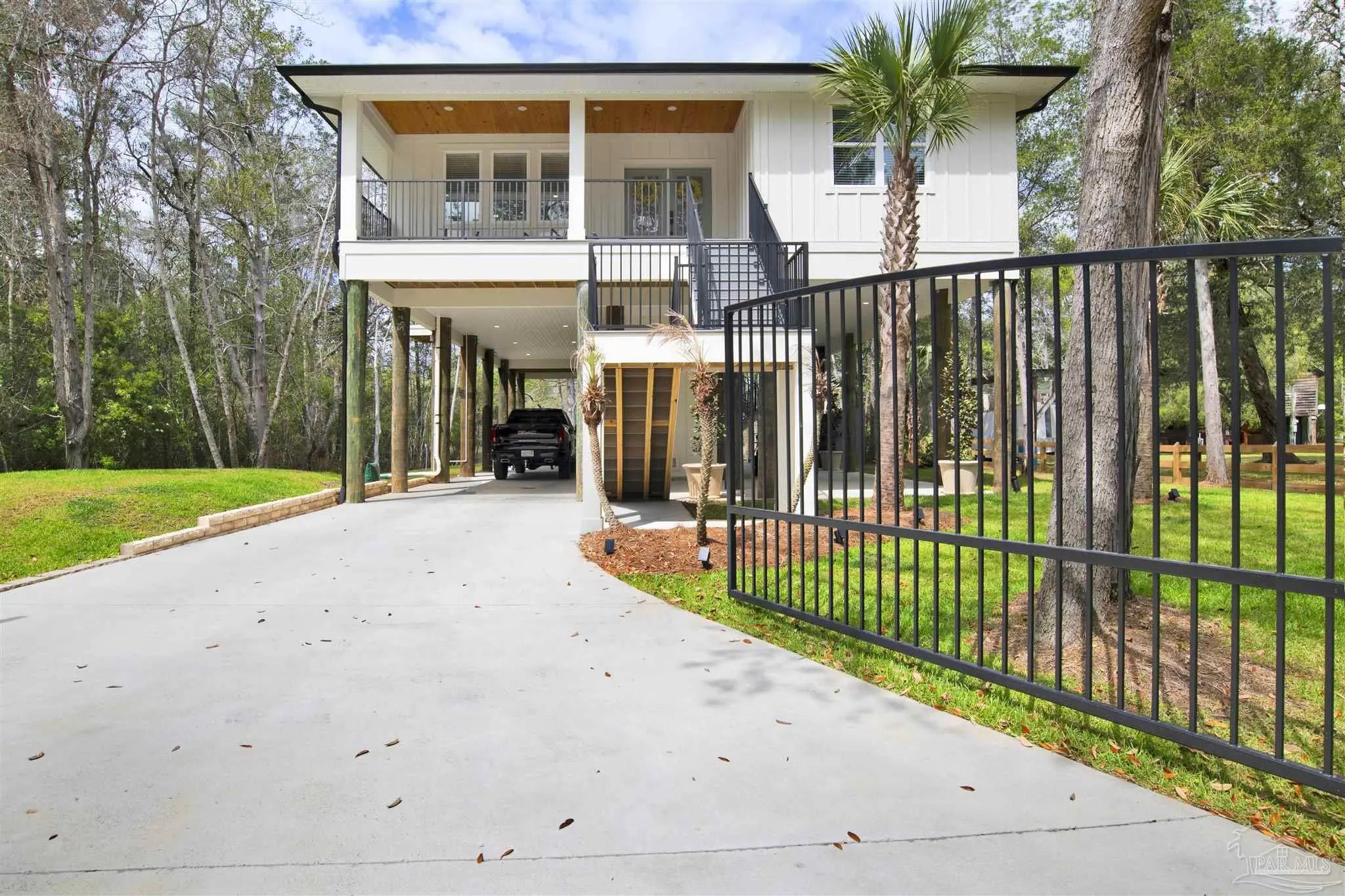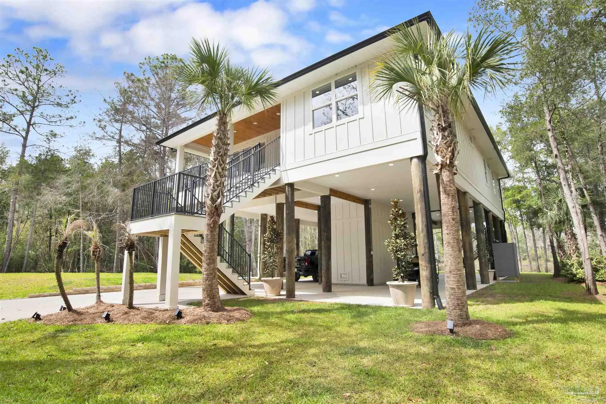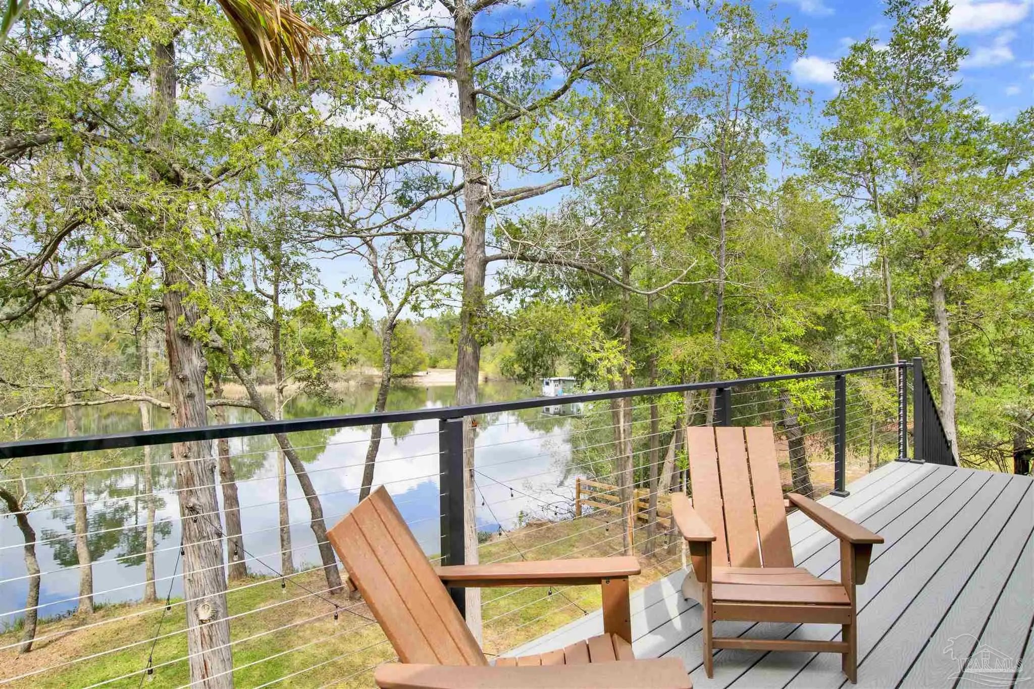 Your own piece of paradise awaits in this stunning waterfront 2025 builder’s home, where no detail has been overlooked and quality construction meets elevated design. Thoughtfully designed with a highly desirable floor plan, this home offers 3 bedrooms and 3 full baths with beautiful fixtures, finishes, and modern style throughout. Step inside to an open living concept featuring luxury vinyl plank flooring throughout and a light-filled main living area enhanced by abundant large windows and a sleek electric fireplace, creating a warm and inviting atmosphere. The adjacent dining area flows seamlessly into the kitchen, truly a chef’s dream, showcasing a huge center island, quartz countertops, ceiling-height cabinetry, stainless steel appliances, and a butler’s pantry for added storage and functionality. The split-bedroom floor plan provides exceptional privacy for the primary suite, where you’ll find a spacious bedroom highlighted by a stylish accent wall. The spa-inspired primary bath features double vanities with quartz countertops, a large walk-in shower with bamboo-look tiled walls and floors, a walk-in closet, and a private water closet. Two additional generously sized bedrooms complete the layout, including one with its own ensuite bath, perfect for guests and offering a tub/shower combo. A third full bath features a large walk-in tiled shower, providing comfort and convenience for family and visitors alike. A well-appointed laundry room completes the interior, with washer and dryer conveying with the home. Outdoor enthusiasts will fall in love with the expansive covered and uncovered deck with Trex flooring, all overlooking a beautiful lake. Enjoy direct water access where you can launch your bass boat, kayak, or canoe and make your way straight to the Blackwater River—the ultimate blend of luxury living and outdoor adventure. This exceptional home truly offers the best of modern living and natural beauty.