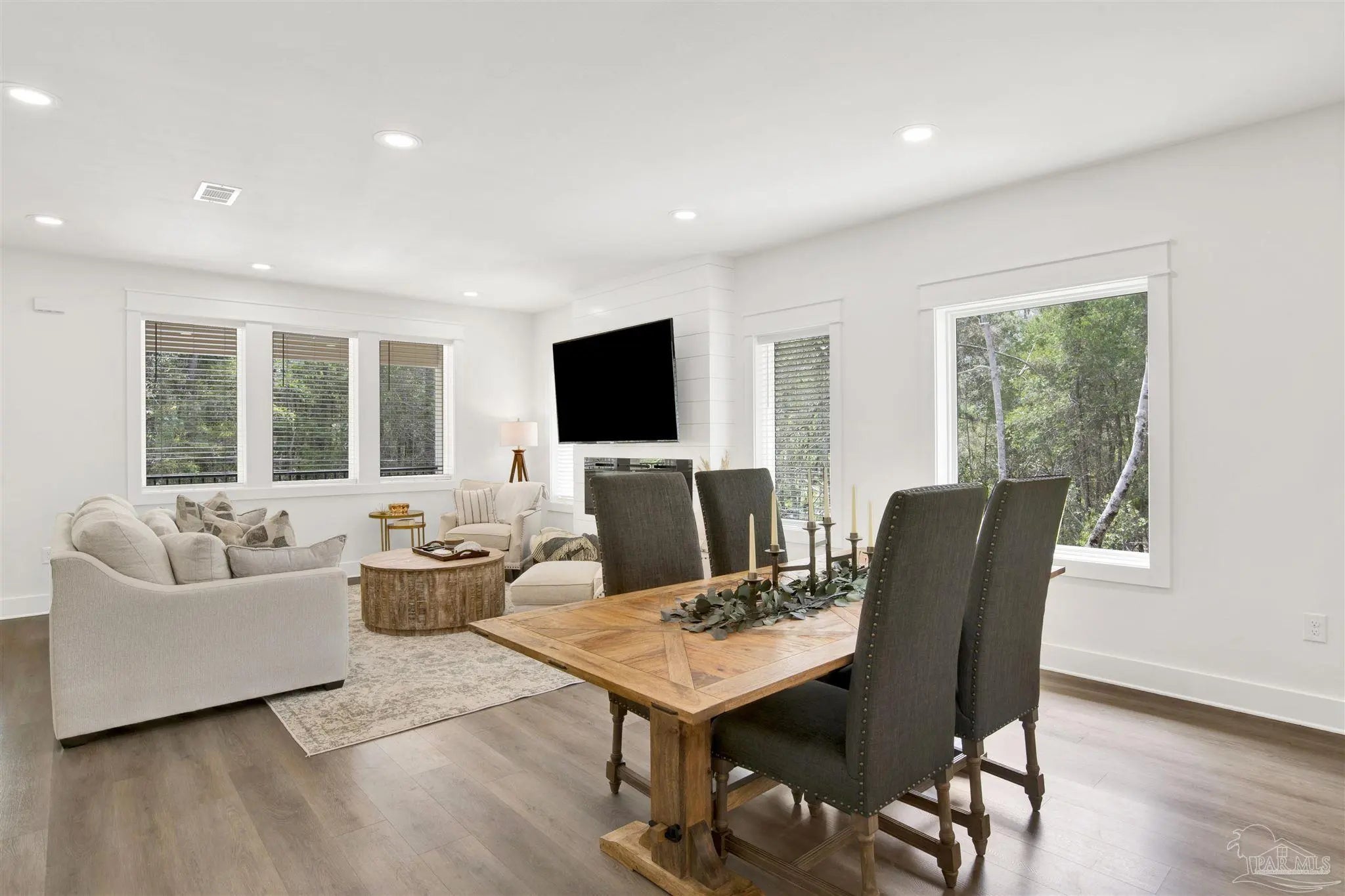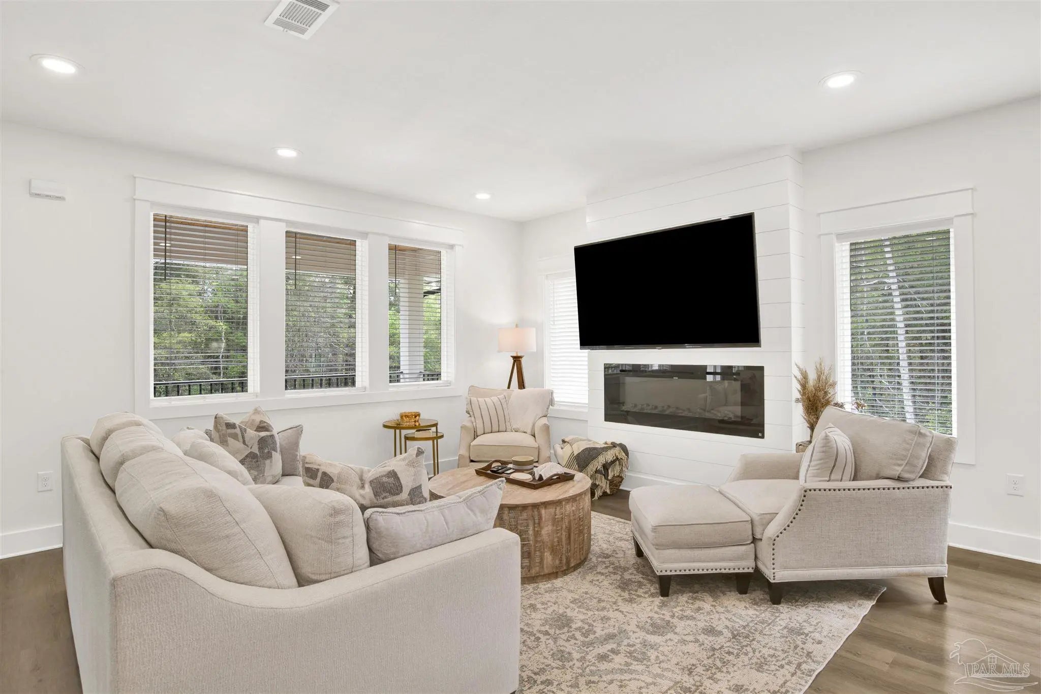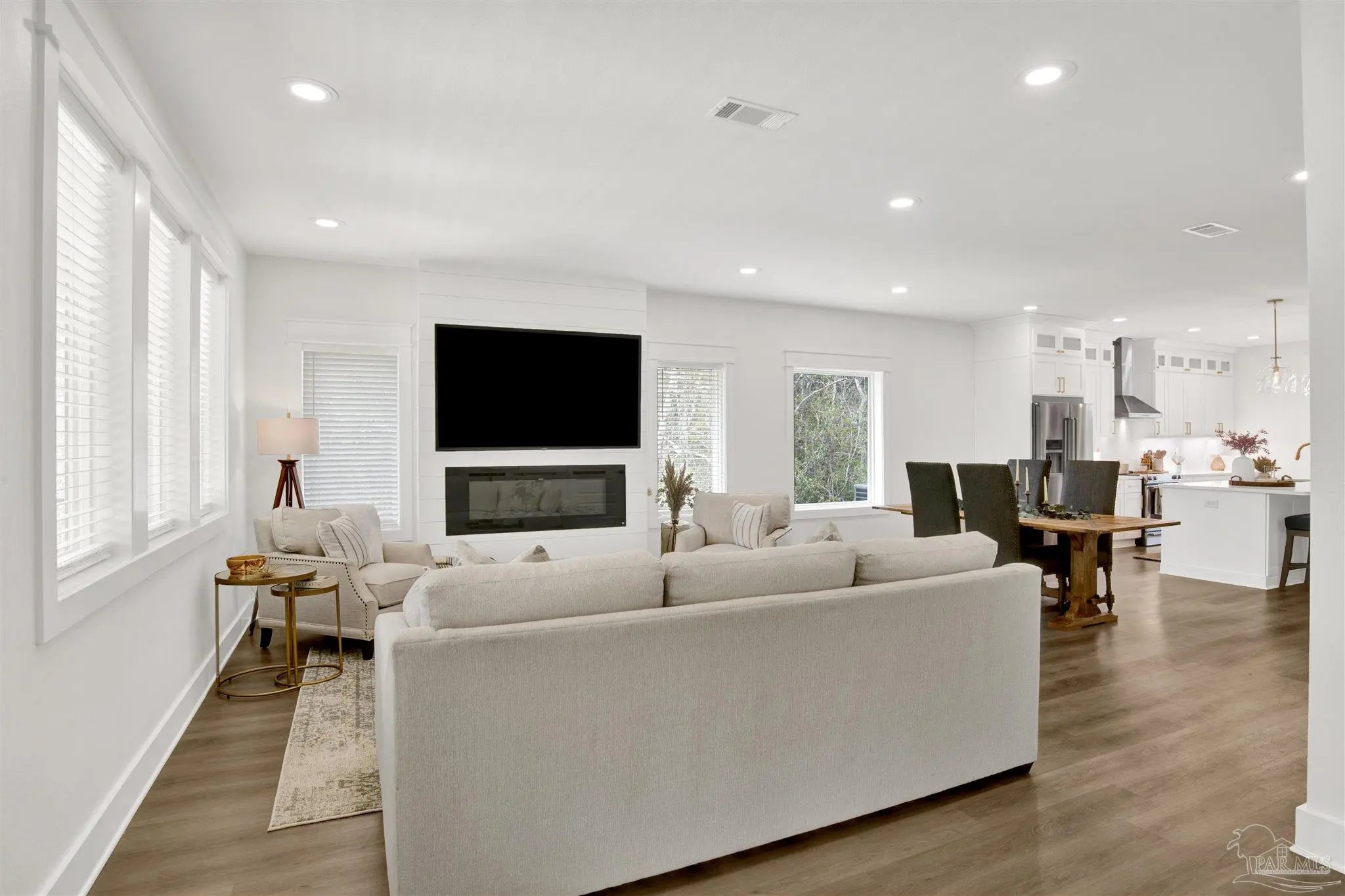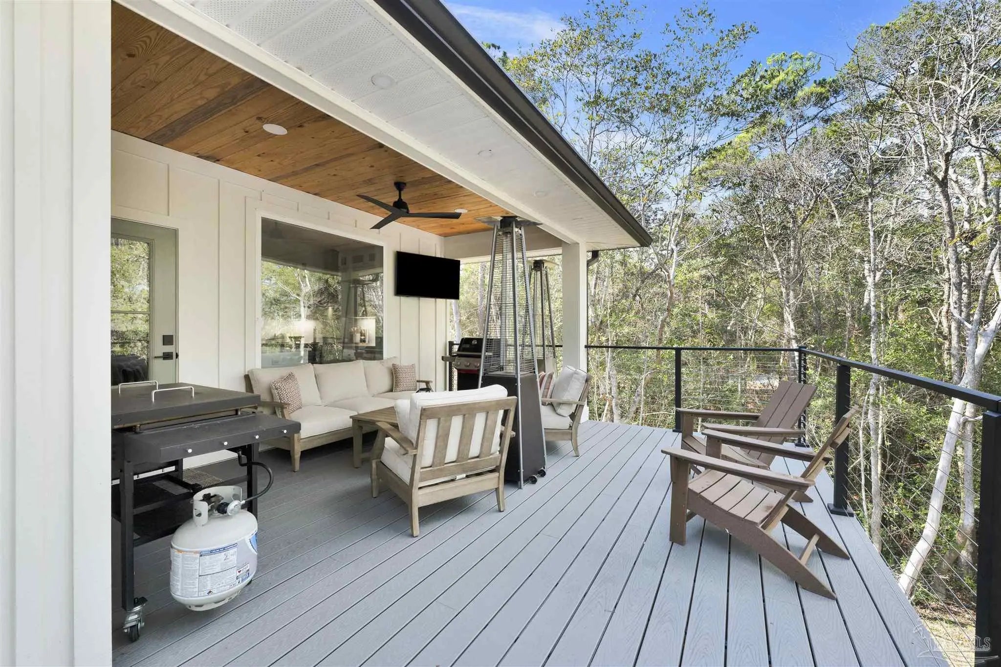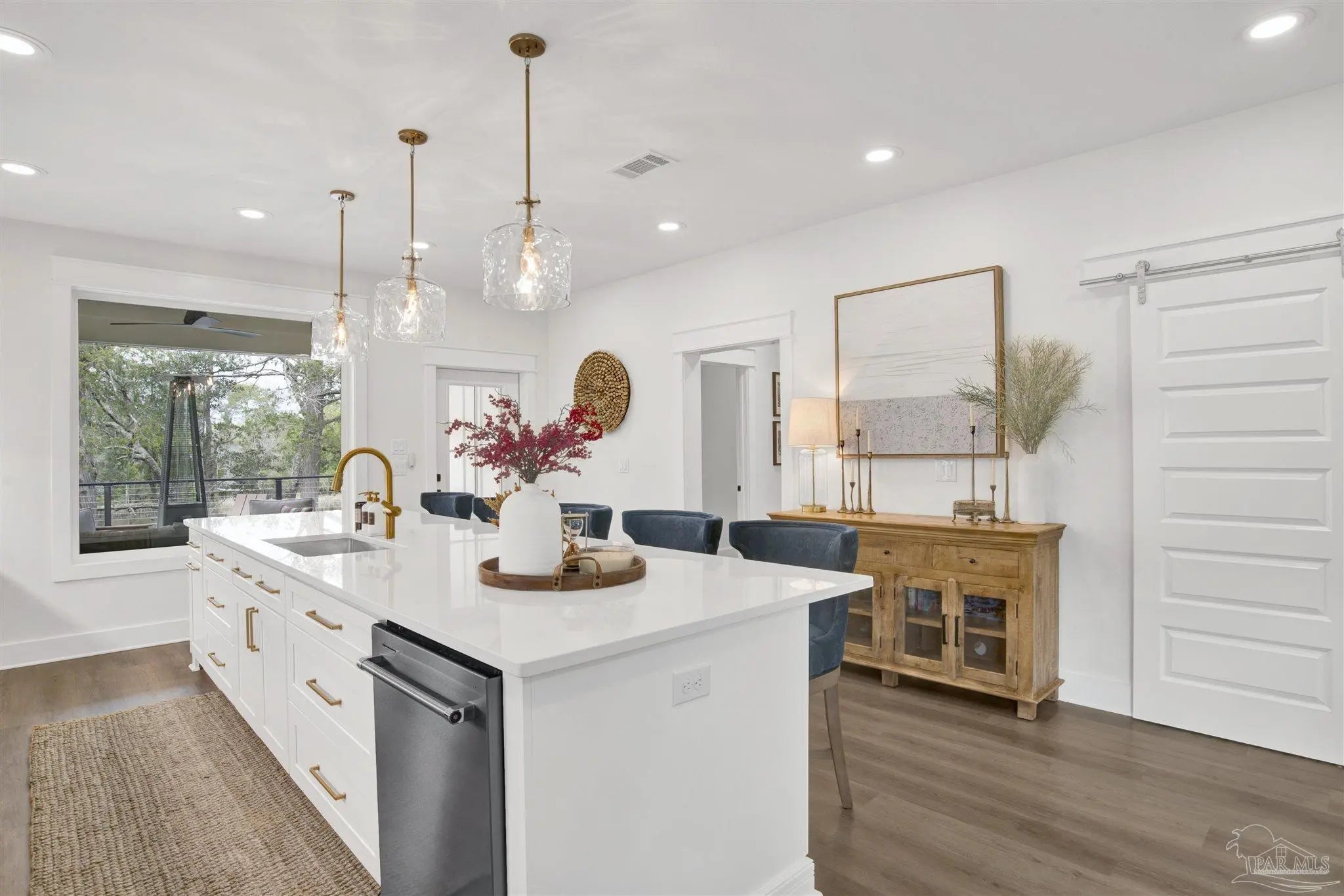 Your own piece of paradise awaits in this stunning waterfront 2025 builder’s home, where no detail has been overlooked and quality construction meets elevated design. Thoughtfully designed with a highly desirable floor plan, this home offers 3 bedrooms and 3 full baths with beautiful fixtures, finishes, and modern style throughout. Step inside to an open living concept featuring luxury vinyl plank flooring throughout and a light-filled main living area enhanced by abundant large windows and a sleek electric fireplace, creating a warm and inviting atmosphere. The adjacent dining area flows seamlessly into the kitchen, truly a chef’s dream, showcasing a huge center island, quartz countertops, ceiling-height cabinetry, stainless steel appliances, and a butler’s pantry for added storage and functionality. The split-bedroom floor plan provides exceptional privacy for the primary suite, where you’ll find a spacious bedroom highlighted by a stylish accent wall. The spa-inspired primary bath features double vanities with quartz countertops, a large walk-in shower with bamboo-look tiled walls and floors, a walk-in closet, and a private water closet. Two additional generously sized bedrooms complete the layout, including one with its own ensuite bath, perfect for guests and offering a tub/shower combo. A third full bath features a large walk-in tiled shower, providing comfort and convenience for family and visitors alike. A well-appointed laundry room completes the interior, with washer and dryer conveying with the home. Outdoor enthusiasts will fall in love with the expansive covered and uncovered deck with Trex flooring, all overlooking a beautiful lake. Enjoy direct water access where you can launch your bass boat, kayak, or canoe and make your way straight to the Blackwater River—the ultimate blend of luxury living and outdoor adventure. This exceptional home truly offers the best of modern living and natural beauty.