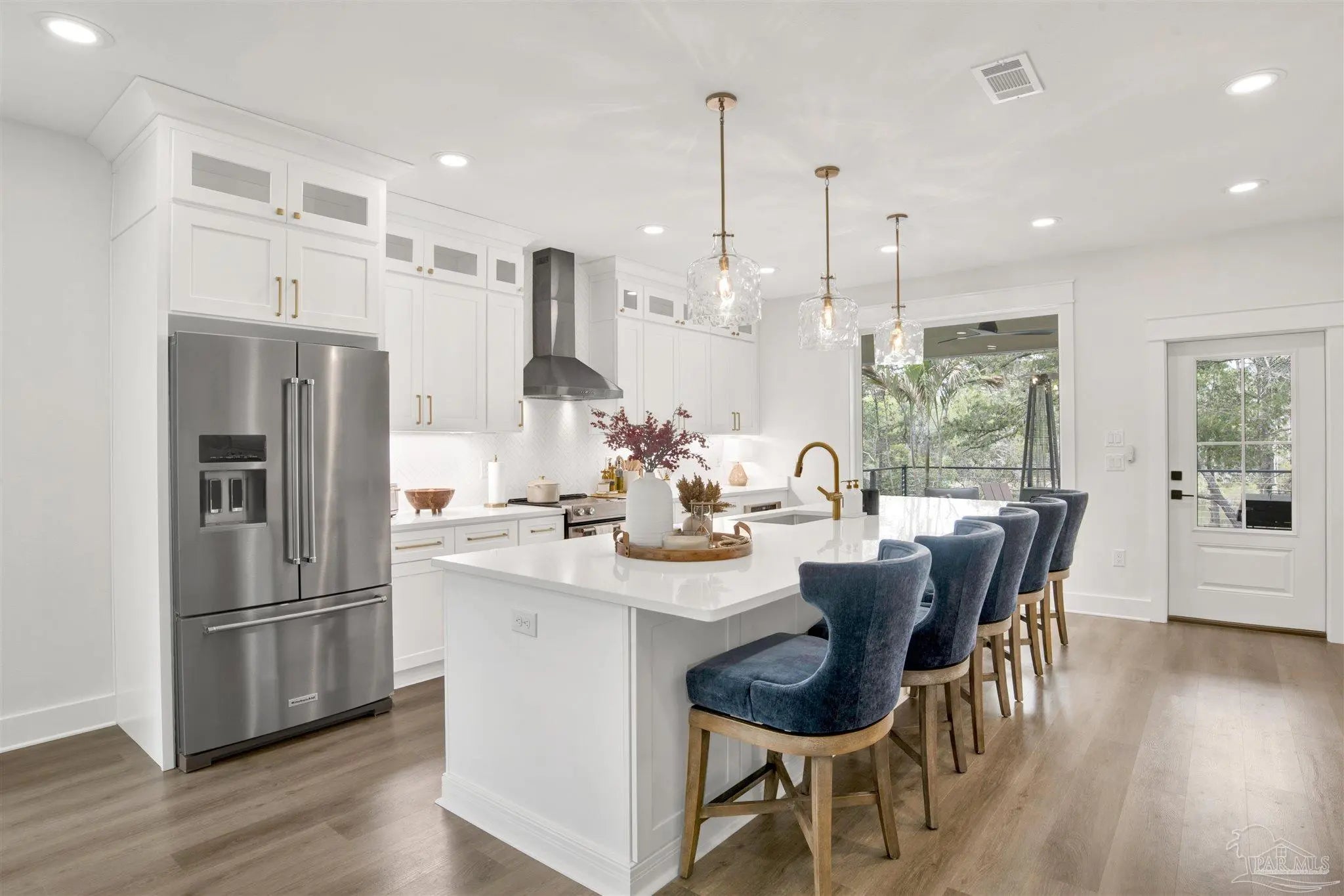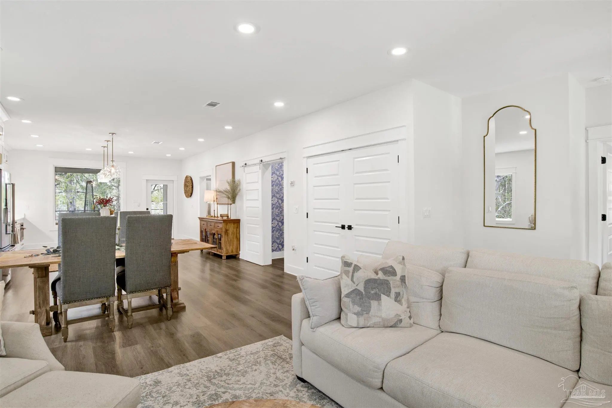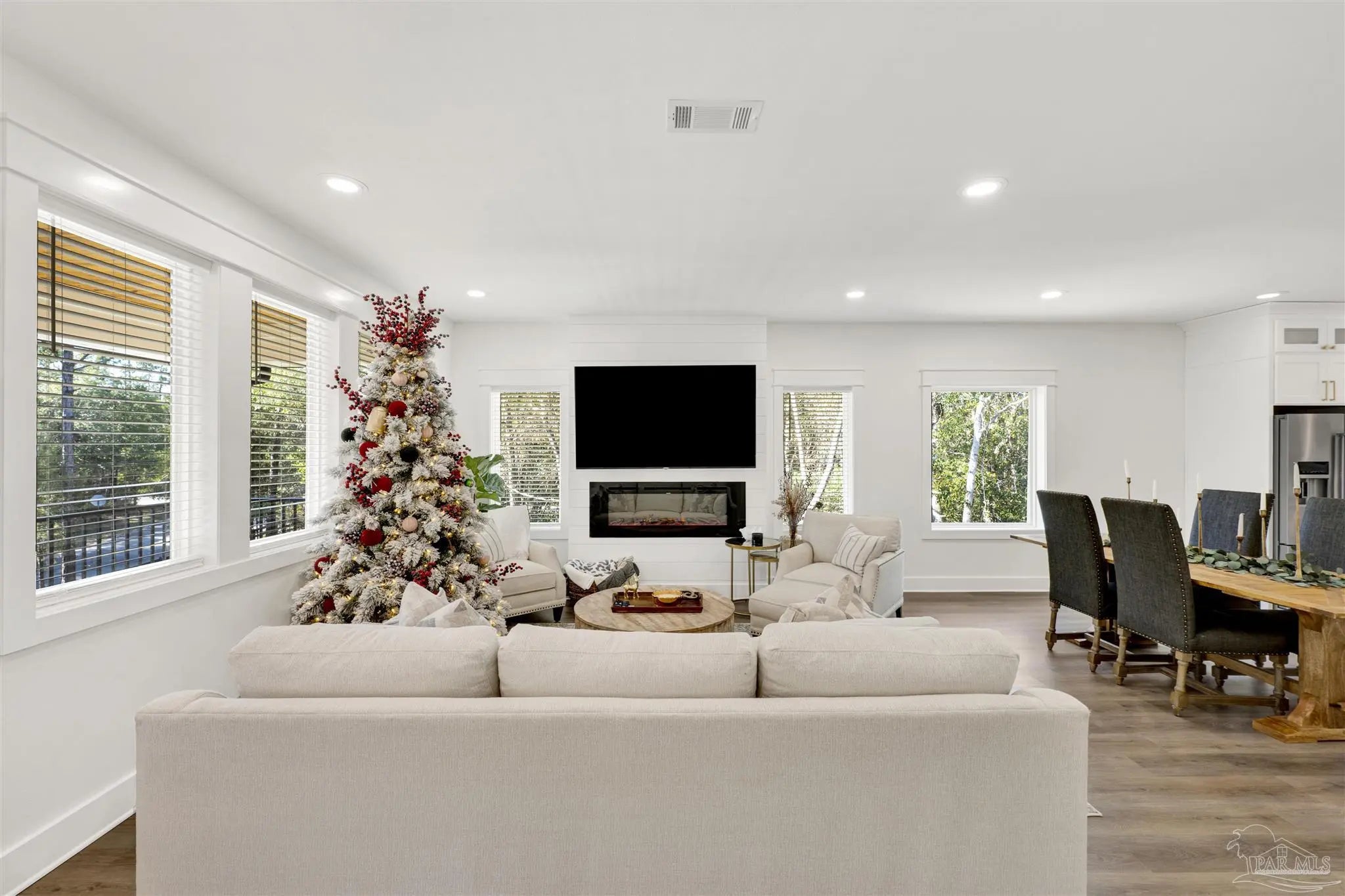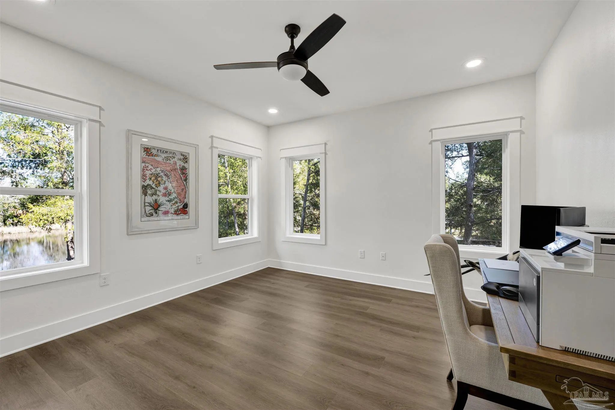 Your own piece of paradise awaits in this stunning waterfront 2025 builder’s home, where no detail has been overlooked and quality construction meets elevated design. Thoughtfully designed with a highly desirable floor plan, this home offers 3 bedrooms and 3 full baths with beautiful fixtures, finishes, and modern style throughout. Step inside to an open living concept featuring luxury vinyl plank flooring throughout and a light-filled main living area enhanced by abundant large windows and a sleek electric fireplace, creating a warm and inviting atmosphere. The adjacent dining area flows seamlessly into the kitchen, truly a chef’s dream, showcasing a huge center island, quartz countertops, ceiling-height cabinetry, stainless steel appliances, and a butler’s pantry for added storage and functionality. The split-bedroom floor plan provides exceptional privacy for the primary suite, where you’ll find a spacious bedroom highlighted by a stylish accent wall. The spa-inspired primary bath features double vanities with quartz countertops, a large walk-in shower with bamboo-look tiled walls and floors, a walk-in closet, and a private water closet. Two additional generously sized bedrooms complete the layout, including one with its own ensuite bath, perfect for guests and offering a tub/shower combo. A third full bath features a large walk-in tiled shower, providing comfort and convenience for family and visitors alike. A well-appointed laundry room completes the interior, with washer and dryer conveying with the home. Outdoor enthusiasts will fall in love with the expansive covered and uncovered deck with Trex flooring, all overlooking a beautiful lake. Enjoy direct water access where you can launch your bass boat, kayak, or canoe and make your way straight to the Blackwater River—the ultimate blend of luxury living and outdoor adventure. This exceptional home truly offers the best of modern living and natural beauty.
