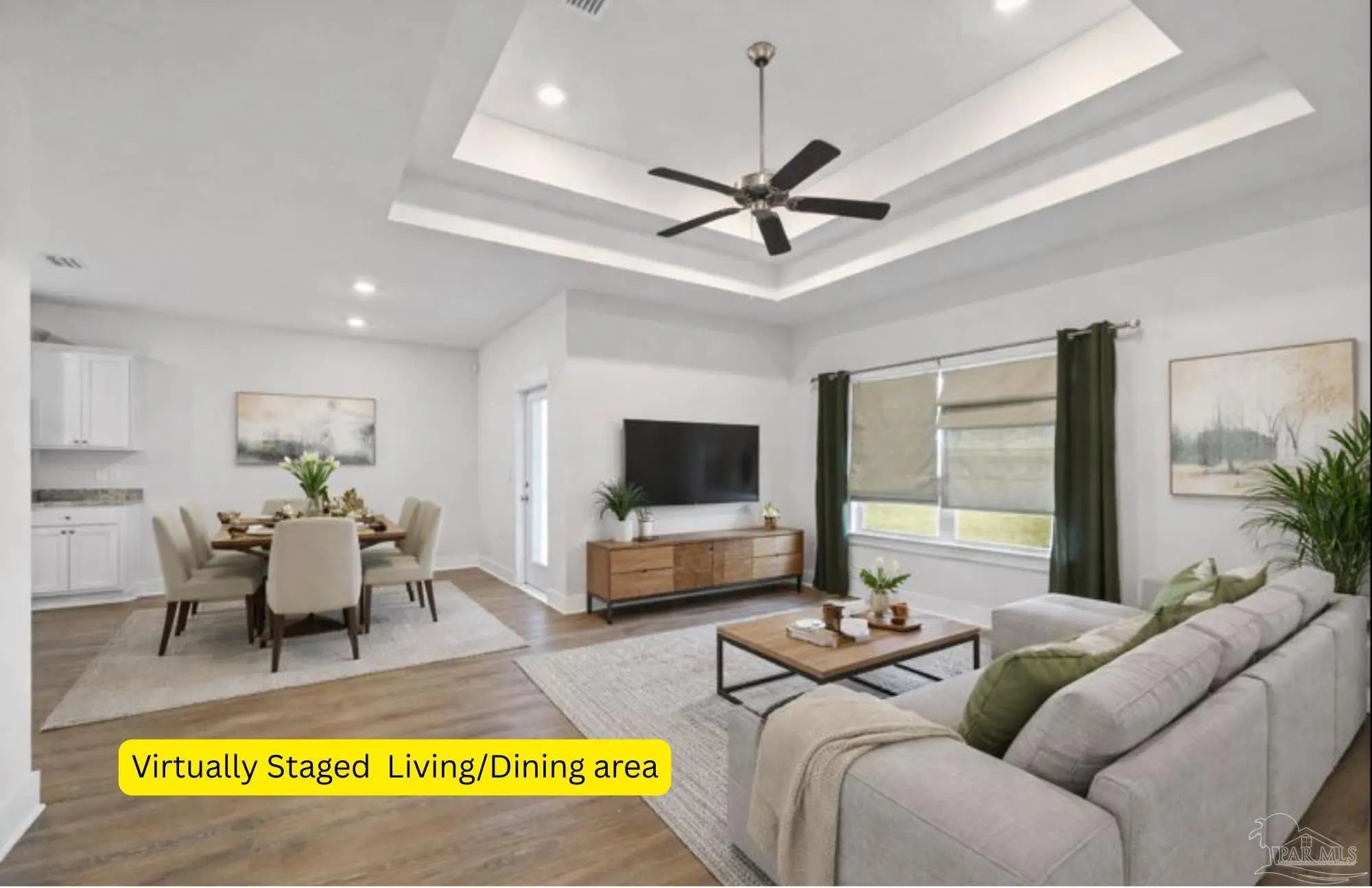 - Baseboards, Ceiling Fan(s), Crown Molding, High Ceilings