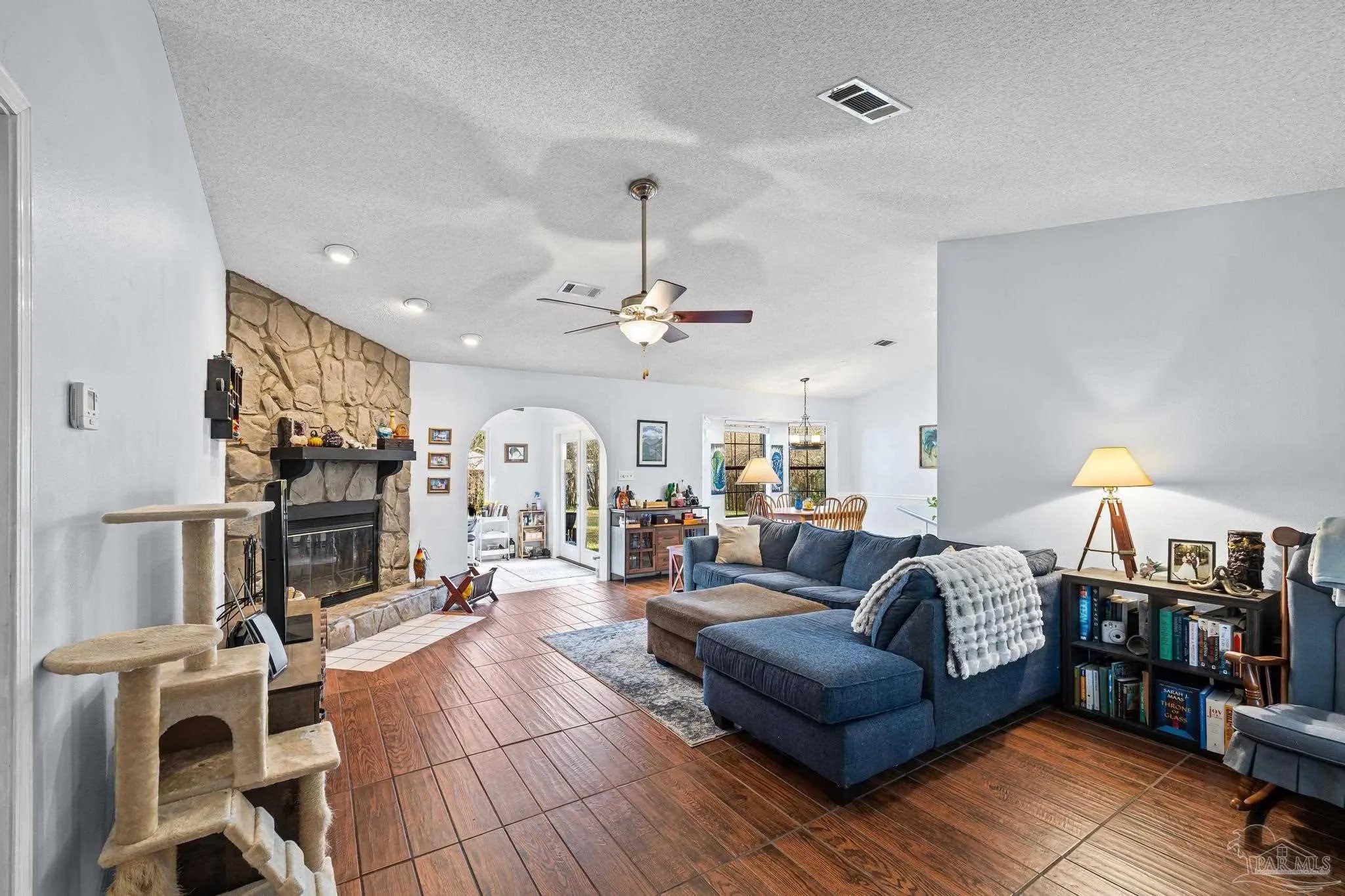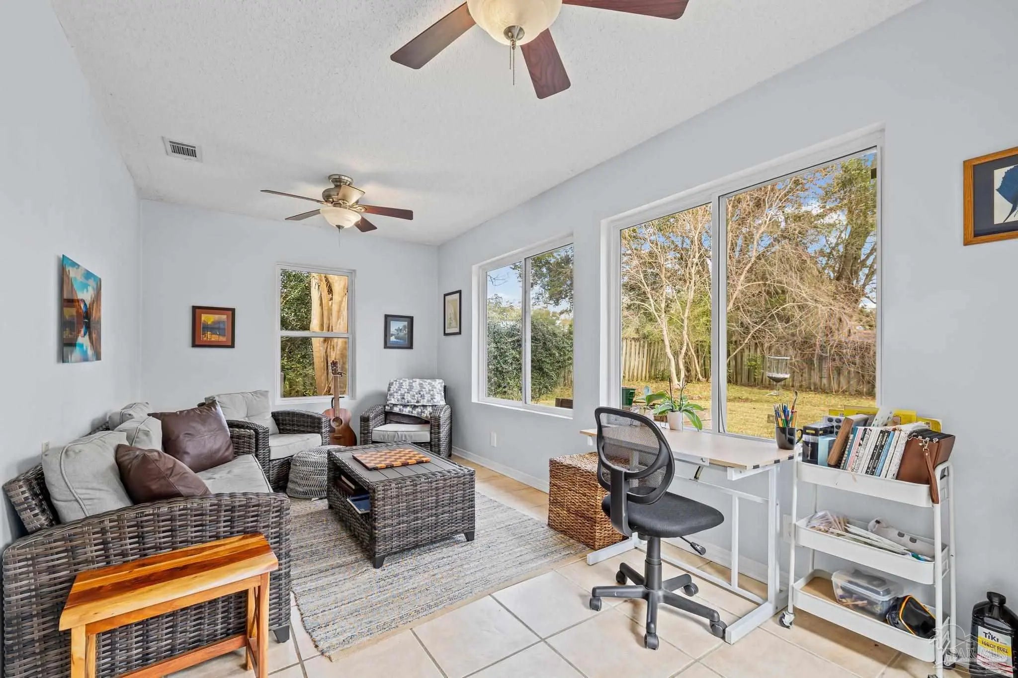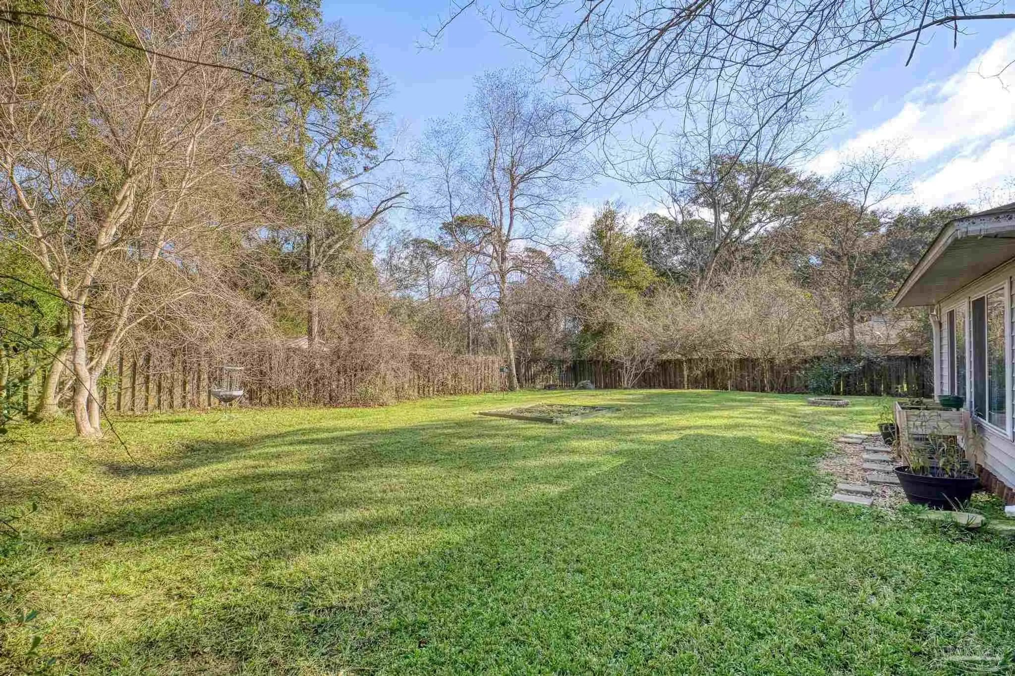 Welcome to this beautifully maintained 3 bedroom, 2 bath home situated on a .27-acre fenced lot offering both privacy and charm. The private backyard is a true retreat, lined with fragrant jasmine and azaleas and featuring a mature lemon tree, perfect for relaxing or entertaining outdoors. Inside, you’ll find an inviting eat-in kitchen complete with a large breakfast bar, ideal for casual dining and gatherings. The living room boasts vaulted ceilings, creating an open, airy atmosphere filled with natural light. Both bathrooms have been recently remodeled, offering modern finishes and comfort. A beautiful sunroom adds flexible living space and can easily be used as a home office, art studio, or relaxation room. Conveniently located near restaurants and shopping, this home also offers the bonus of being just 30 minutes from Pensacola Beach, combining everyday convenience with coastal living. This property is a wonderful blend of comfort, style, and location—perfect for those seeking a peaceful home with easy access to dining, shopping, and the Gulf Coast.