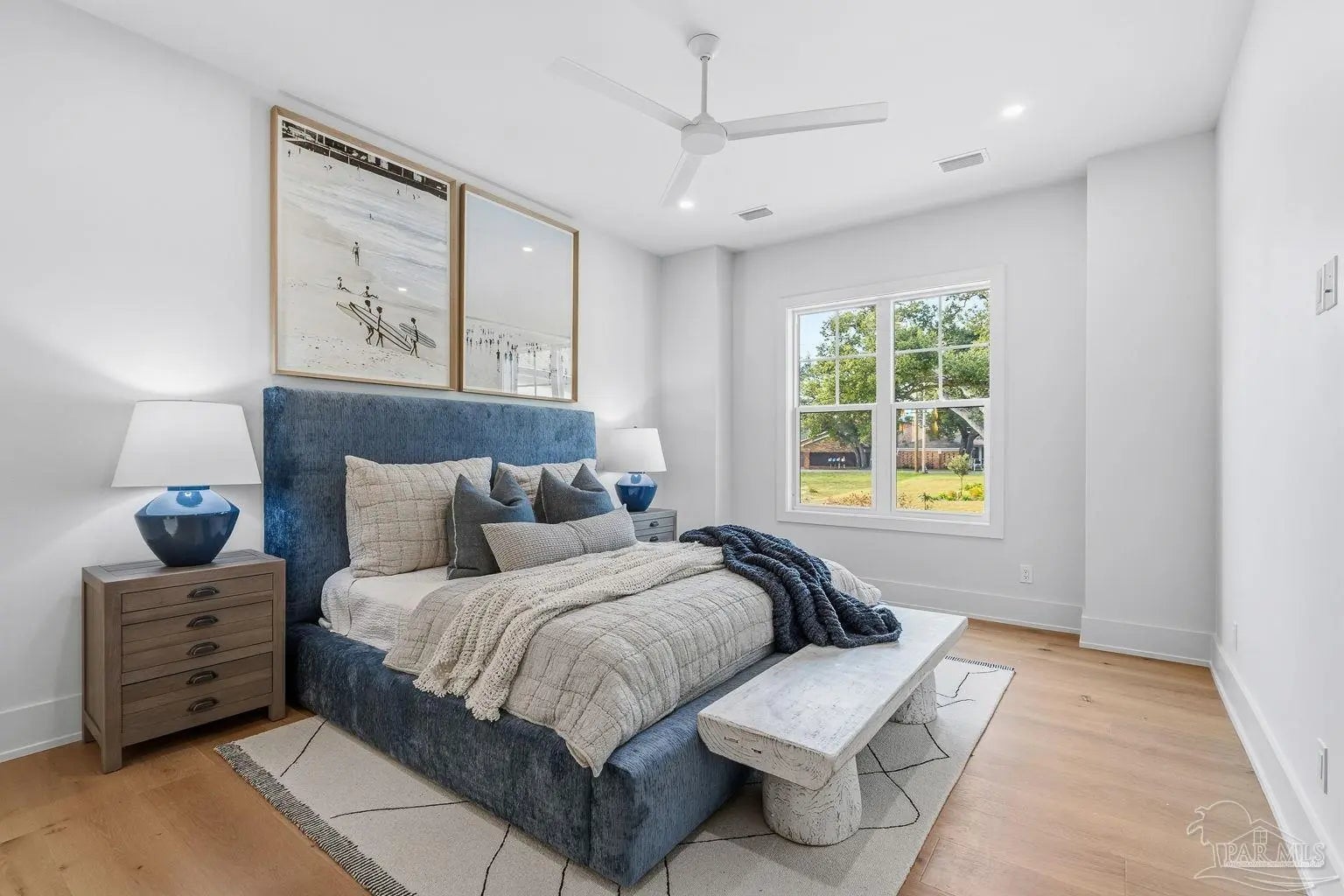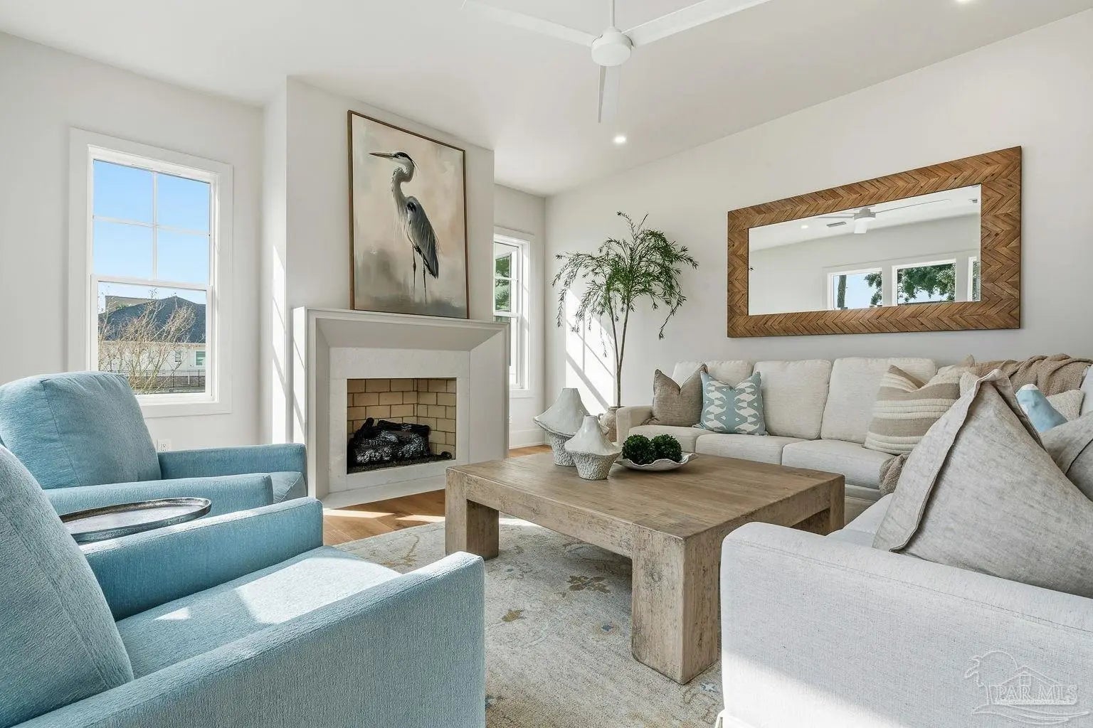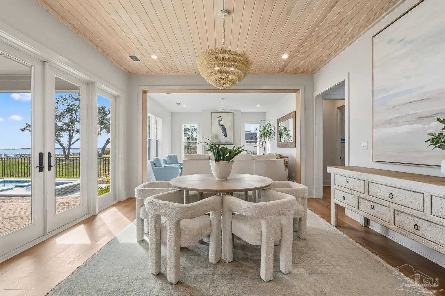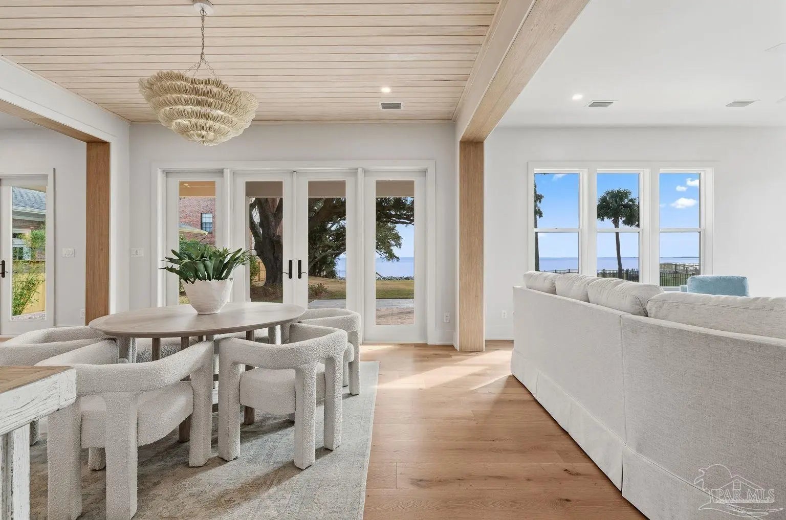 Located on Pensacola Bay, this fabulous residence features three bedrooms, two and a half baths, open living space, a home office, a formal dining space, a gourmet kitchen, and a lovely backyard with an in-ground pool, a firepit, and a private walkway to the water. Upon arriving there is ample driveway parking for guests, while homeowners will utilize the spacious two-car garage. A two-story foyer welcomes you, and leads into the light and bright living area with a view of Pensacola Bay. The living space includes a chic fireplace to anchor the room, with a wall of windows and French doors to the covered patio overlooking the pool. It flows seamlessly into the dining area and kitchen creating a harmonious, blended entertaining area. The kitchen is a dream for home chefs. It features top-tier appliances, an island with bar seating, and abundant cabinet storage for the latest kitchen necessities. The primary suite is found on the first level and features a spacious bedroom with an en-suite bath that includes a double vanity, a relaxing tub, a large walk-in glass shower, and an expansive walk-in closet with built-ins. A home office is also found on the first floor and offers the privacy needed to get work done. Ascending the second story you'll find two additional bedrooms with a shared full bath. An open loft space is wonderful as a reading nook, crafting space, or play area. The backyard is your personal oasis. A covered patio is perfect for meals overlooking the waterfront, with the pool and spa only a few steps away. A built-in firepit is wonderful for chats with friends and family. A private walkway leads to your private sandy beach, which is excellent for catching some rays. The home's location is down the street from the Pensacola Country Club and minutes from both downtown Pensacola, and Pensacola Naval Air Station.