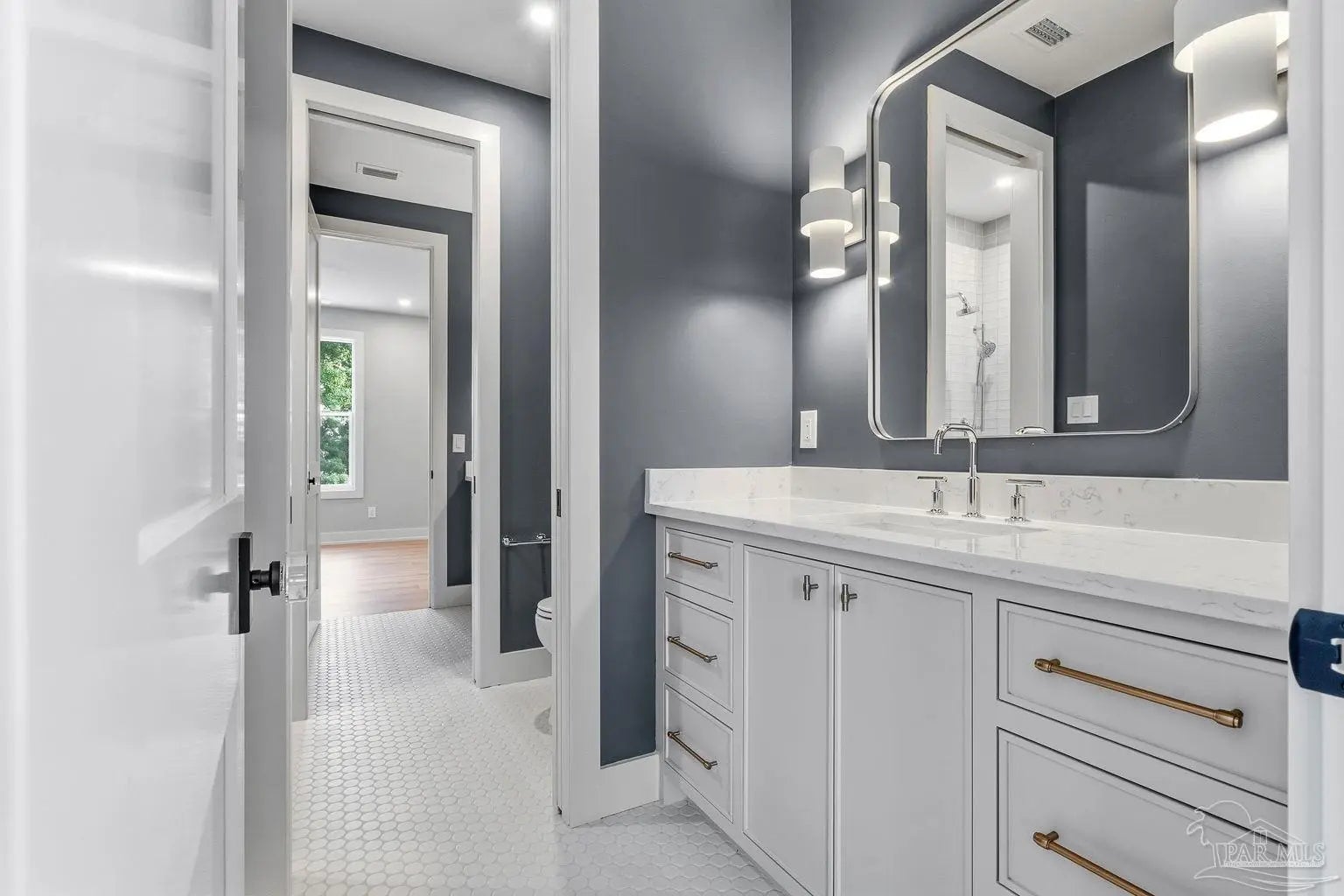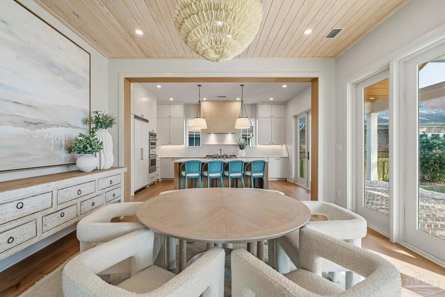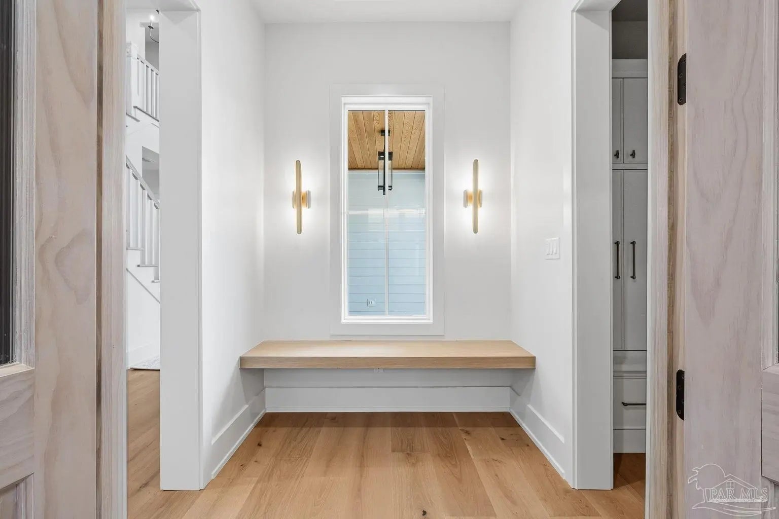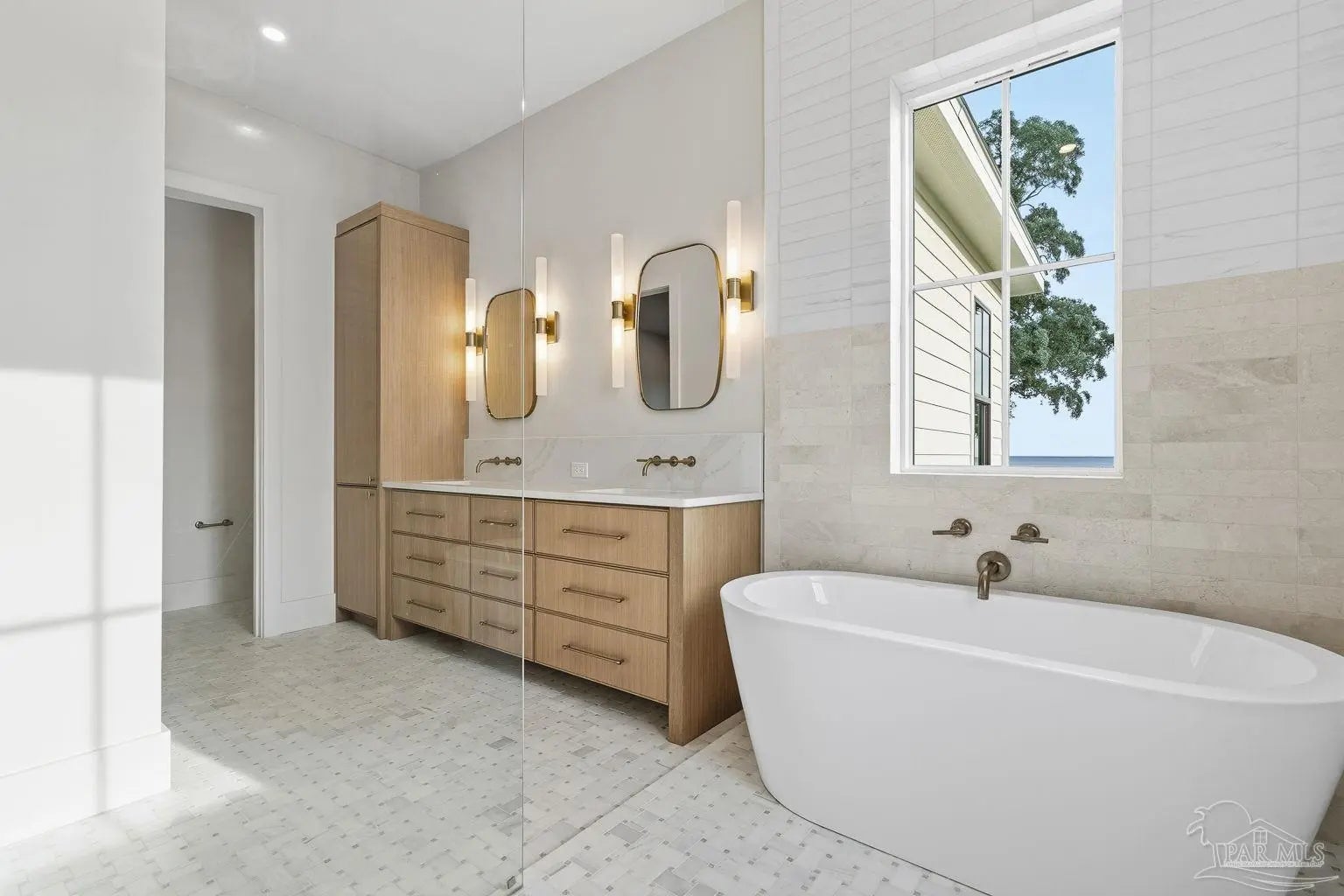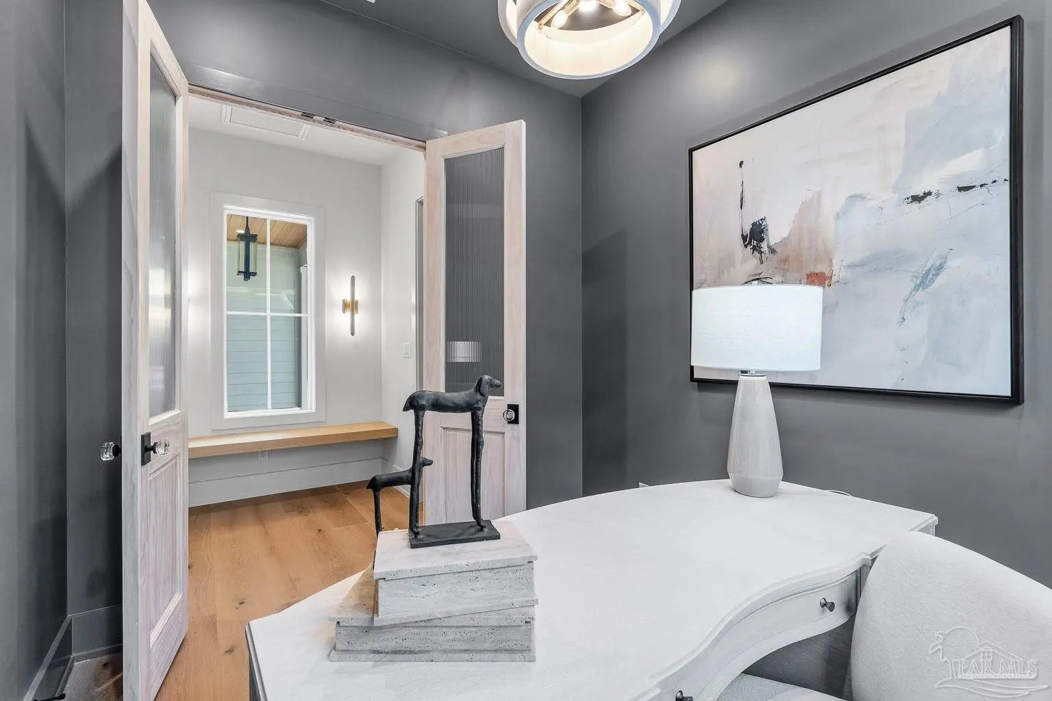 Located on Pensacola Bay, this fabulous residence features three bedrooms, two and a half baths, open living space, a home office, a formal dining space, a gourmet kitchen, and a lovely backyard with an in-ground pool, a firepit, and a private walkway to the water. Upon arriving there is ample driveway parking for guests, while homeowners will utilize the spacious two-car garage. A two-story foyer welcomes you, and leads into the light and bright living area with a view of Pensacola Bay. The living space includes a chic fireplace to anchor the room, with a wall of windows and French doors to the covered patio overlooking the pool. It flows seamlessly into the dining area and kitchen creating a harmonious, blended entertaining area. The kitchen is a dream for home chefs. It features top-tier appliances, an island with bar seating, and abundant cabinet storage for the latest kitchen necessities. The primary suite is found on the first level and features a spacious bedroom with an en-suite bath that includes a double vanity, a relaxing tub, a large walk-in glass shower, and an expansive walk-in closet with built-ins. A home office is also found on the first floor and offers the privacy needed to get work done. Ascending the second story you'll find two additional bedrooms with a shared full bath. An open loft space is wonderful as a reading nook, crafting space, or play area. The backyard is your personal oasis. A covered patio is perfect for meals overlooking the waterfront, with the pool and spa only a few steps away. A built-in firepit is wonderful for chats with friends and family. A private walkway leads to your private sandy beach, which is excellent for catching some rays. The home's location is down the street from the Pensacola Country Club and minutes from both downtown Pensacola, and Pensacola Naval Air Station.