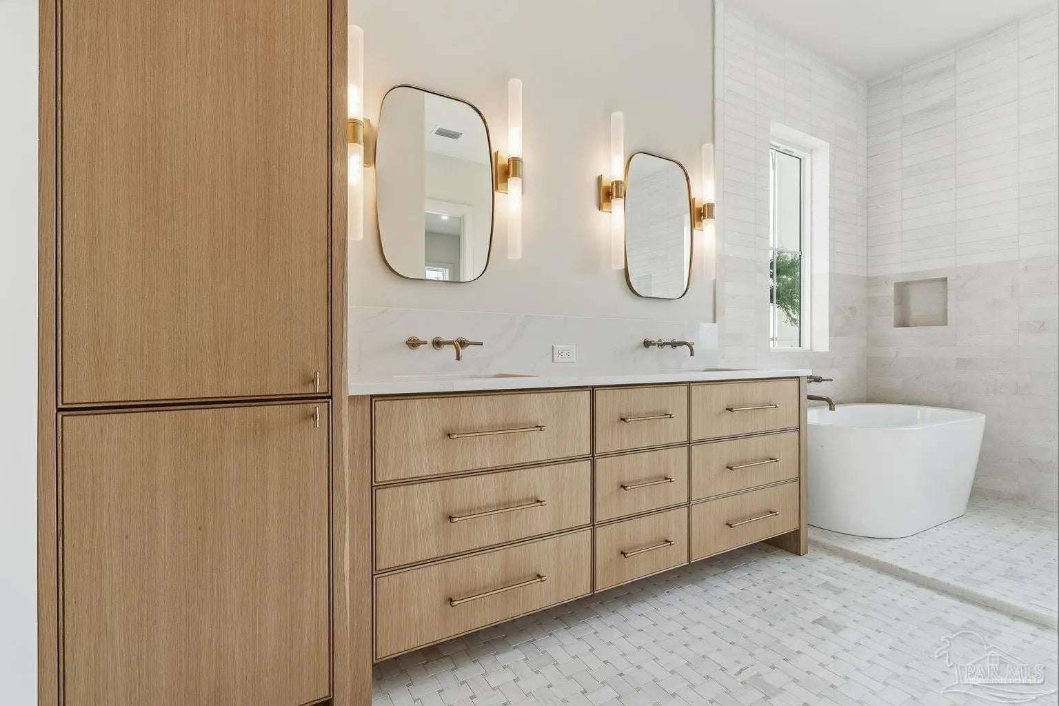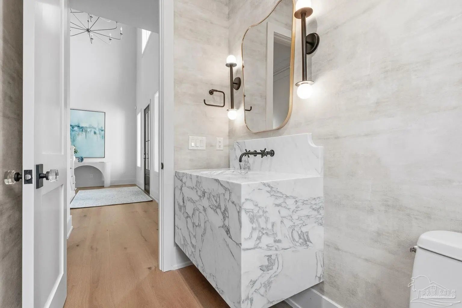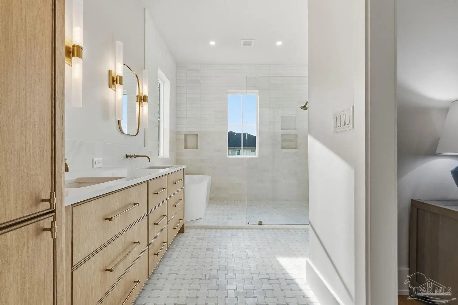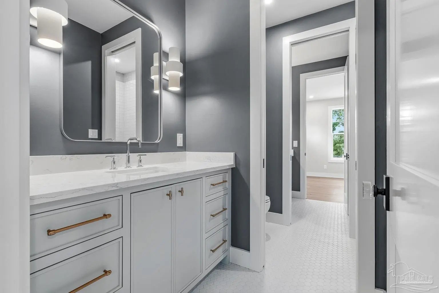Located on Pensacola Bay, this fabulous residence features three bedrooms, two and a half baths, open living space, a home office, a formal dining space, a gourmet kitchen, and a lovely backyard with an in-ground pool, a firepit, and a private walkway to the water. Upon arriving there is ample driveway parking for guests, while homeowners will utilize the spacious two-car garage. A two-story foyer welcomes you, and leads into the light and bright living area with a view of Pensacola Bay. The living space includes a chic fireplace to anchor the room, with a wall of windows and French doors to the covered patio overlooking the pool. It flows seamlessly into the dining area and kitchen creating a harmonious, blended entertaining area. The kitchen is a dream for home chefs. It features top-tier appliances, an island with bar seating, and abundant cabinet storage for the latest kitchen necessities. The primary suite is found on the first level and features a spacious bedroom with an en-suite bath that includes a double vanity, a relaxing tub, a large walk-in glass shower, and an expansive walk-in closet with built-ins. A home office is also found on the first floor and offers the privacy needed to get work done. Ascending the second story you'll find two additional bedrooms with a shared full bath. An open loft space is wonderful as a reading nook, crafting space, or play area. The backyard is your personal oasis. A covered patio is perfect for meals overlooking the waterfront, with the pool and spa only a few steps away. A built-in firepit is wonderful for chats with friends and family. A private walkway leads to your private sandy beach, which is excellent for catching some rays. The home's location is down the street from the Pensacola Country Club and minutes from both downtown Pensacola, and Pensacola Naval Air Station.