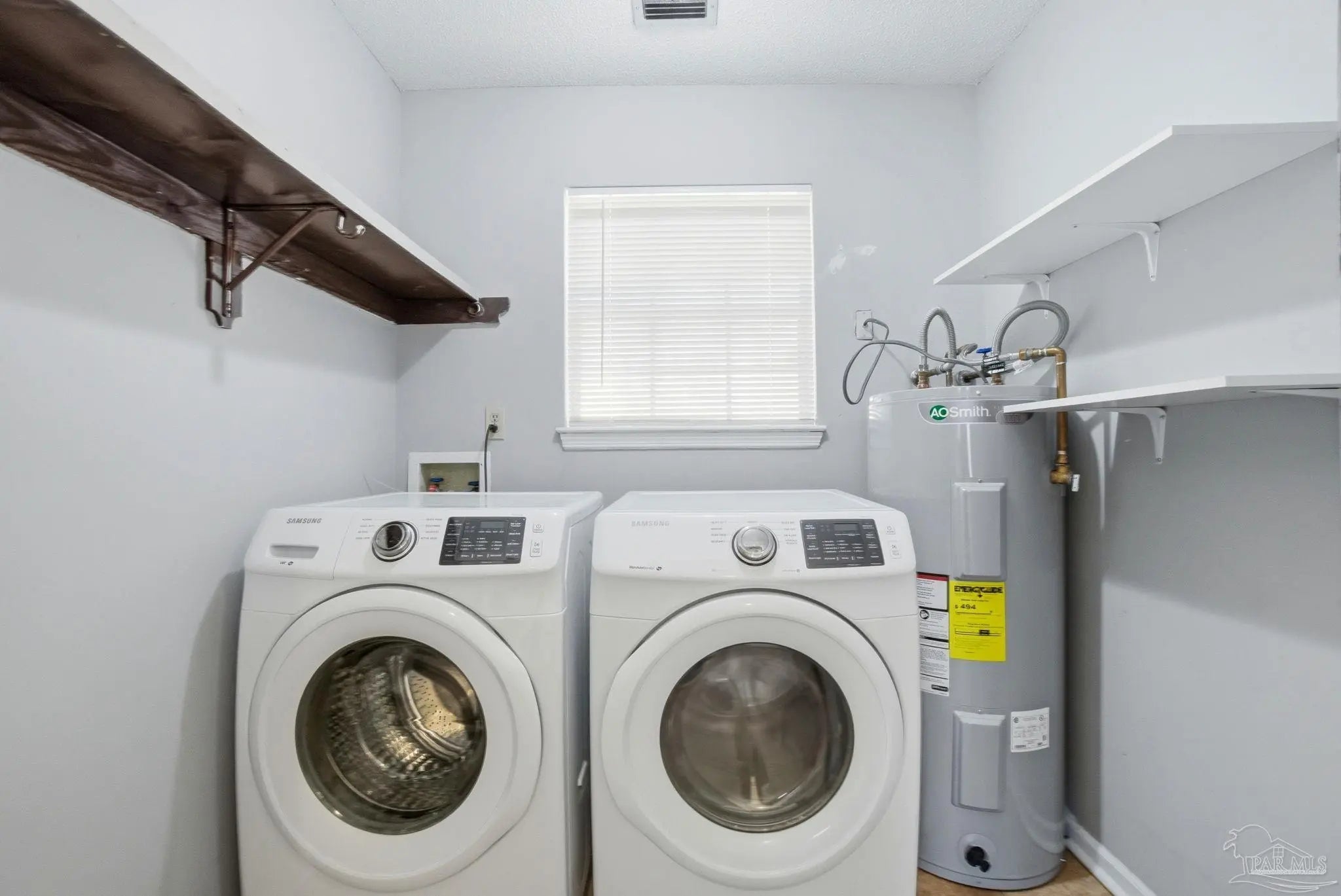 Welcome to this move-in ready Willow Bend home with all the big-ticket updates already completed, including a 2021 roof, 2022 Rheem HVAC, and a 2025 hot water heater. Located just a short walk from the neighborhood lake, this 3 bedroom, 2 bathroom home offers an inviting living space with a wood-burning fireplace, a bright kitchen, a convenient downstairs half bath, and a full-size laundry room. The first-floor primary suite features a walk-in closet, double-sink quartz vanity, and a bay window seating area. Upstairs includes two additional bedrooms and a full bath. The fully fenced backyard with pergola and storage sheds is perfect for pets, entertaining, or quiet weekend mornings. Minutes to military bases, hospital, schools, shopping, and dining.