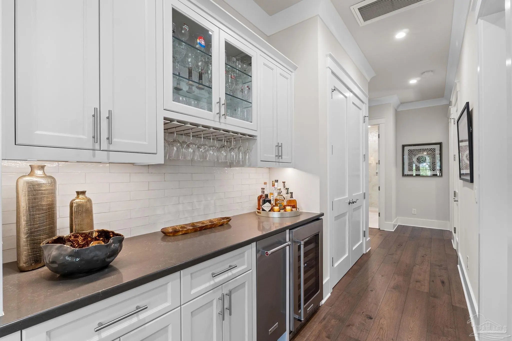 - Baseboards, Ceiling Fan(s), Crown Molding, High Ceilings, Wet Bar
