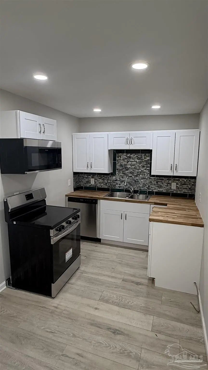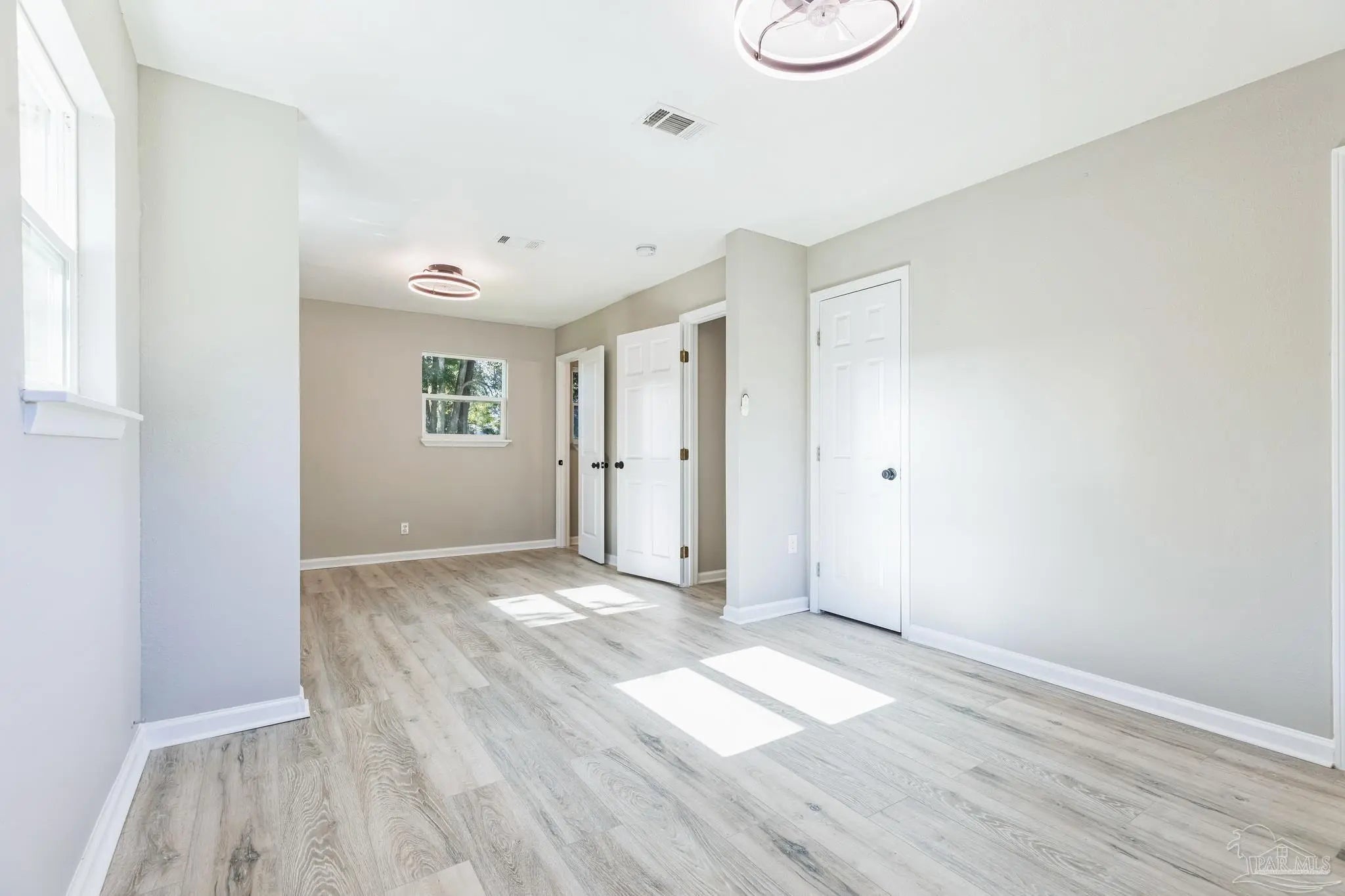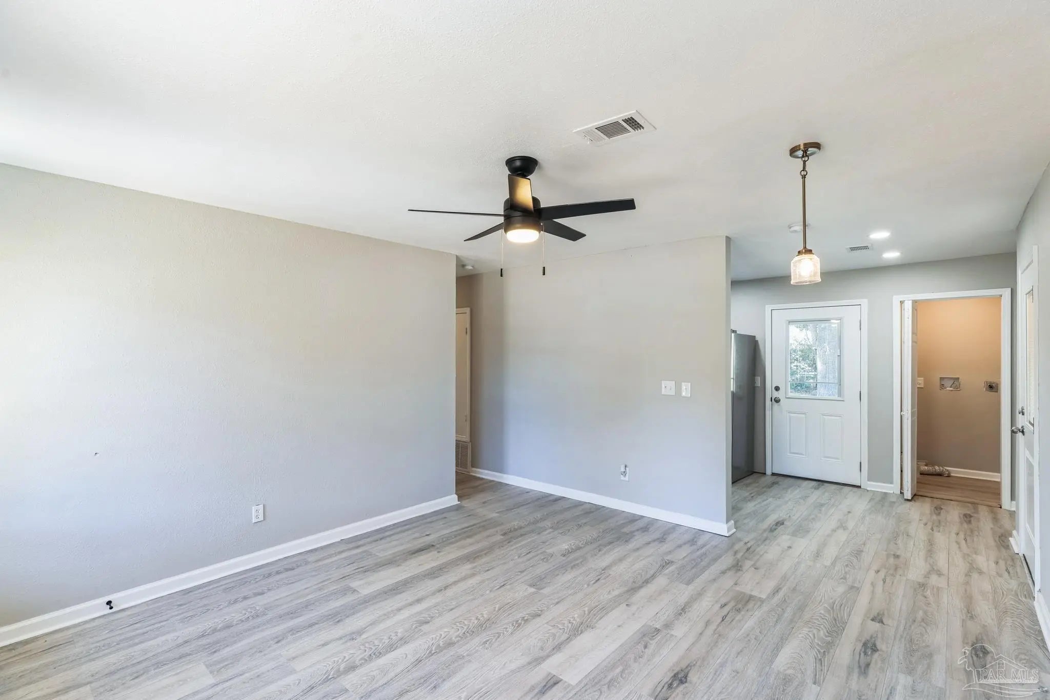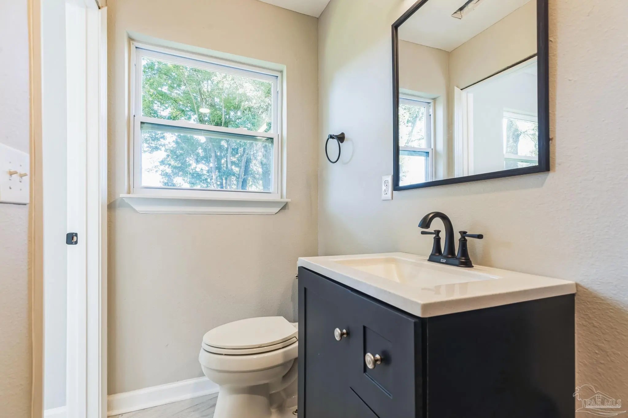 Completely remodeled inside and out, this beautifully updated East Hill home is ready for its next resident. Offering 3 bedrooms and 2 full baths with 1,100+ square feet of thoughtfully designed living space on a .19-acre parcel spanning three lots (per survey), this home blends modern efficiency with timeless charm. A welcoming front porch and refreshed landscaping enhance its inviting curb appeal. Inside, the open layout features tile flooring throughout, light neutral tones, and a bright, airy flow. The stylish kitchen showcases butcher block countertops, modern backsplash, stainless steel appliances, and ample cabinetry. The large master suite and custom-tiled bathrooms add both comfort and sophistication. Energy-efficient upgrades include a tankless water heater, insulated windows, insulated attic, central air, and gas heat. The expansive back deck overlooks a private backyard—perfect for entertaining, relaxing, or enjoying time with pets—complete with a hot/cold outdoor shower. Ideally located in East Hill between Downtown and Cordova, with easy access to I-110, NAS Pensacola, Hurlburt, Whiting, and Eglin A.F.B., plus nearby shopping, beaches, dining, and entertainment. Don’t miss this move-in-ready opportunity—schedule your private showing today.
