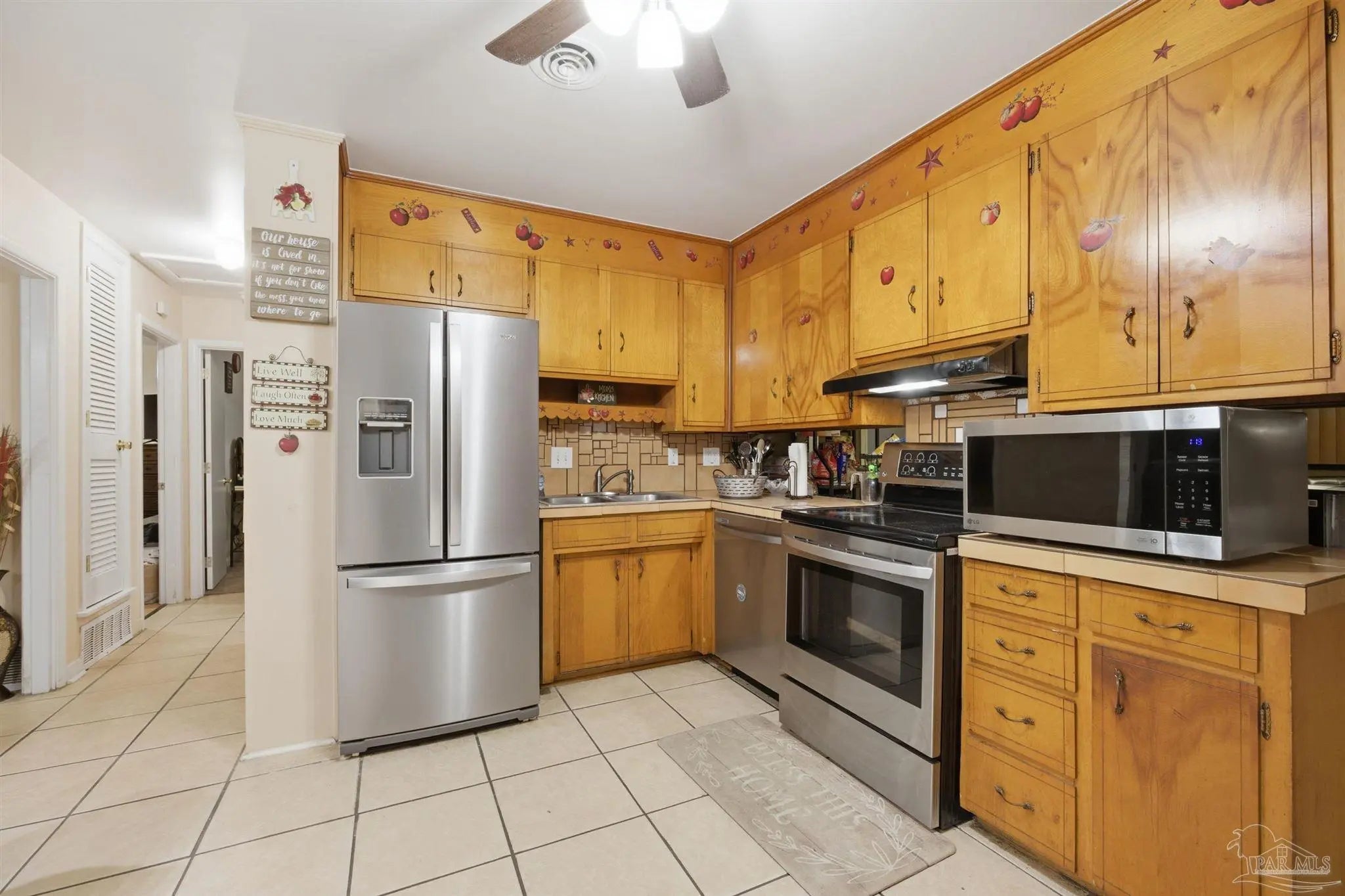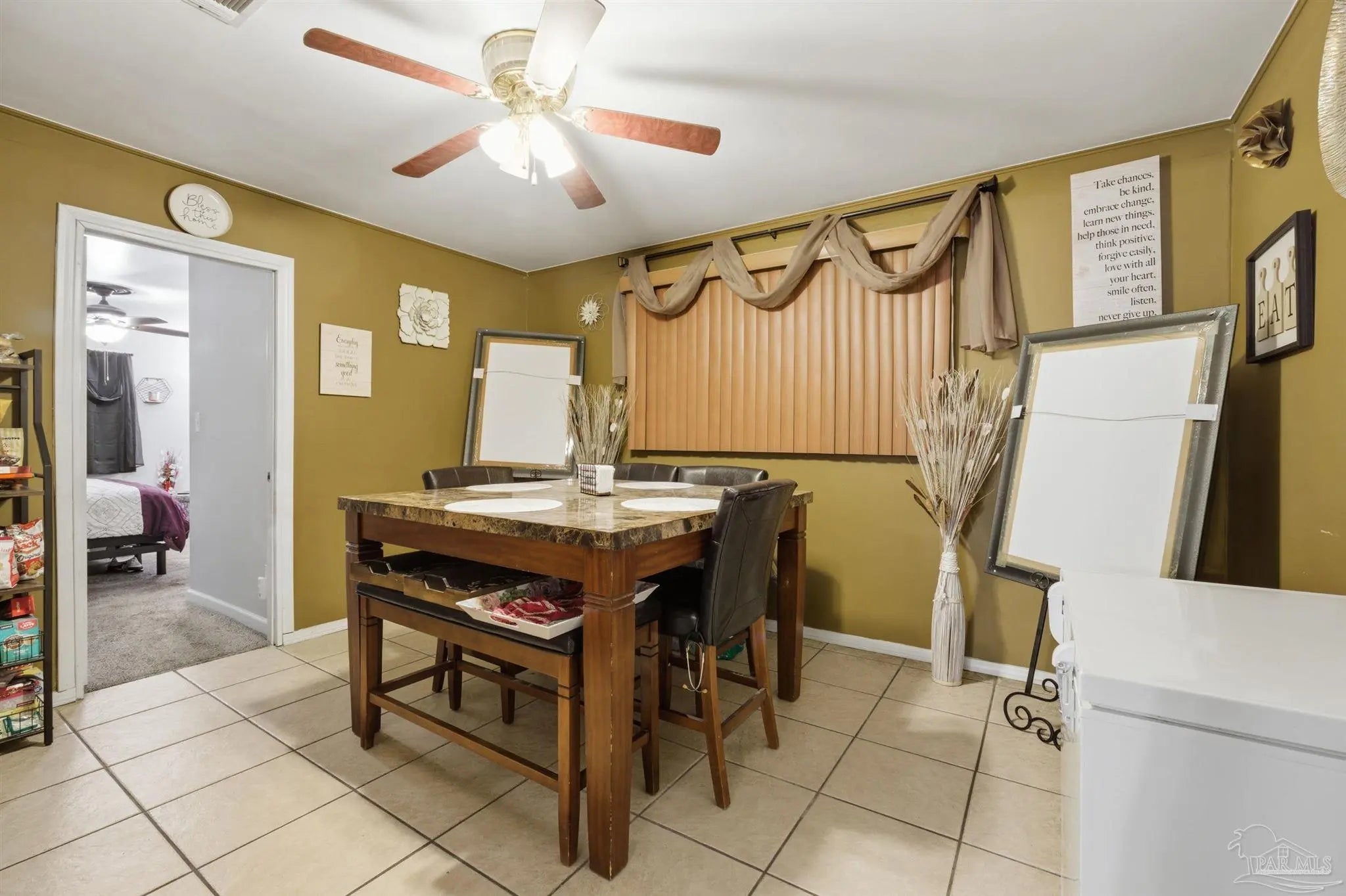 Need a 5th Bedroom, This Could Be Your Dream Home! This home provides a layout that flows seamlessly from the entry into the kitchen and dining areas. Ceramic tile flooring and generous open spaces provide the perfect backdrop for your favorite furnishings. The kitchen features real wood cabinetry. A formal dining area adds even more flexibility. Just off the entry is the first bedroom, while off the kitchen you’ll find a second living area currently used as an entertainment and TV room—ideal for gatherings or a potential fifth bedroom. The primary bedroom is generously sized, easily accommodating larger furniture. Outside, enjoy the welcoming front porch and a large, privacy-fenced backyard complete with a concrete entertaining pad. Conveniently located in Central Pensacola, this home is close to shopping, dining, and schools.