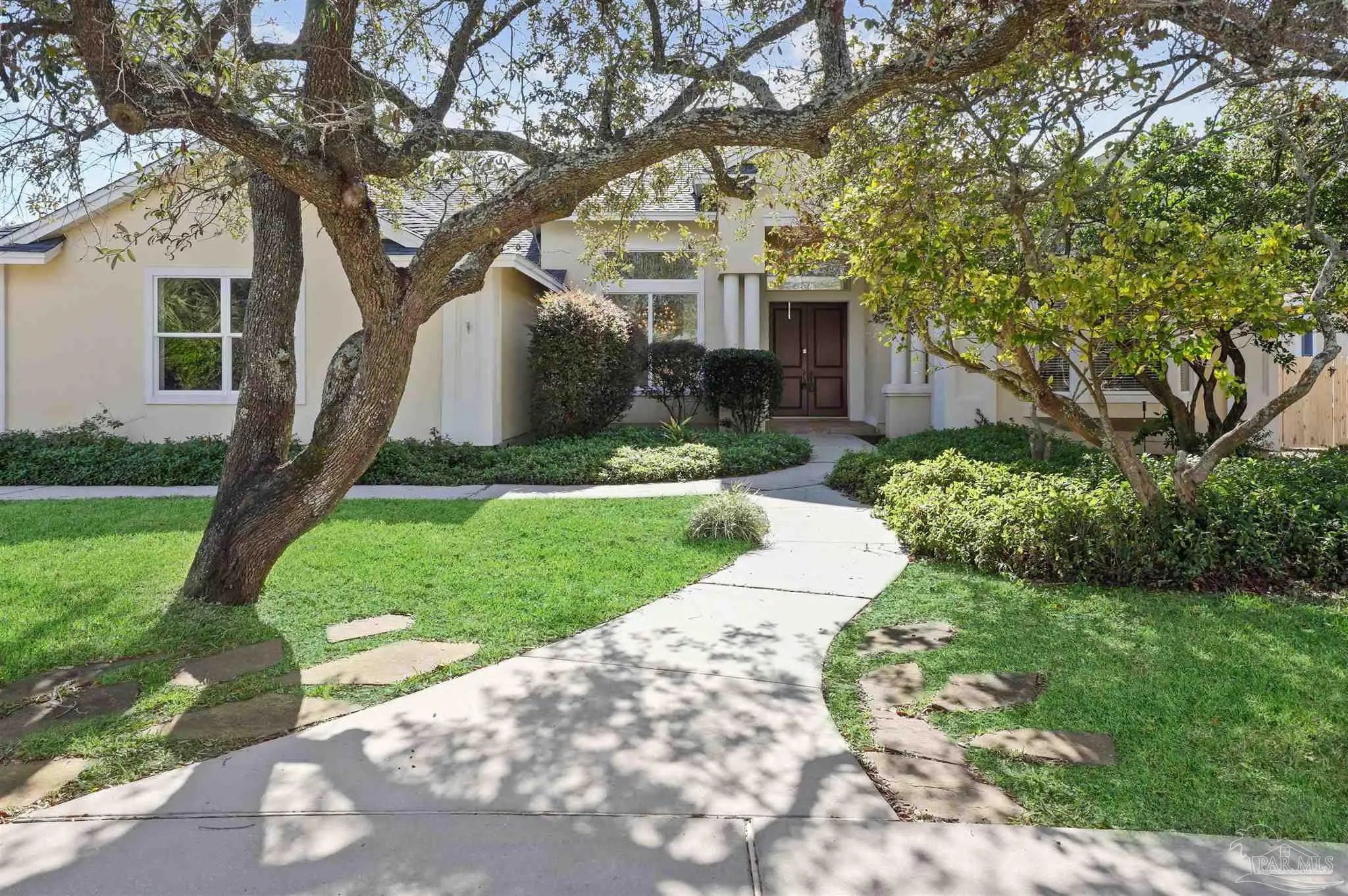3,401 sqft Gulf Breeze Proper home! 4BR+Office/5BA (3 full/2 half). 2025 Roof/Water Heater, 2023 HVAC. Screened gunite pool/spa, gas chef’s kitchen. No carpet. Back on market no fault of seller. This exceptional Gulf Breeze home delivers the perfect blend of luxury, comfort, and thoughtful design, ideal for both everyday living and entertaining. A circular driveway and two-car oversized garage welcome you to a beautifully laid-out split floor plan featuring four bedrooms plus an office/flex room, two spacious living areas, and high ceilings enhanced with elegant crown molding throughout. There is no carpeting—only tile and luxury plank flooring—creating a clean, modern aesthetic. The well-appointed kitchen is a standout with granite countertops, a large island, gas stovetop, double ovens, built-in microwave, and a butler’s pantry with ice maker, making it perfect for hosting and gatherings. The primary suite offers two closets and sliding doors that open to a covered patio overlooking the screen-enclosed gunite pool, creating a private retreat. Outdoor living shines with a privacy-fenced yard and inviting pool area. Additional highlights include three full bathrooms and two half baths, an oversized laundry and mudroom off the garage, a 2025 roof and water heater, and a 2023 HVAC system. Located in the heart of Gulf Breeze Proper, this beautifully updated home offers space, style, and functionality with low HOA dues and an ideal location just minutes from schools, shopping, and beaches.