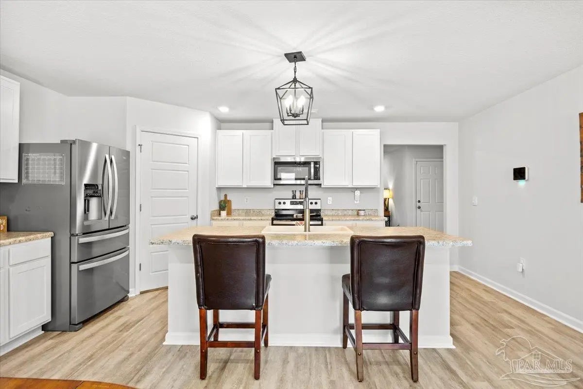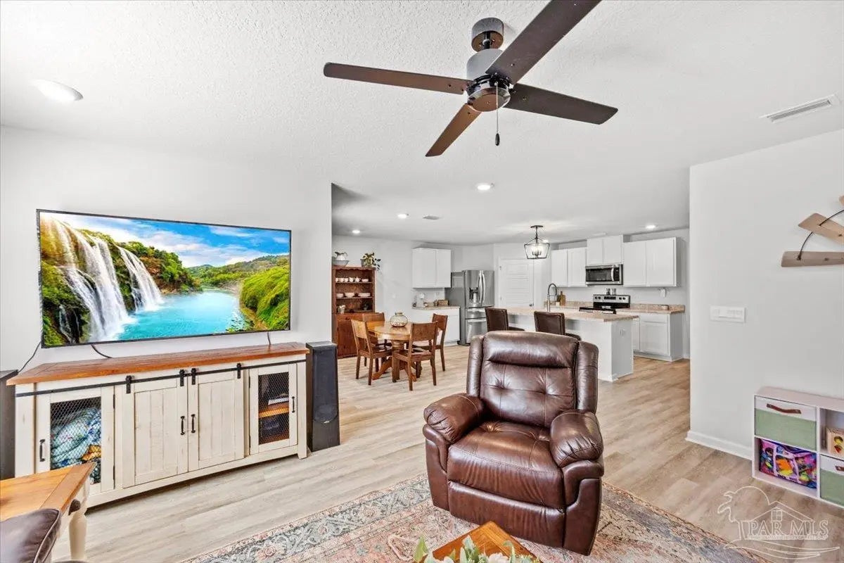 Stop by for your tour! Welcome to this beautifully maintained four-bedroom, two bath home in the sought after Bridlewood subdivision. Built in 2023 and showing like new, this thoughtfully designed 1,787 square foot floor plan offers both comfort and functionality. As you enter the home, three generously sized guest bedrooms are positioned toward the front, providing privacy and flexibility. The heart of the home is the open concept living room and kitchen area, featuring an island, stainless steel appliances, and a large pantry- perfect for everyday living and entertaining. The primary suite is tucked just off the living space and includes a spacious bathroom and an impressive walk-in closet. Luxury vinyl plank flooring runs throughout the main living areas, with carpeted bedrooms for added comfort. Recent upgrades include a fenced yard, garage shelving, updated kitchen sink, ceiling fans and front gutters. Bridlewood is known for its quiet streets, welcoming atmosphere and charming small-town feel, while still being conveniently close to shopping, dining and daily essentials. This home is move-in ready and offers the perfect blend of modern living and neighborhood charm.
