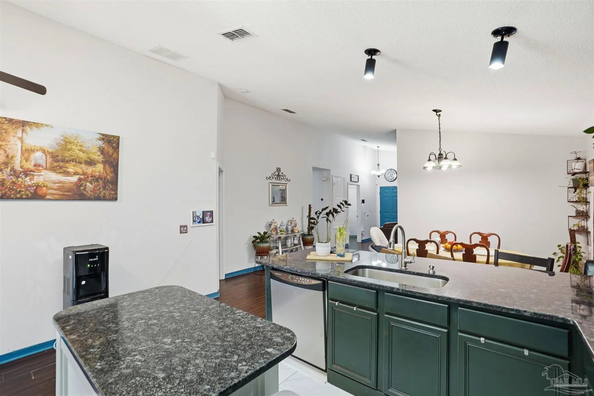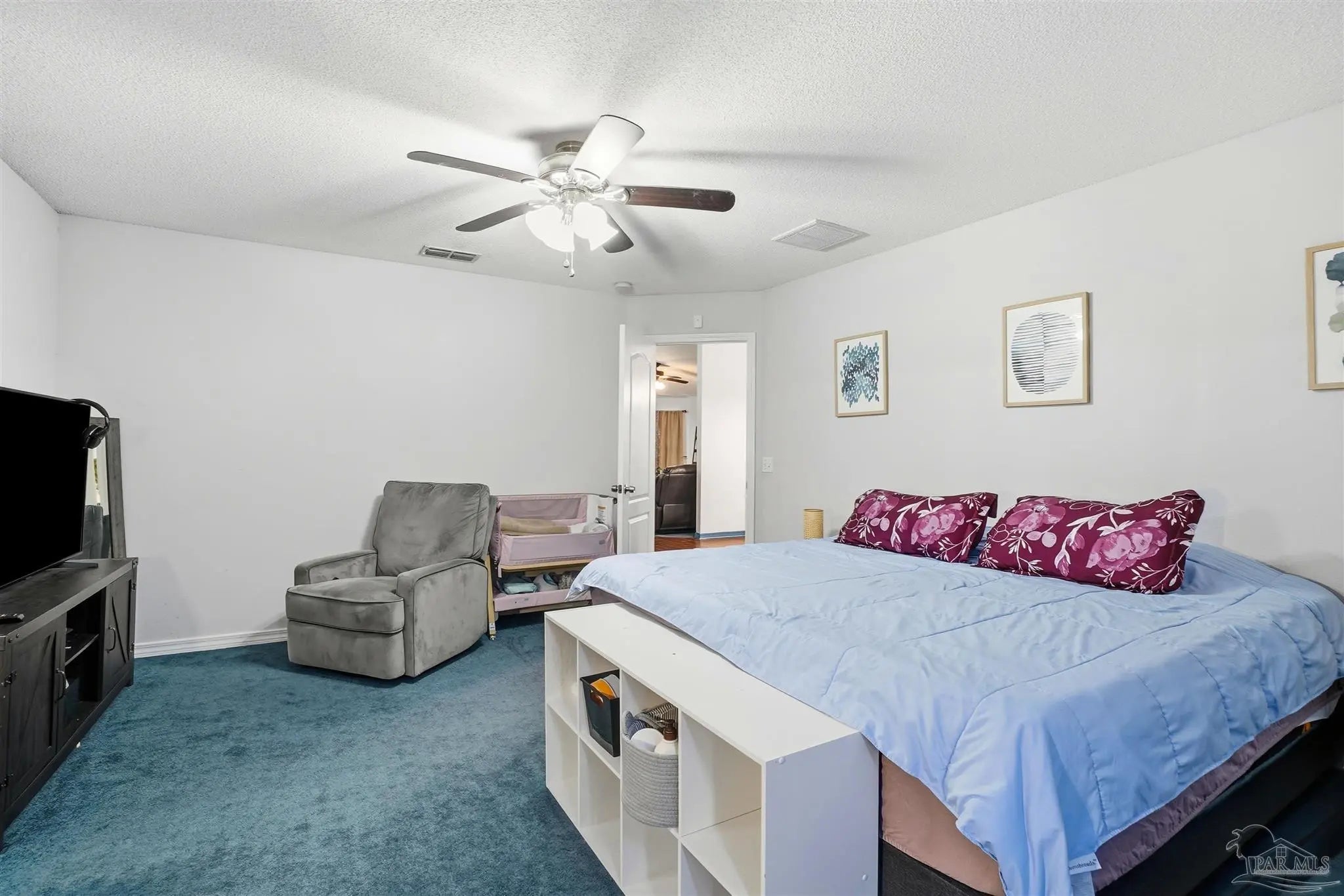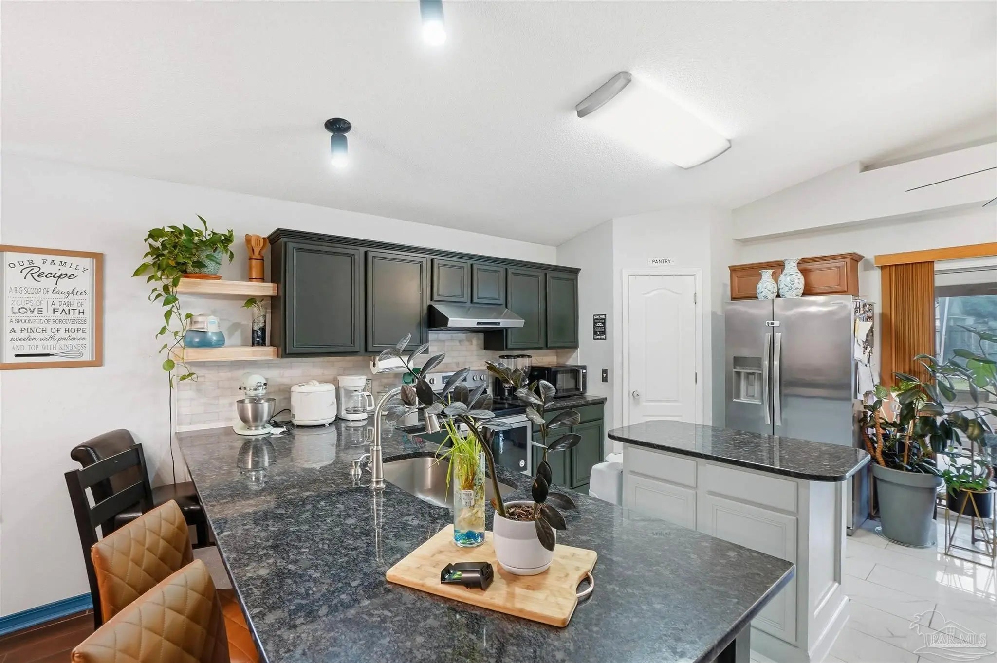 Welcome to coastal living in Navarre just 4 miles from the beach. This home offers a spacious, fully fenced backyard with a covered porch area, perfect for relaxing or entertaining year-round. Inside, the open floor plan is highlighted by vaulted ceilings and a bright, inviting living area. The kitchen overlooks both the living and dining spaces and features a breakfast bar, generous counter space, a pantry, and a layout designed for connection and ease. The primary suite is thoughtfully separated from the additional bedrooms, offering privacy and comfort. The en-suite bath includes a walk-in closet, double vanity, and a garden tub for unwinding at the end of the day. Conveniently located within 2 miles of Publix, dining, and shopping along US-98 and less than 4 miles from Navarre Beach, this home combines everyday convenience with easy access to the coast.