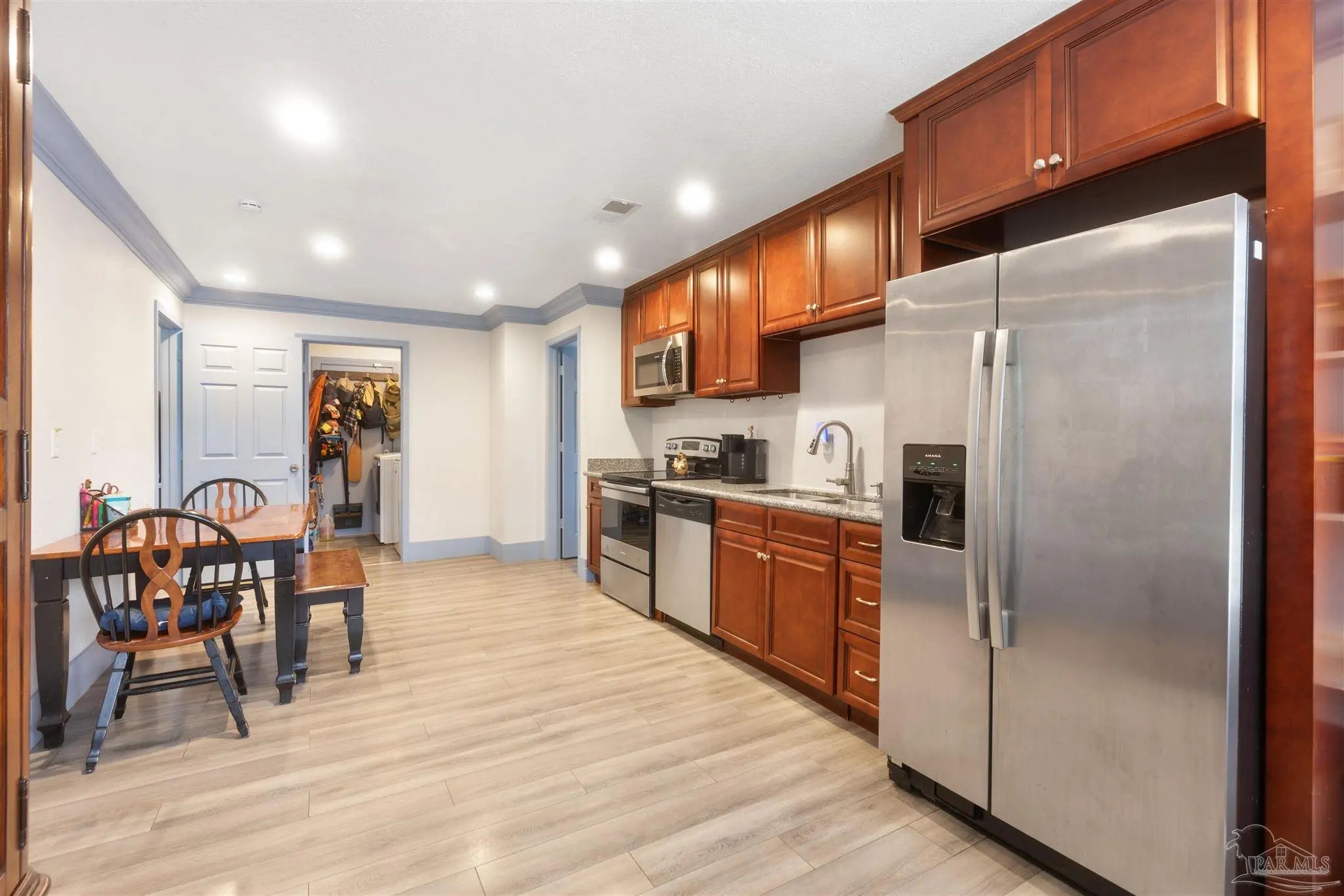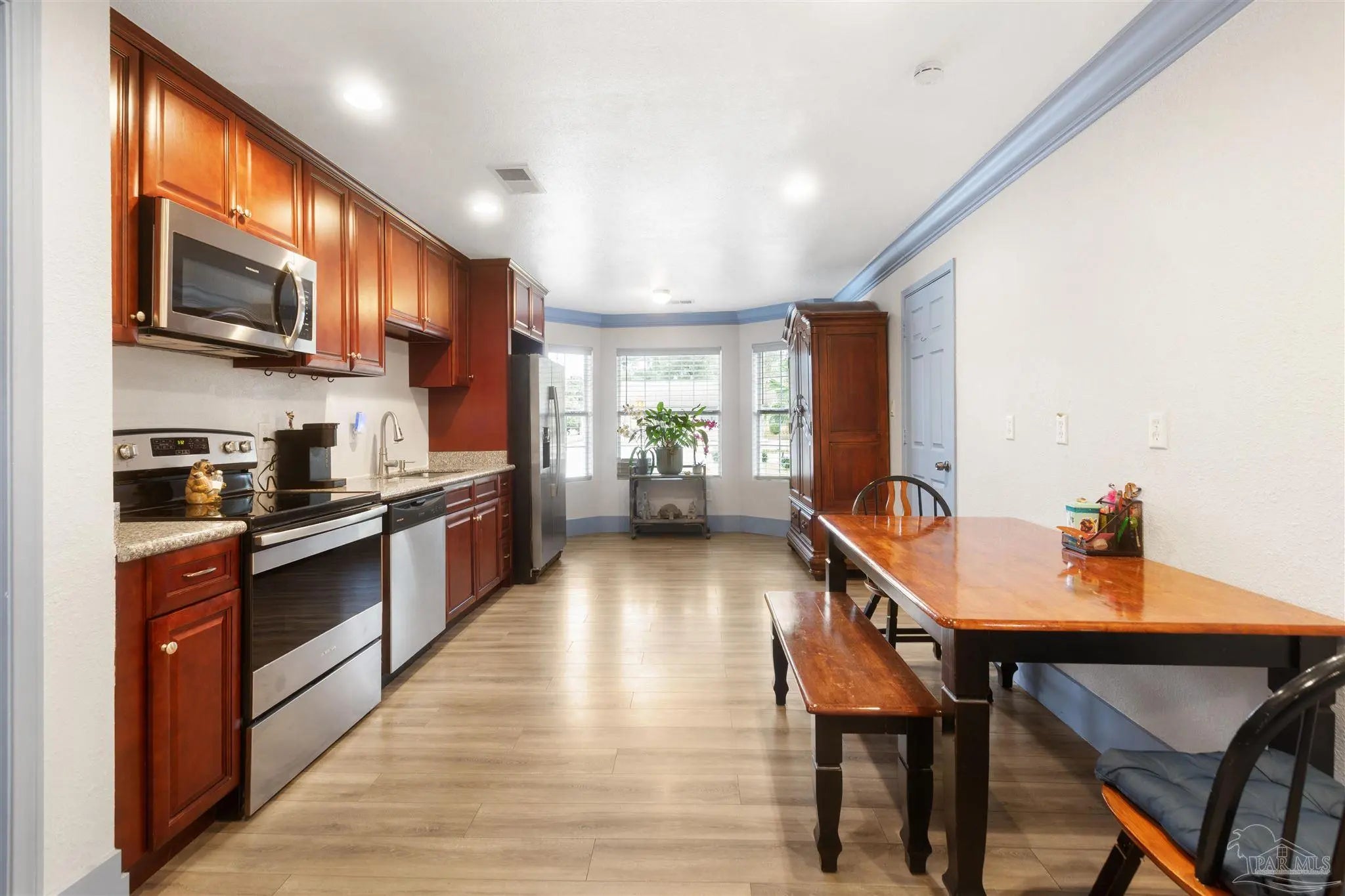Welcome home to comfort, convenience, and future potential. Ideally located just minutes from a coveted middle school, this well-maintained 4-bedroom, 2-bath home offers an excellent opportunity for both immediate enjoyment and thoughtful customization. The functional floor plan features a split primary suite, thoughtfully separated from the three additional bedrooms to provide privacy and retreat. Generous living and dining spaces offer flexibility, with a wall between the kitchen and living area that can be removed to create a bright, modern open-concept layout—perfect for entertaining and everyday living. Natural light flows throughout, highlighting the home’s inviting feel and adaptable design possibilities. Step outside to a covered patio overlooking a spacious, fully fenced backyard, ideal for gatherings, pets, play, or simply relaxing in your own private outdoor oasis. With a prime location near top-rated schools, a desirable split-bedroom layout, and clear potential to add value, this home is a standout opportunity for buyers seeking both lifestyle and long-term upside. Don’t miss your chance to make this home your own.