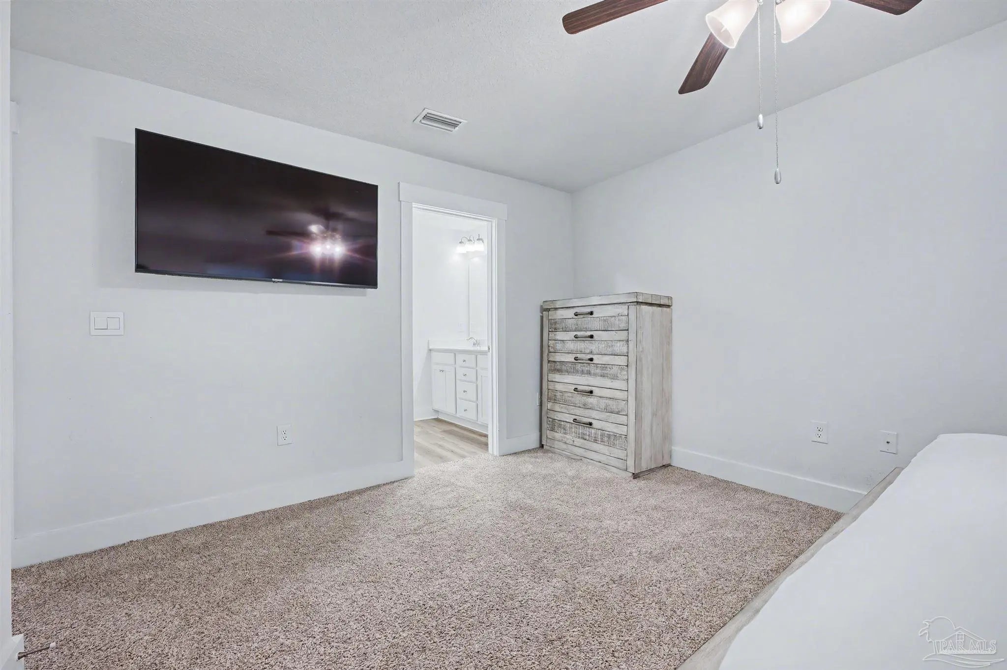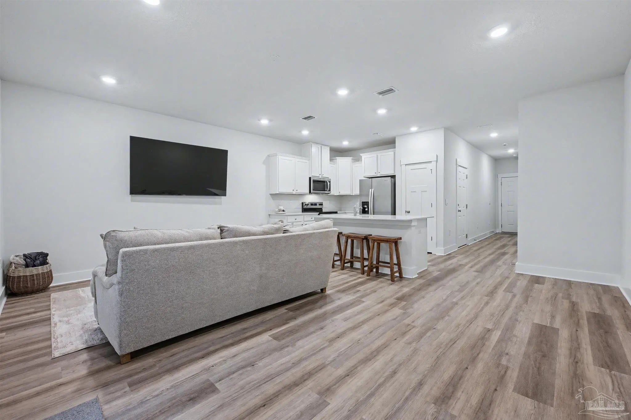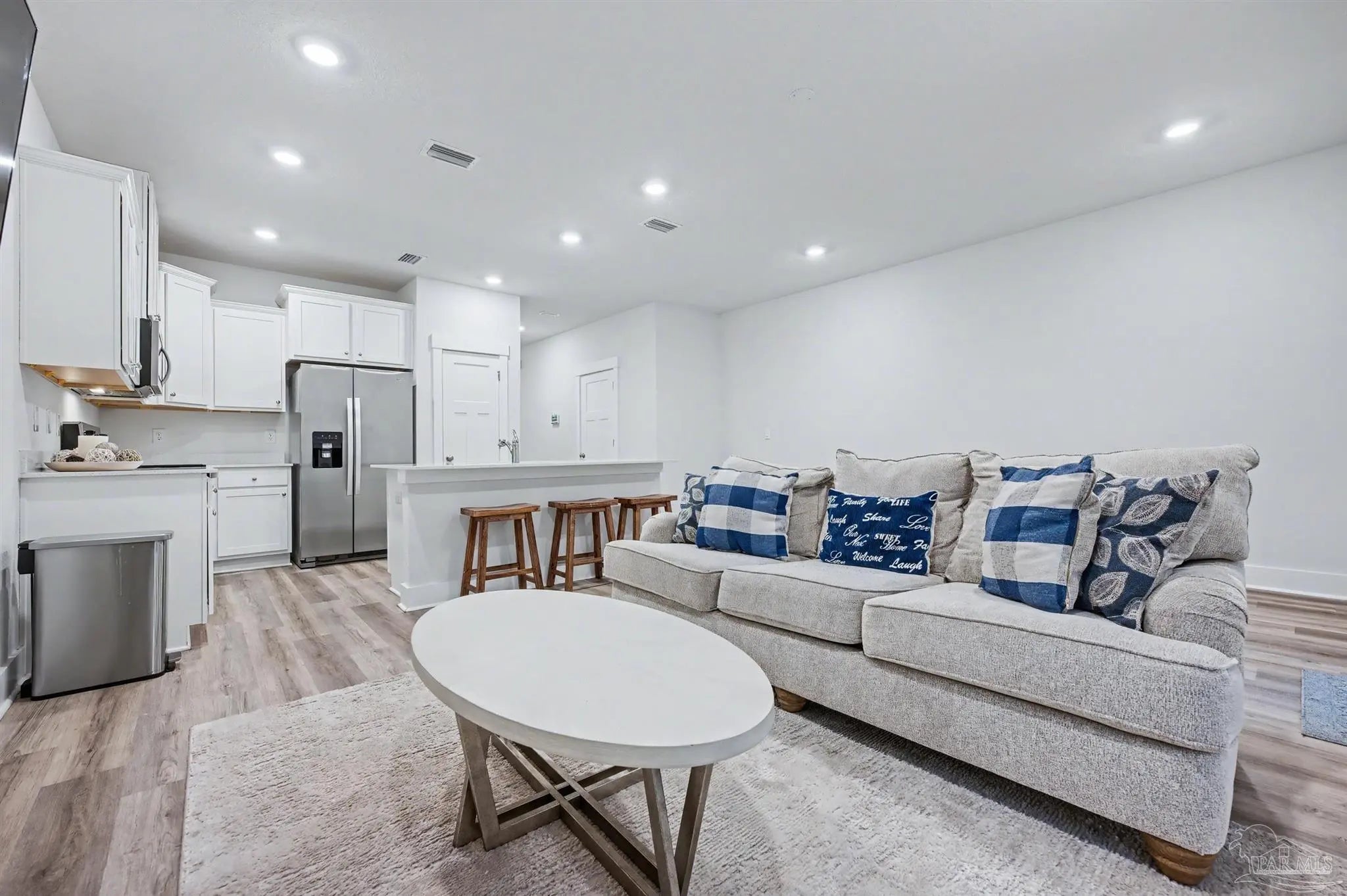 This home is one of the original builds in Midtown Oaks, completed before the builder transitioned to lower-end finishes, and it stands apart in both quality and detail. Constructed with durable Hardie board siding, the home features quartz countertops, stainless steel appliances, all window blinds, a washer and dryer, and some furnishings, including a large living room TV and some bedroom furniture, making it truly move-in or rent-ready. Designed with the highly desirable Palm floor plan, the open-concept layout seamlessly connects the living, dining, and kitchen areas, creating a welcoming space for everyday living and entertaining. The kitchen offers a spacious breakfast bar, pantry, and modern finishes that balance style and function. Upstairs, the primary suite provides a peaceful retreat with a walk-in closet and a private en-suite bath featuring a double vanity, walk-in shower, and linen closet. Smart Home technology, an alarm system, fabric hurricane window and door protection, and a one-car garage add comfort and peace of mind. The backyard is fenced on two sides, with only a small section needed to create a fully private outdoor space. A rare opportunity in today’s market, this home offers an assumable low-interest loan at approximately 4.5% for qualified buyers. With low HOA fees that include termite protection and a community that allows rentals with no restrictions, the property is ideal for investors or owner-occupants alike. Located in North Pensacola, Midtown Oaks offers exceptional convenience—just minutes from the University of West Florida, West Florida Hospital, shopping, dining, the airport, and Pensacola’s beautiful beaches. It also serves as a convenient midway point between NAS Pensacola/Corey Station and Whiting Field and offers easy access to I-10, making commuting simple for military members and professionals alike. Whether you’re a first-time buyer, investor, or someone seeking a low-maintenance prime location, this checks the box.