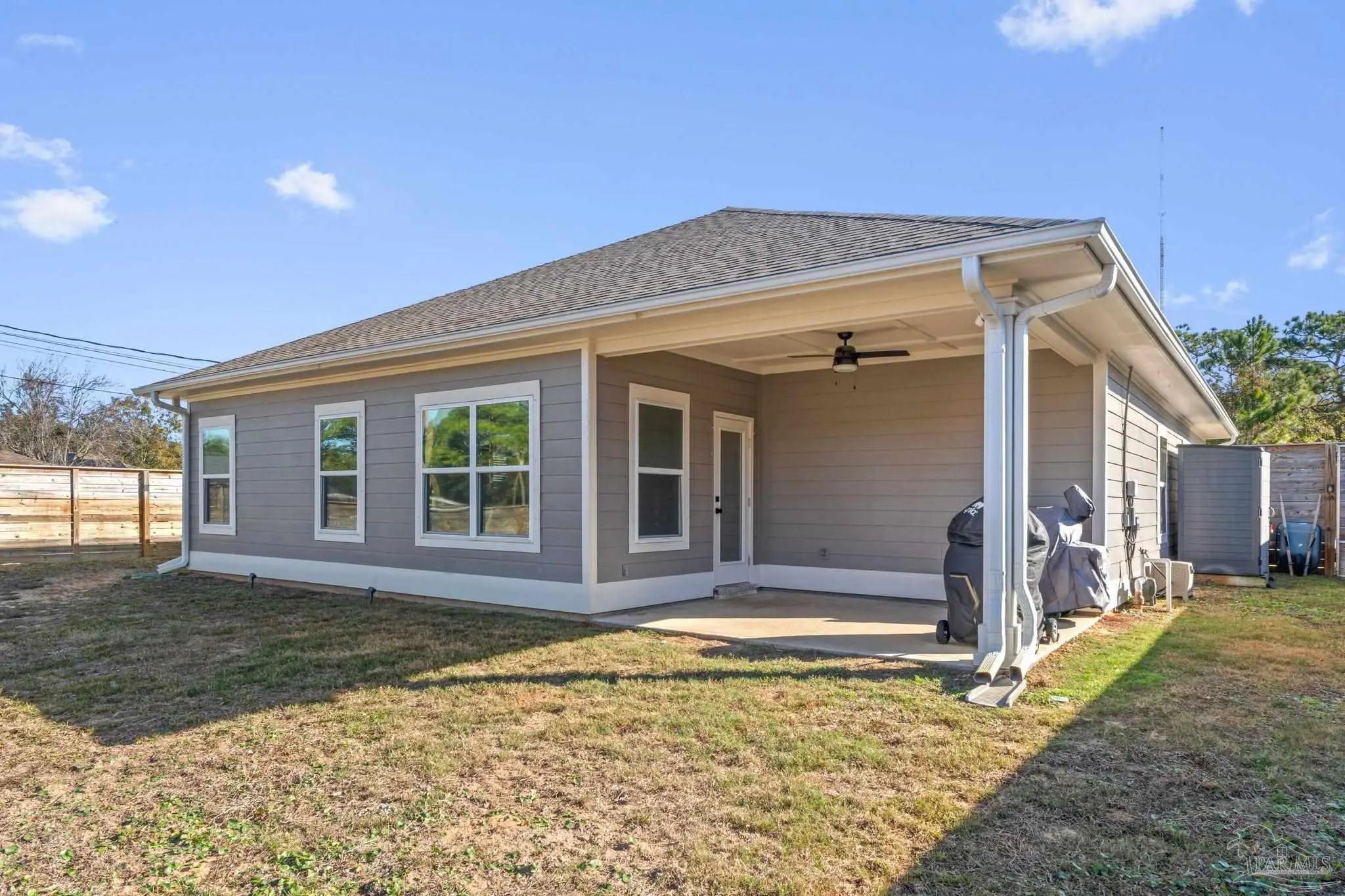 Experience modern luxury in this stunning 4-bedroom, 2-bathroom residence built in 2022, situated on a spacious corner lot in the heart of Midway/Gulf Breeze. Offering maximum flexibility with NO HOA and no rental restrictions, this home is perfect for primary residence or investment. The open-concept interior impresses with 9’ ceilings, 10’ tray accents, and durable luxury vinyl plank flooring throughout—no carpet! The chef-inspired kitchen features white shaker-style soft-close cabinetry, premium quartz countertops, a massive island with pendant lighting, and Whirlpool stainless appliance suite. Retreat to the primary suite featuring a spa-like ensuite with a large tiled shower, double quartz vanity, and a generous walk-in closet. Step outside to a covered back porch with a coffered ceiling, overlooking a fully fenced backyard equipped with a sprinkler system and private well. Notable upgrades include a finished garage with epoxy floors, Fabric Shield hurricane protection, a Sentricon termite system, and gutters around the entire home. Conveniently located near the upcoming Soundside high school and walking distance to a local county park, with easy access to both Navarre and Pensacola beaches. Schedule your private tour today!