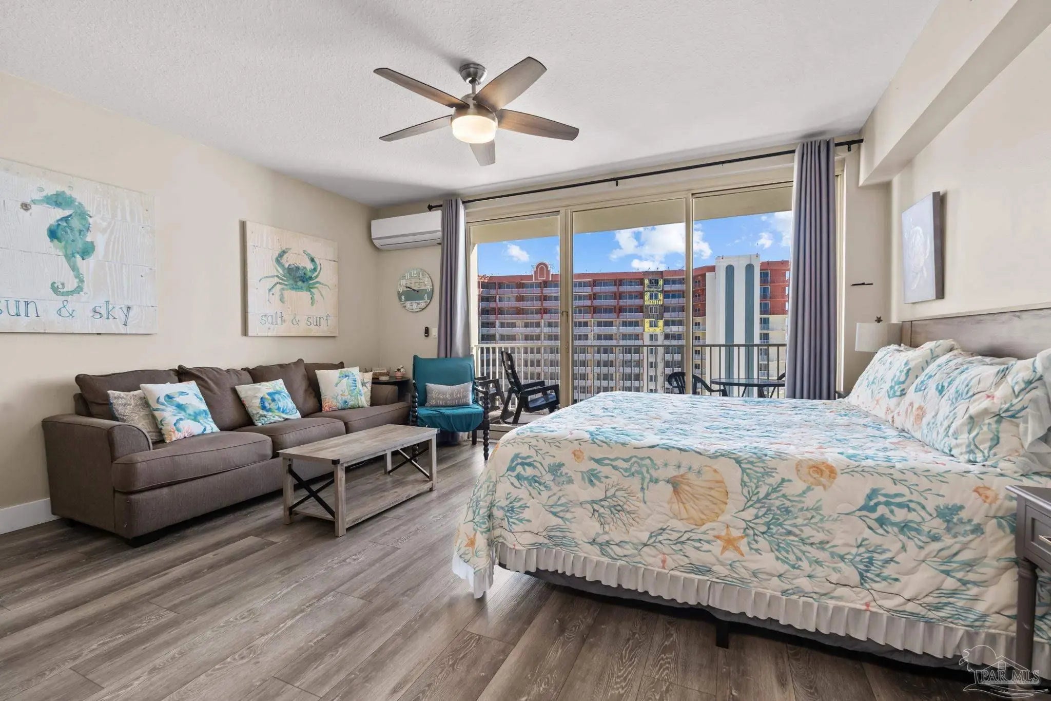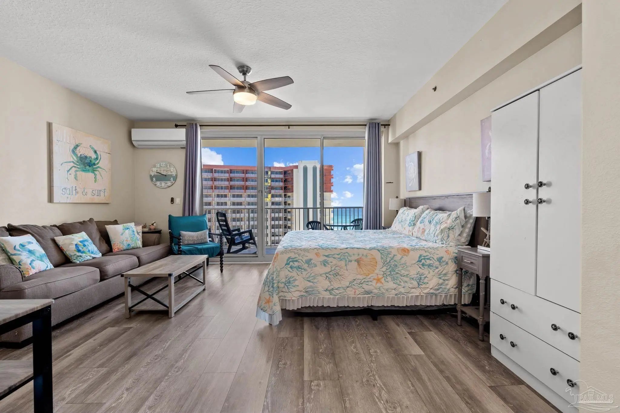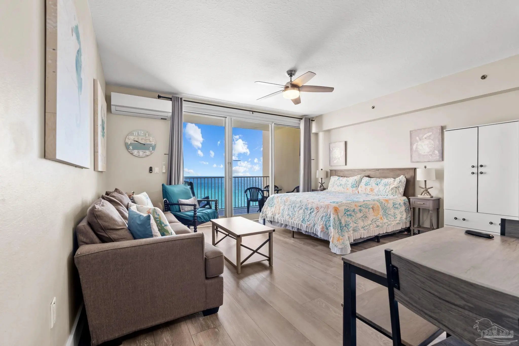 This updated beachfront condo offers a smart and efficient layout with designated living, dining, and kitchen areas that maximize every square foot. Large sliding glass doors open to an oversized private balcony overlooking the Gulf Coast, where you can enjoy breathtaking coastal views and the soothing sound of waves from the 19th floor. Look below and take in views of the resort-style pool featuring tiki huts, a zero-entry design, palm trees, and plenty of lounge space. A private dock provides quick access over the white sand, placing your toes directly in the emerald waters. Additional amenities include an indoor pool, spa, fitness center, and high-level security with a private parking garage. The Shores of Panama complex is nearing completion of a cosmetic face-lift, adding future value to each unit. This property is ideal as a short- or long-term rental, primary residence, or second home for those seeking relaxation with flexibility. Sitting within a short distance to the pier, popular local restaurants, and everyday conveniences, this condo has proven to be a lucrative investment!