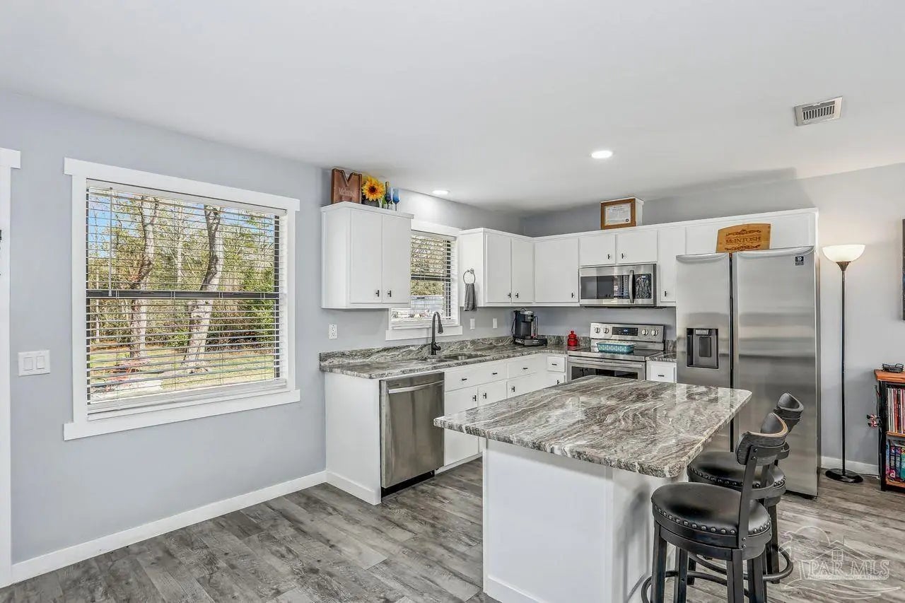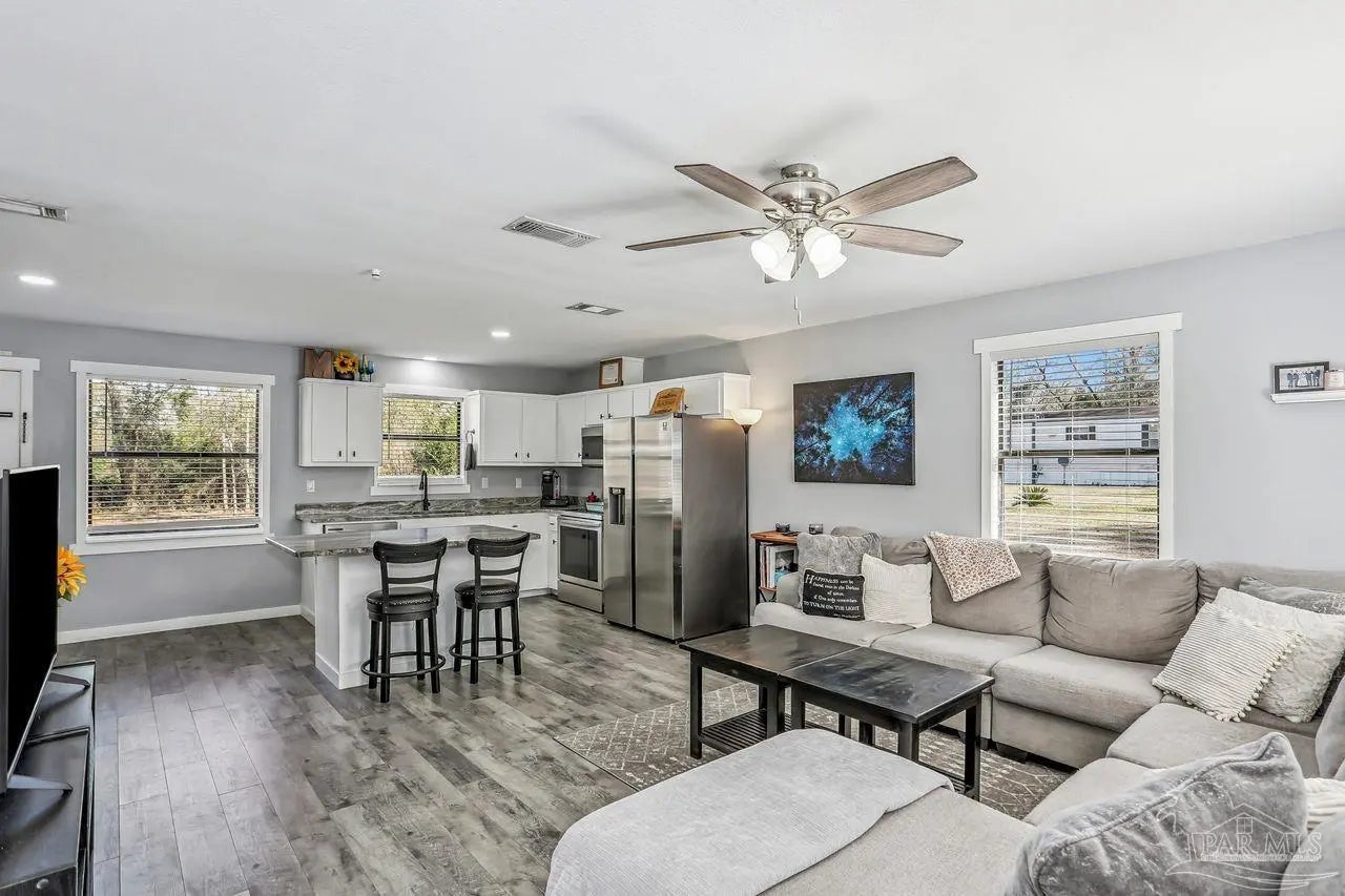 Situated on nearly an acre and tucked away on a private, well-maintained road, this beautifully updated home offers the perfect blend of privacy and modern comfort. The home features many recent upgrades including new flooring, a new A/C system, a tankless water heater, and an updated kitchen with granite countertops and stainless steel appliances. The open-concept family room flows seamlessly into the kitchen and eat-in area, making it ideal for everyday living and entertaining. A newer metal roof adds durability and peace of mind. Outside, enjoy a large, cleared yard with plenty of space to relax or expand, along with a newly built detached garage and oversized driveway providing ample parking and storage.