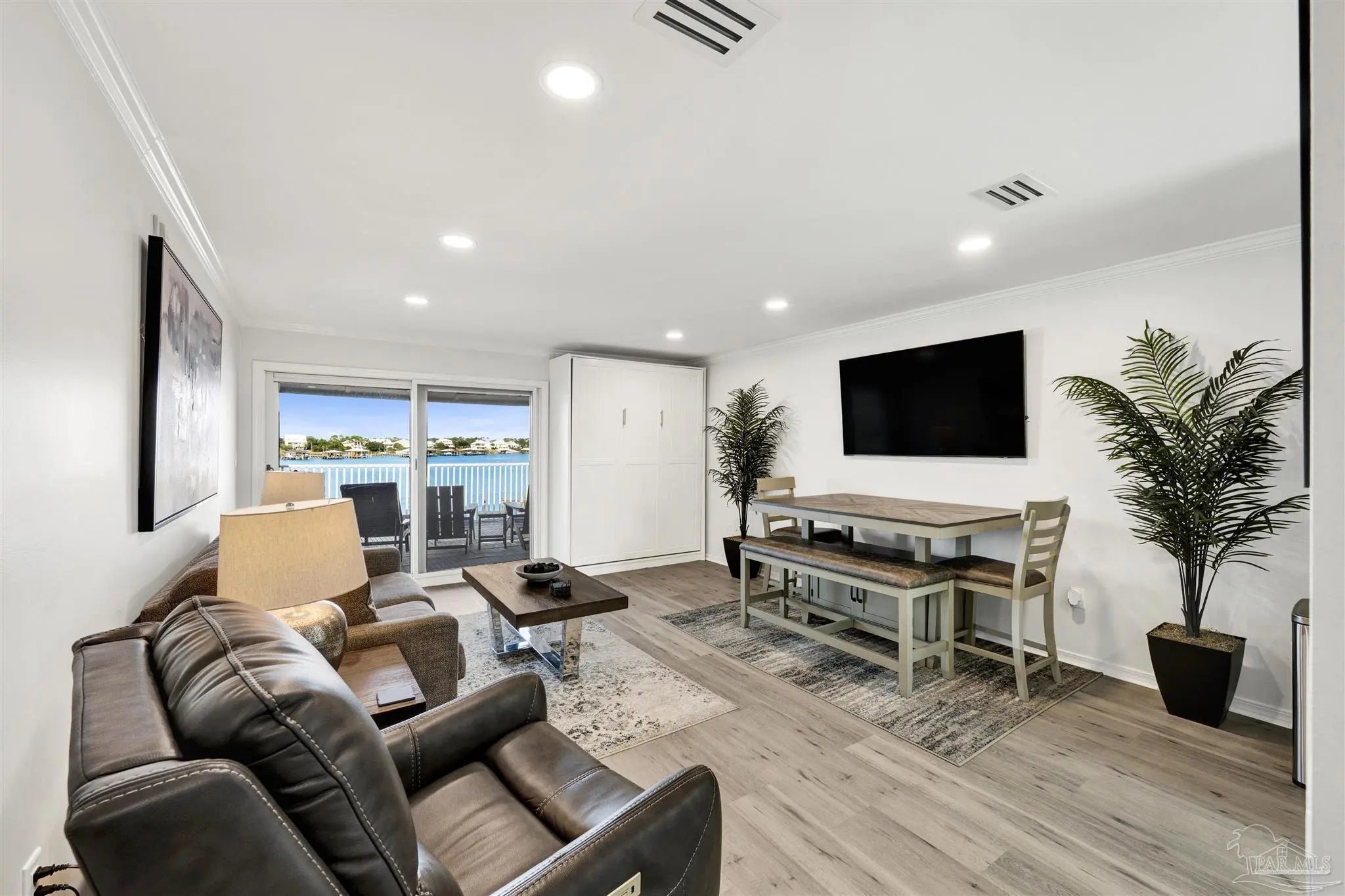 RARE OPPORTUNITY TO OWN THIS BEAUTIFULLY UPDATED, FULLY FURNISHED 1-BEDROOM, 1-BATH CONDO LOCATED ON THE TOP FLOOR OF SUNDOWN CONDOMINIUMS – A BOATER’S PARADISE WITH DEEDED BEACH ACCESS DIRECTLY ACROSS THE STREET! COME AND SEE WHY THIS SPACIOUS 1-BEDROOM FLOOR PLAN CAN BE MORE DESIRABLE THAN A 2-BEDROOM AT SUNDOWN WITH ITS EXTRA-LARGE, PRIVATE BALCONY AND BREATHTAKING SUNSETS! The bright, modern interior is designed for maximum versatility, featuring a stylish Murphy bed to accommodate extra guests and a sleek kitchen with marble-look countertops and grey shaker cabinetry. Step through the sliding glass doors to your private (partially covered) balcony where you can relax and enjoy serene water views, dolphins at play, a variety of wildlife and boats cruising along Ole River. Sundown Condominiums offer boat docks/ slips (first come/first serve), and a gated storage yard for trailers, with mooring balls available for jet skis and kayaks. The community features on-site management, an Olympic-sized pool, outdoor BBQ grills, picnic areas, tennis courts, and a basketball court, all conveniently located near restaurants and entertainment. Across the street, the private boardwalk leads directly to the pristine white sands of the Gulf of Mexico—Don’t miss this opportunity to own your slice of paradise!
