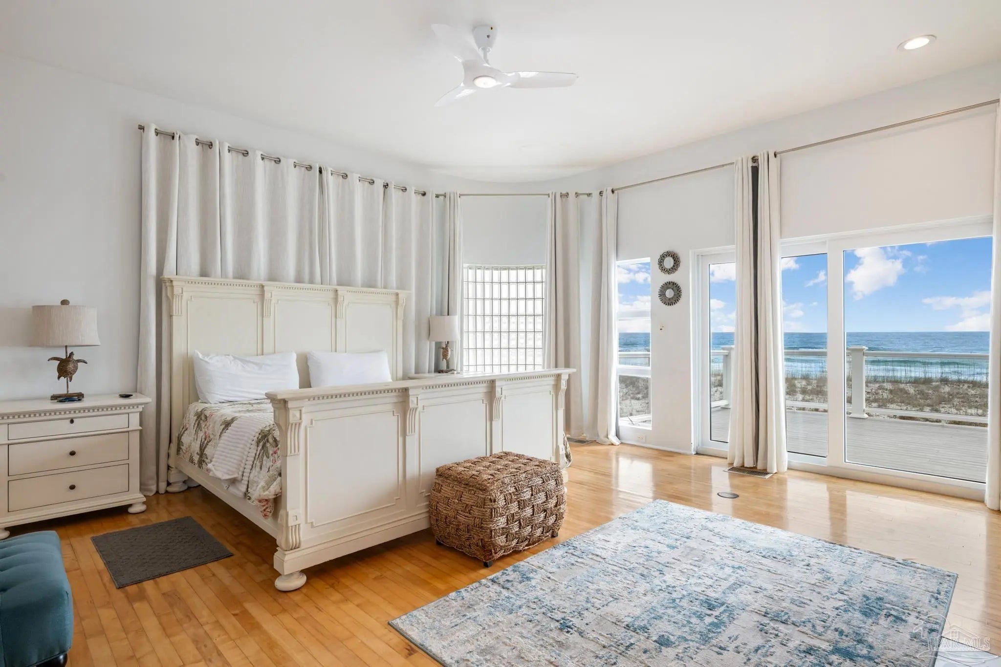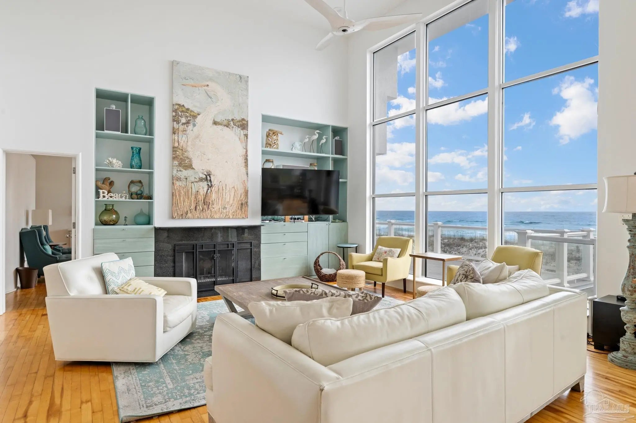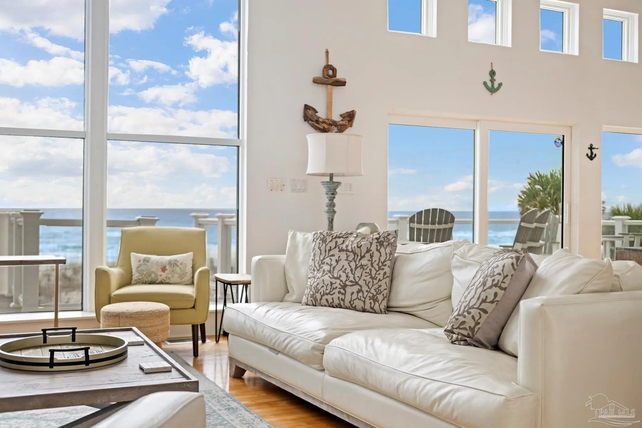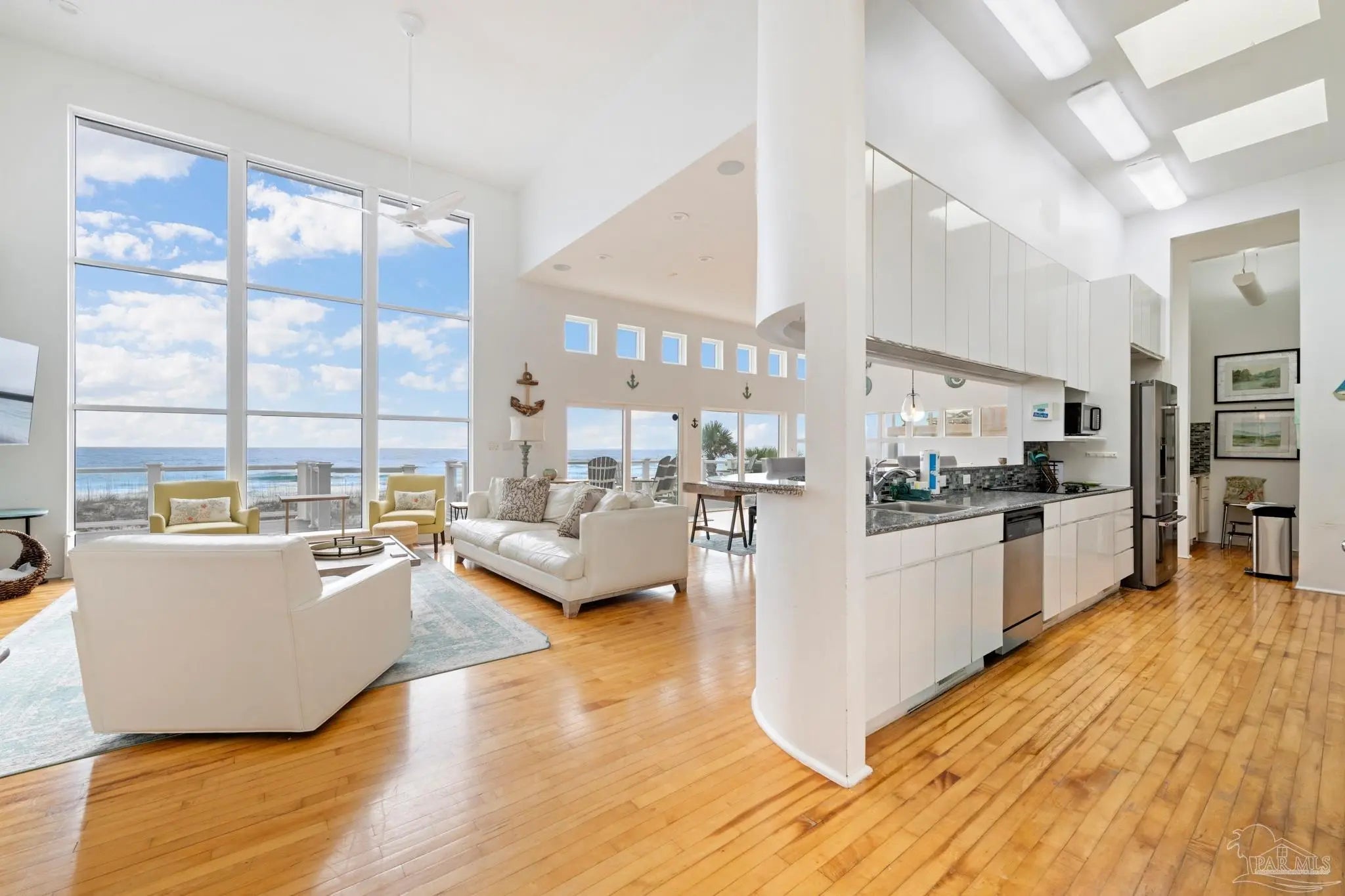 Experience the ultimate in Gulf-front luxury with this stunning Pensacola Beach retreat, perfectly positioned on the sugar-white sands and emerald waters of the Gulf of Mexico. This fully furnished 4-bedroom, 4-bathroom residence spans approximately 3,500 square feet and offers breathtaking water views from nearly every room. Designed for both relaxed coastal living and exceptional rental performance, the home generates over $228,000 in annual rental income.The open-concept main living area is thoughtfully located on the second floor to maximize panoramic views, featuring wall-to-wall windows that flood the space with natural light and frame the Gulf like a living work of art. The chef’s kitchen, dining area, and spacious living room flow seamlessly onto expansive outdoor decks, ideal for entertaining or simply soaking in the coastal scenery. Outside, a private saltwater gunite pool provides the perfect place to unwind after a day at the beach. The luxurious primary suite is a true sanctuary, complete with two walk-in closets, a cozy fireplace, and sliding glass doors leading to a private patio with stunning water views. With its prime Gulf-front location, impressive income potential, and timeless coastal design, this Pensacola Beach home is a rare opportunity to own an exceptional beachfront investment and personal escape.