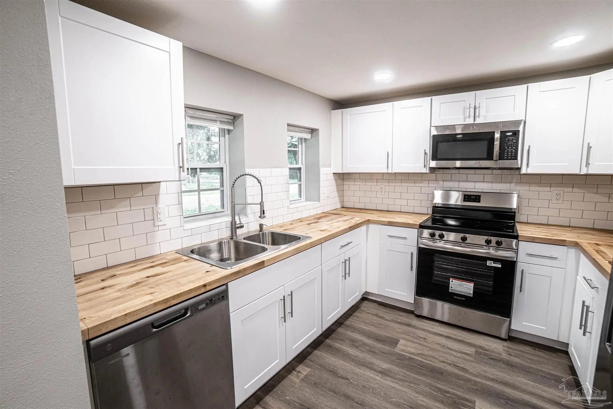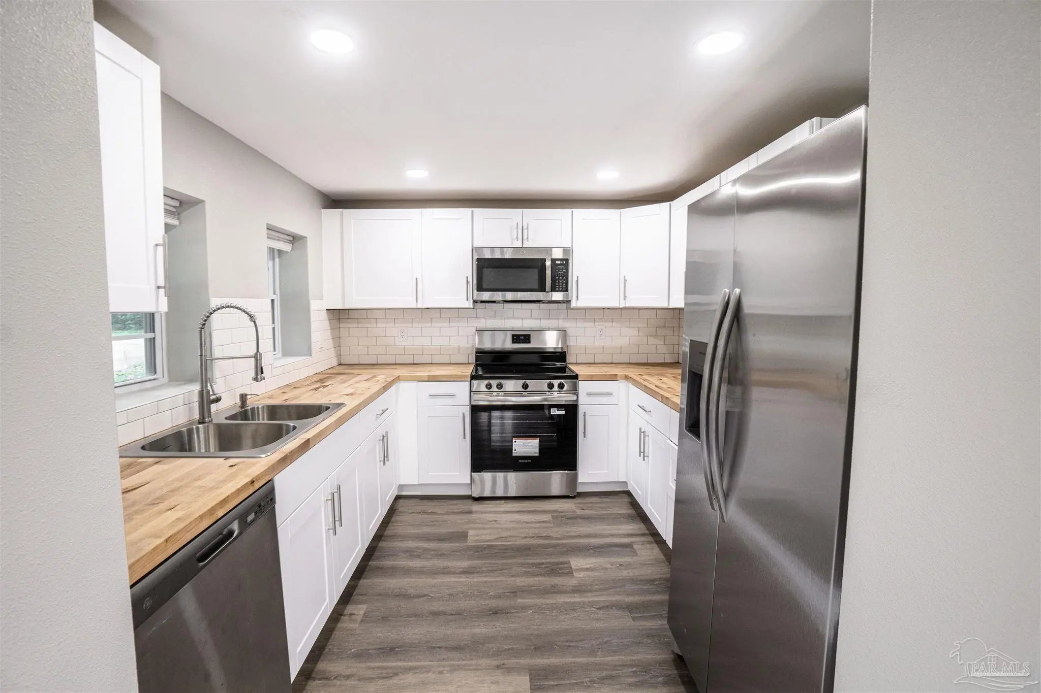 This turn-key five-bedroom, two-bathroom home is designed for longevity and comfort. With recessed lighting and fresh paint throughout the home, the property has a modern and fresh feel the moment you walk in. The main living areas are outfitted with convenient tile flooring for easy maintenance, while the bedrooms feature modern vinyl flooring. In the kitchen, new appliances are paired with sturdy, rustic butcher block countertops, offering a reliable and stylish space. Both bathrooms have been updated with beautiful tile work that balances aesthetics with practicality. Located on a corner lot, the property includes a one-car garage and the unique opportunity to purchase the adjoining lot, for those seeking additional yard space or future growth. This move-in-ready home is perfect for anyone looking for an updated home with plenty of space for all your needs.