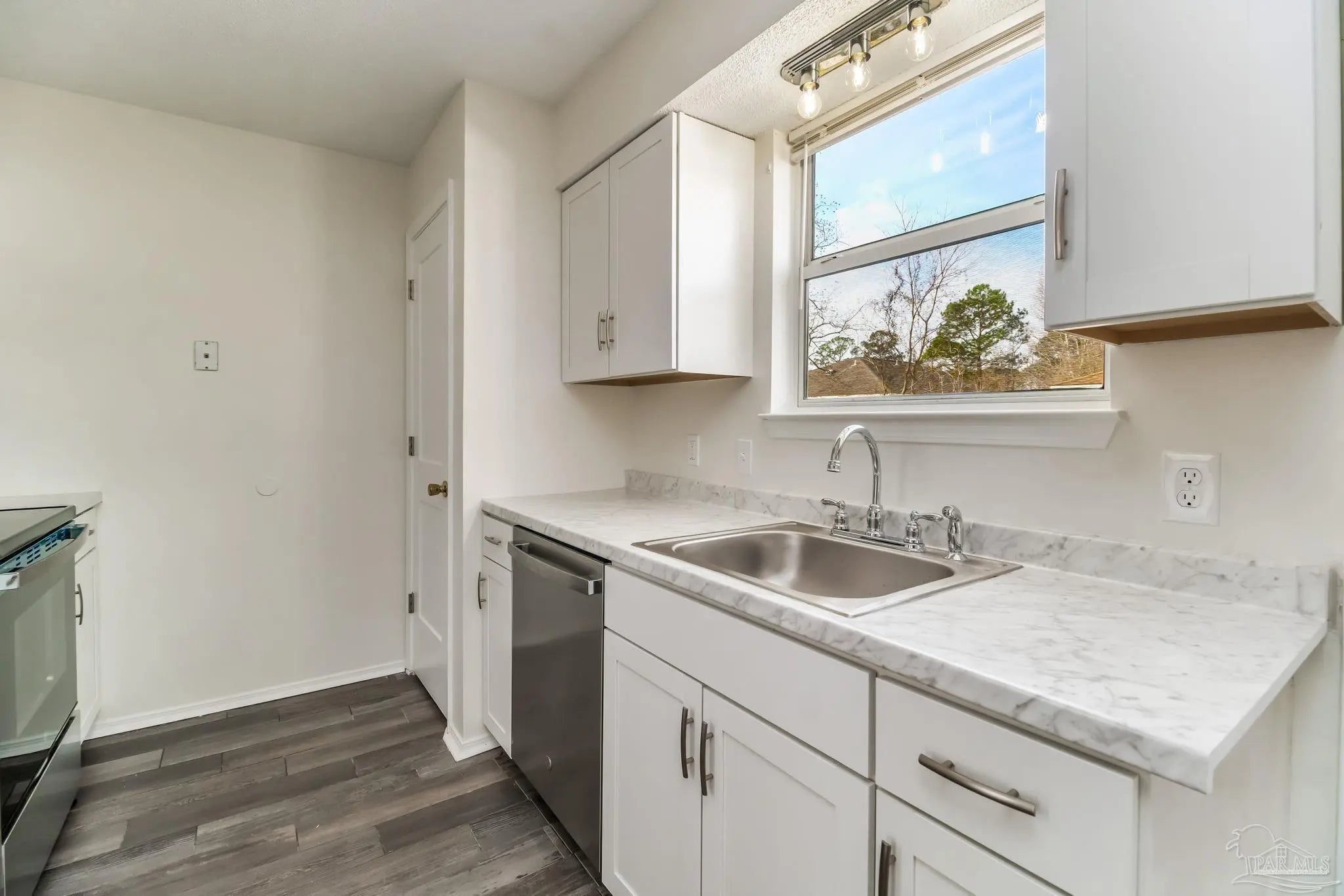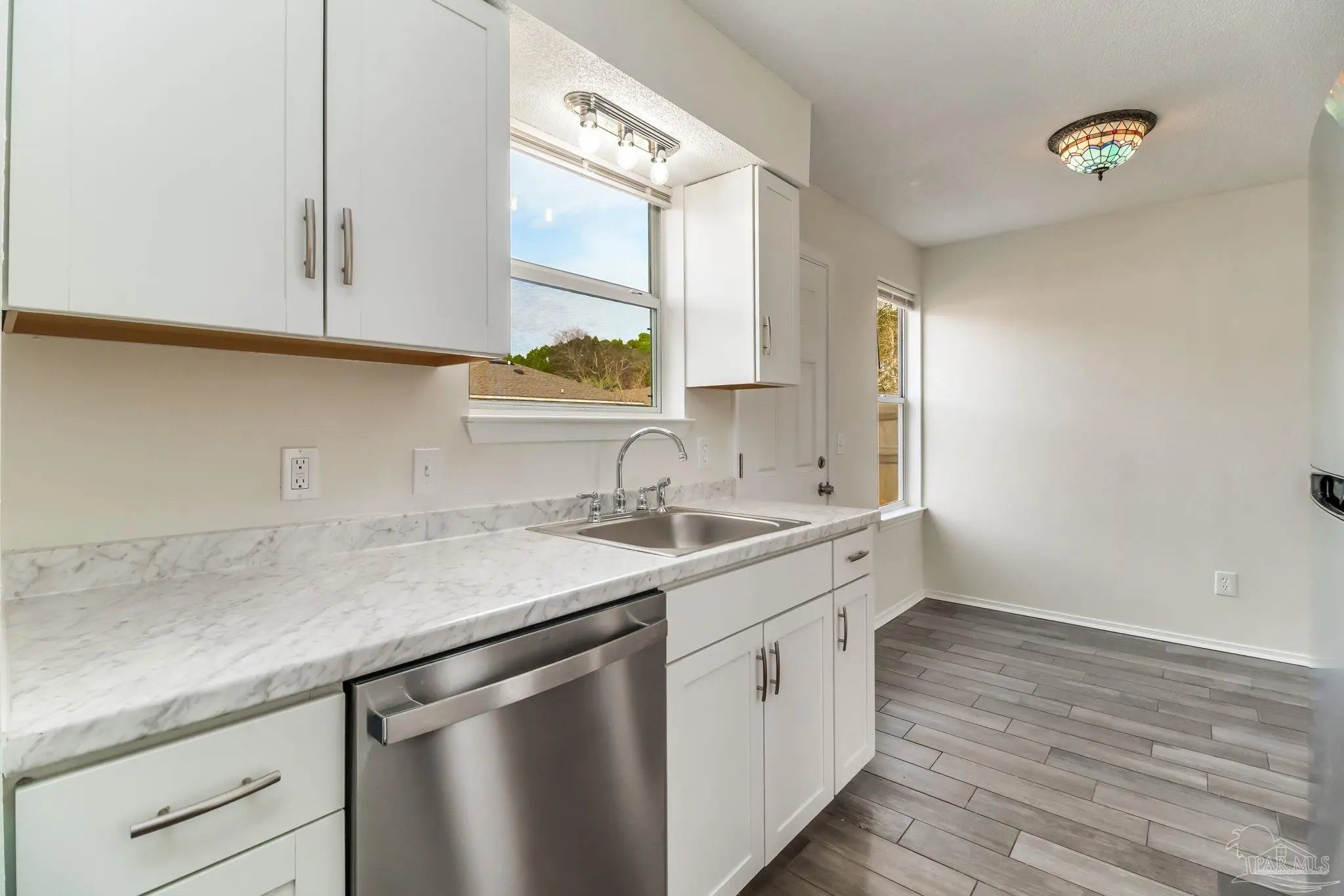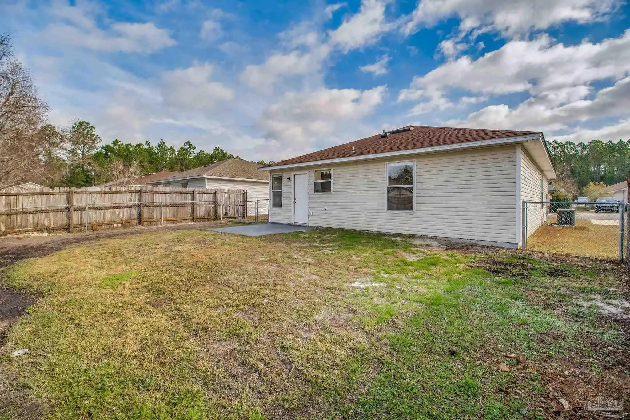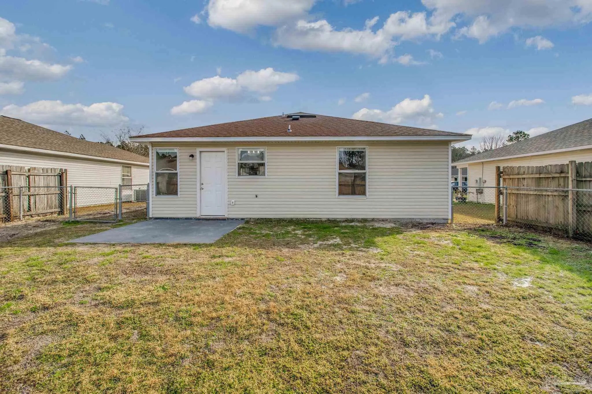 Super cute and budget-friendly single-family home in excellent condition—an increasingly rare find under $200K! This 3BR/2BA, 1,086 sq ft home sits on an easy-to-maintain lot and features a new French drain system installed within the last month. Inside, enjoy new wood-look tile flooring throughout for a cohesive, modern feel (laundry room excluded; extra matching tile conveys). Washer and dryer convey. The kitchen shines with brand-new, never-used stainless steel appliances, new cabinets, and neutral countertops. Major updates include roof (2020), HVAC (2014), and water heater (approx. 2014). Conveniently located near a new Publix, upcoming Wawa, NAS Pensacola, Tarkiln Bayou State Park, Perdido Key beaches, and downtown Pensacola. Move-in ready, affordable, and full of charm—don’t miss this one!