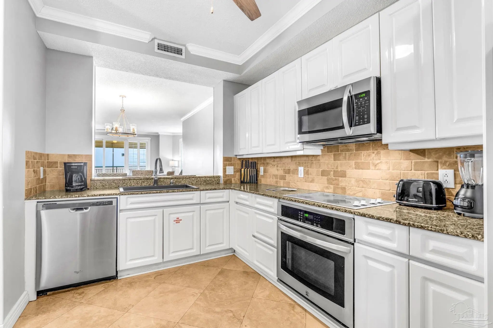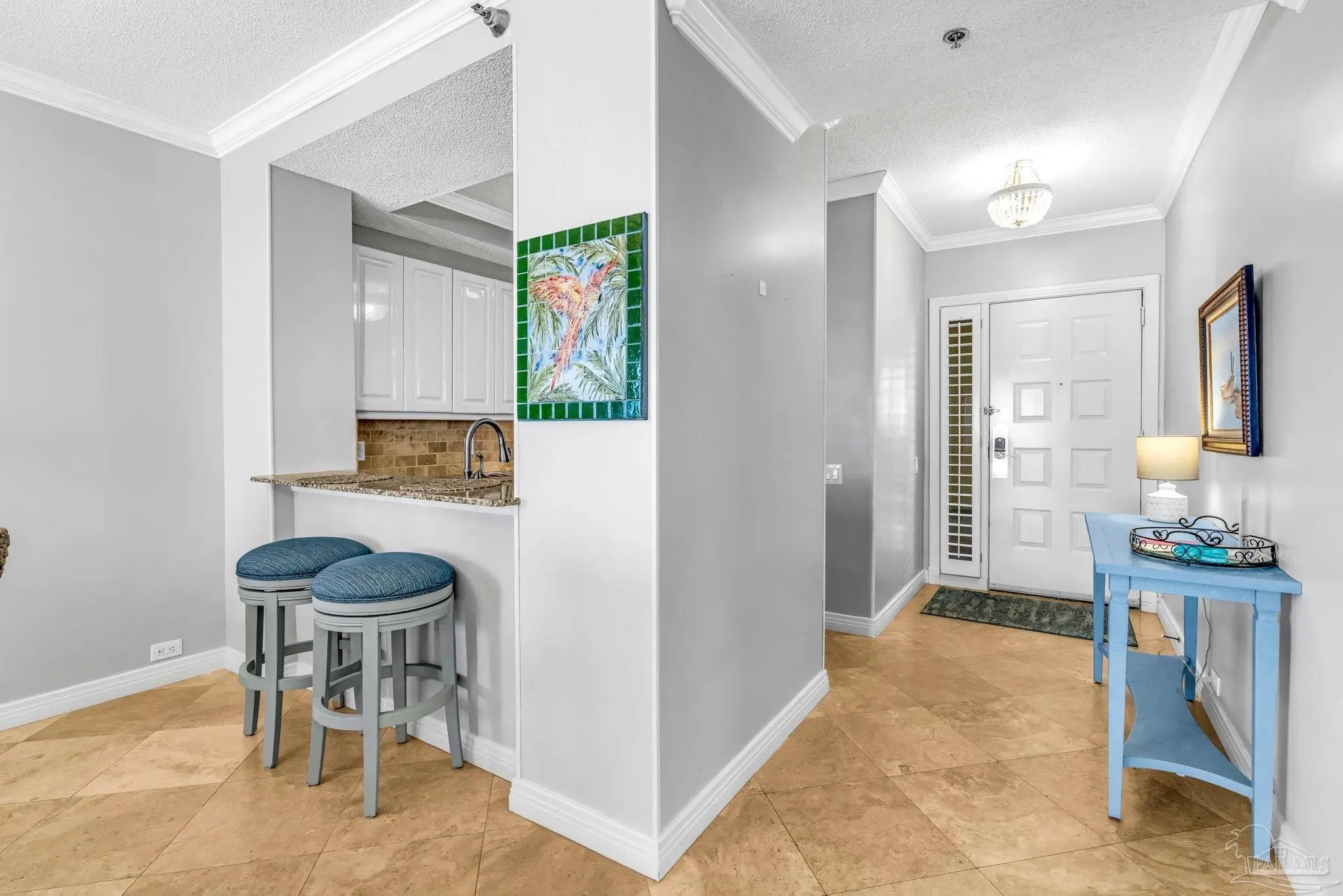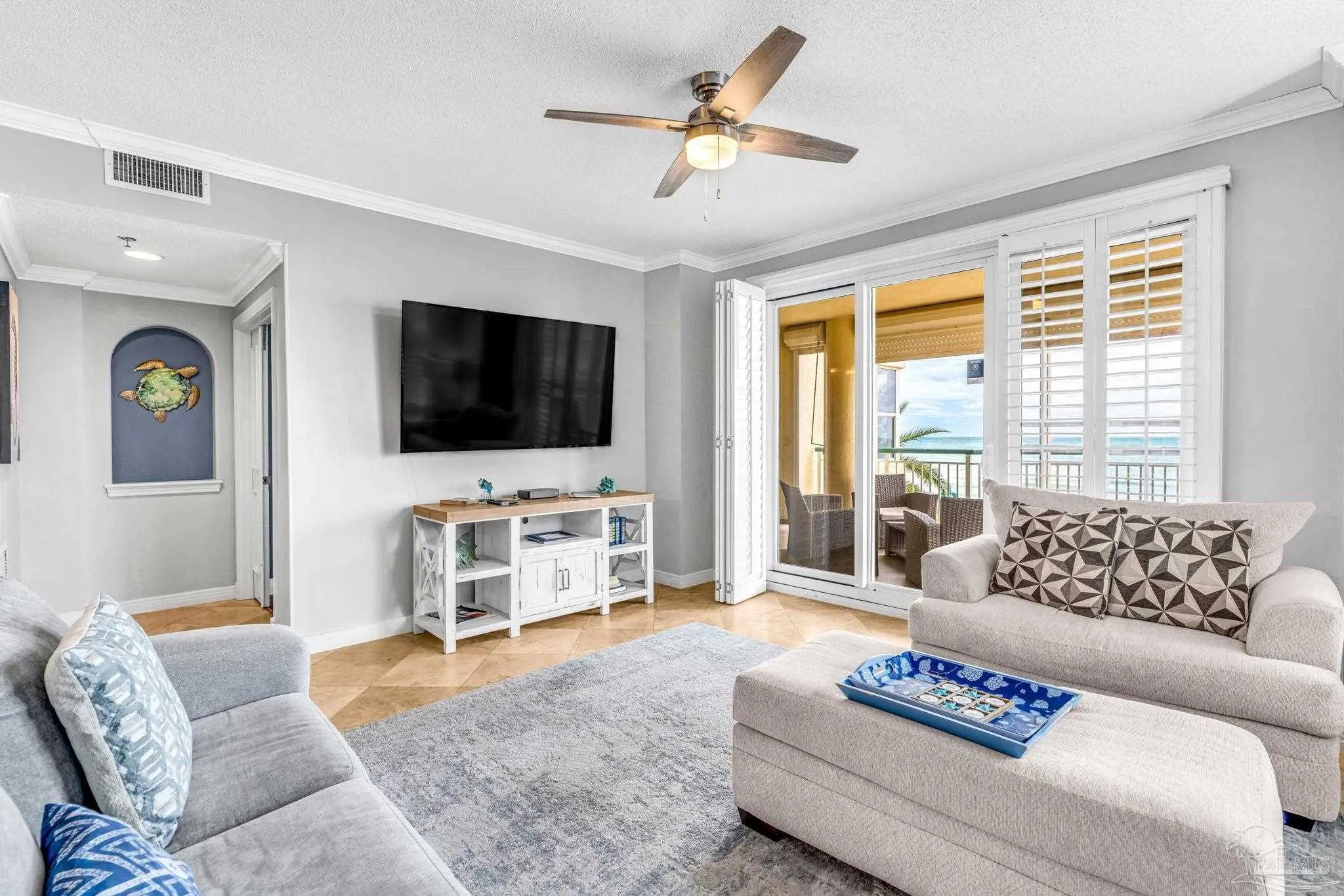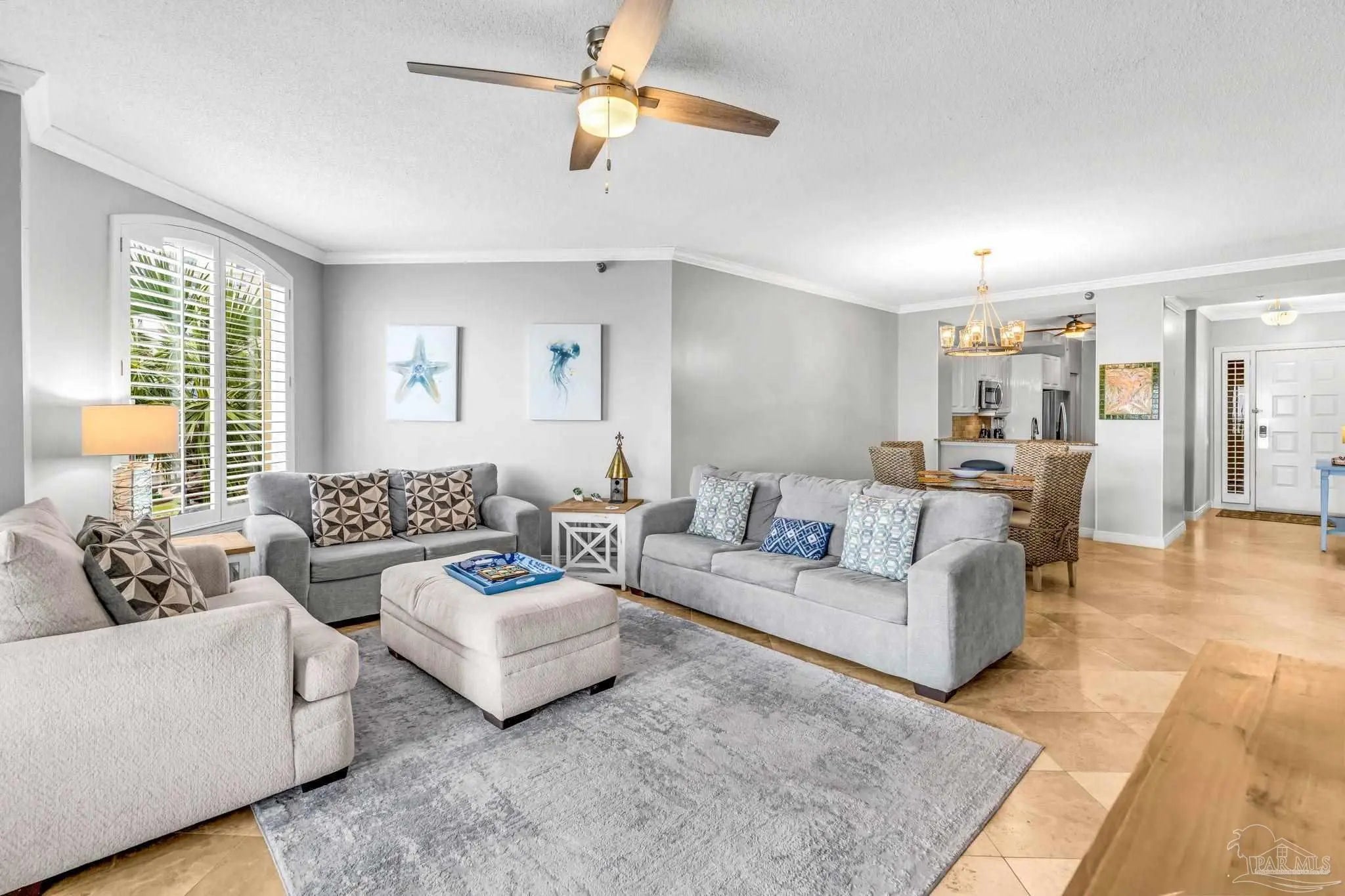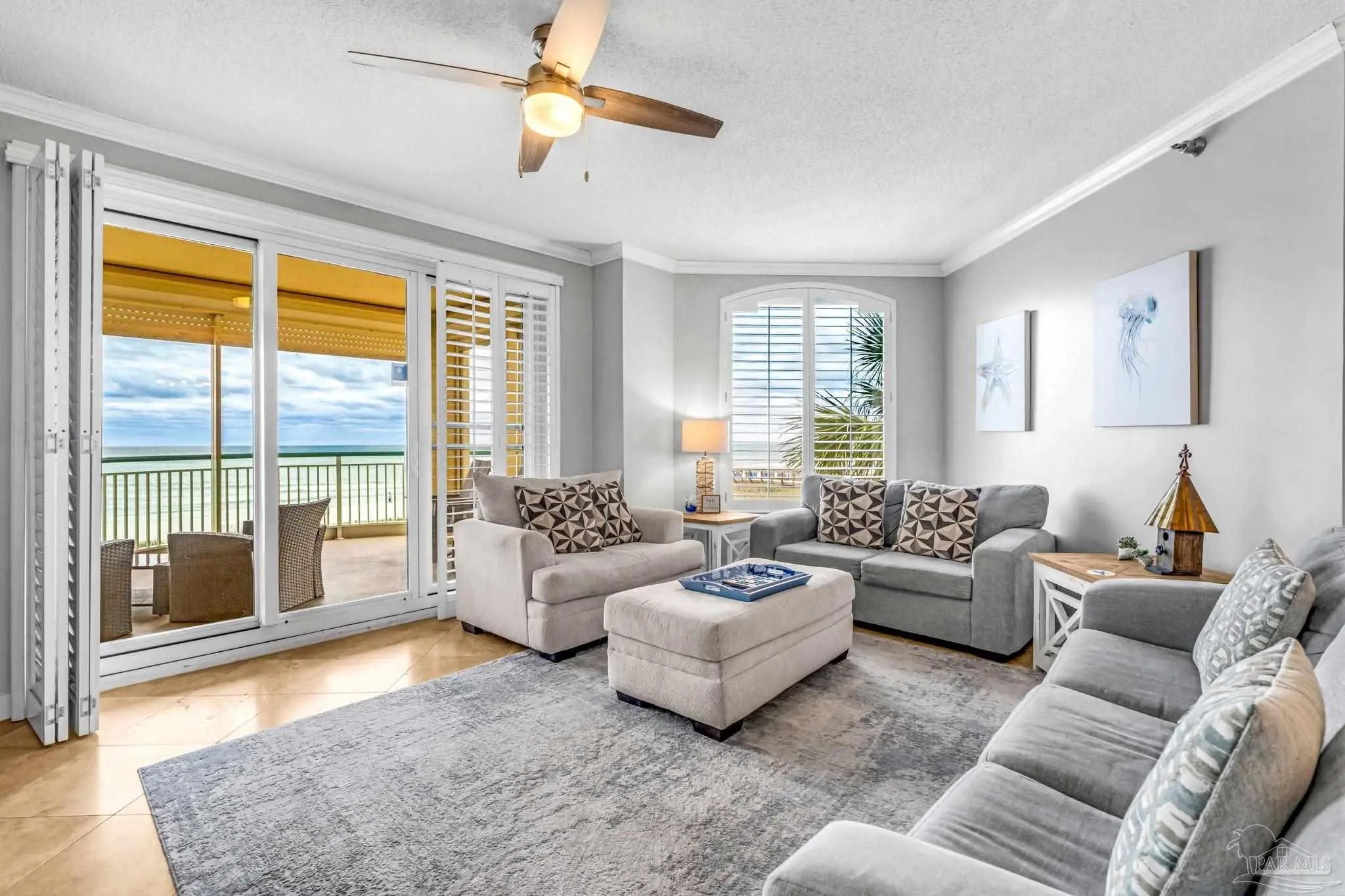 Experience the ideal balance of comfort, style, and Gulf-front living in this beautifully upgraded 2-bedroom, 2-bath condominium. Situated on the second floor, the residence offers an optimal elevation—providing both privacy and uninterrupted western views of the Gulf, perfect for enjoying spectacular sunsets. Thoughtfully updated throughout, this light-filled condo features crown molding, coastal-inspired paint tones, and luxury vinyl plank flooring in both bedrooms. Additional enhancements include plantation shutters, a custom walk-in closet in the primary suite, remodeled bathrooms, stainless steel appliances, and updated lighting in the kitchen, dining, and hallway areas. Nine-foot ceilings and an open floor plan create an inviting, airy atmosphere that feels like home the moment you enter. Step onto the expansive Gulf-front balcony to relax and take in the sights and sounds of the shoreline—an ideal setting for morning coffee or evening sunsets over the water. Beach Colony is a gated, resort-style community offering exceptional amenities, including three swimming pools (one indoor with spa), a fitness center, tennis and pickleball courts, a dog park, picnic and grilling areas, and on-site HOA management for added convenience. Located within walking distance to the National Seashore, this property offers an unmatched coastal lifestyle. Whether you are seeking a turnkey rental investment or a personal Gulf-front retreat, this exceptional condo presents a rare opportunity on Perdido Key. Schedule your showing today.