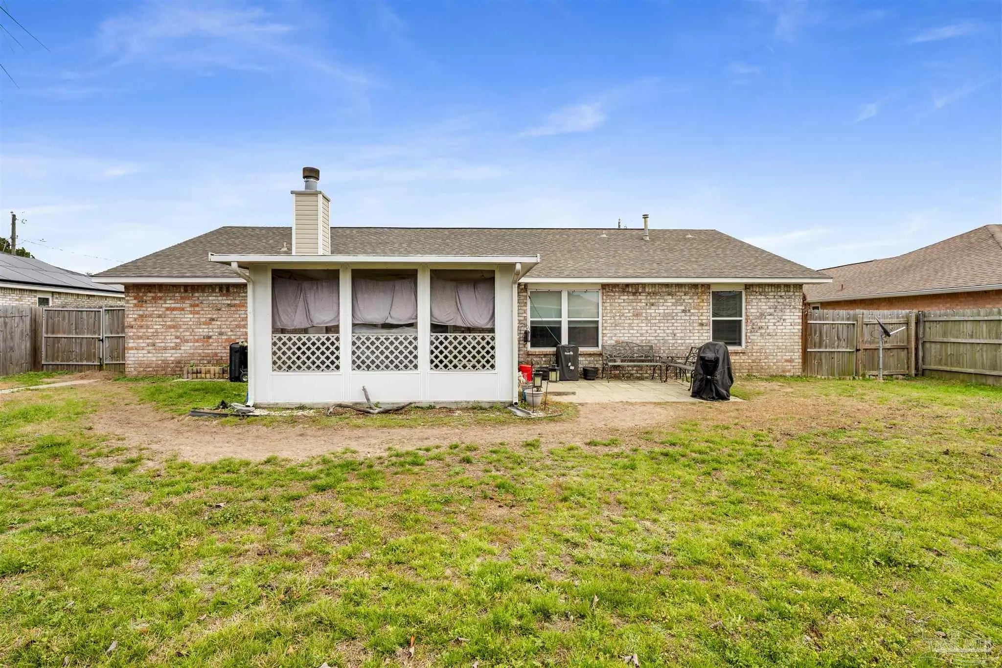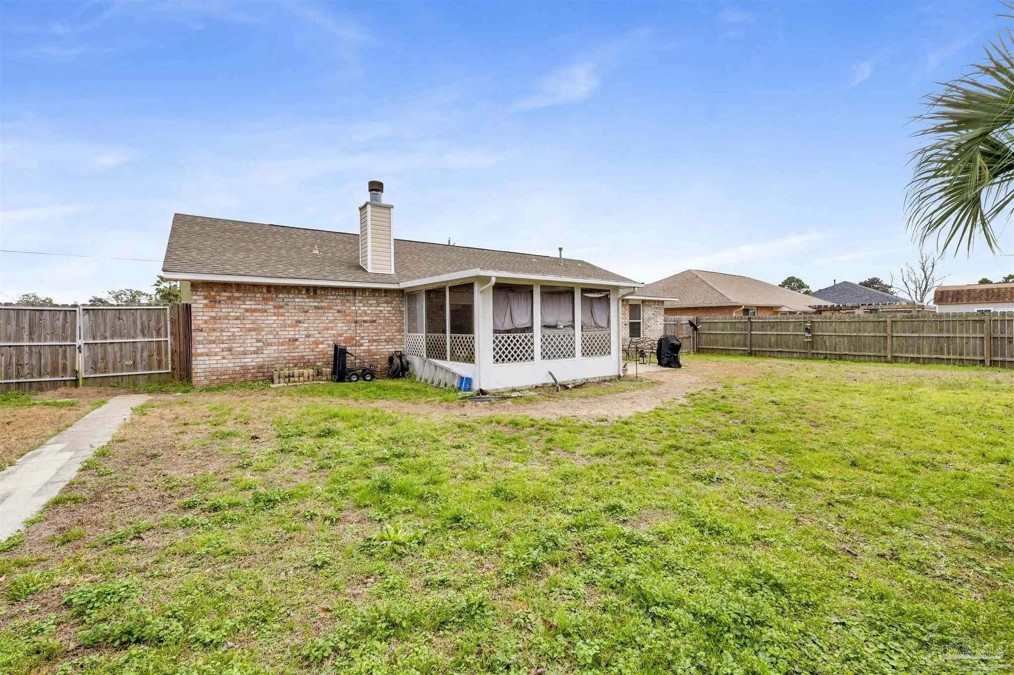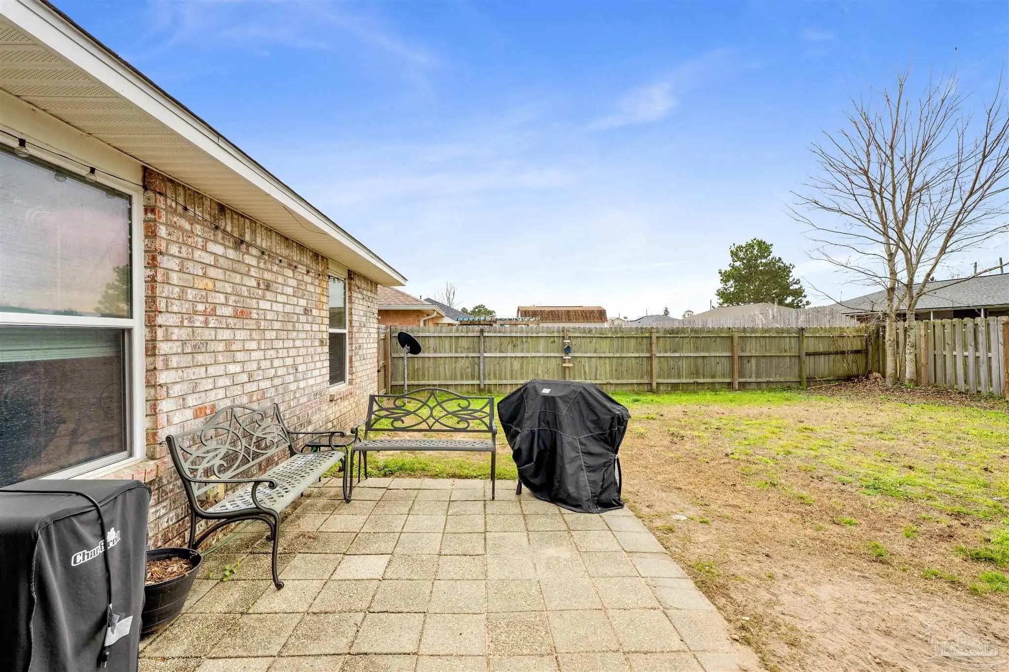 Located in the highly desirable coral creek neighborhood, this well-maintained 3-bedroom, 2-bath home offers the perfect blend of comfort, convenience, and location. Just 3 miles to the West Gate of NAS Pensacola and only 15 minutes to the sugar-white beaches of Perdido Key, this home puts you close to everything while still feeling tucked away. The single-level, all-brick exterior adds timeless curb appeal, while inside you'll find a desirable split-bedroom floor plan and a spacious living area with vaulted ceilings that create an open, airy feel. Step outside to a large, fenced backyard - ideal for entertaining, pets, or simply enjoying quiet evenings at home. Conveniently located near schools, hospitals, military bases, beaches, and historic downtown Pensacola, this home offers both everyday ease and long-term value.