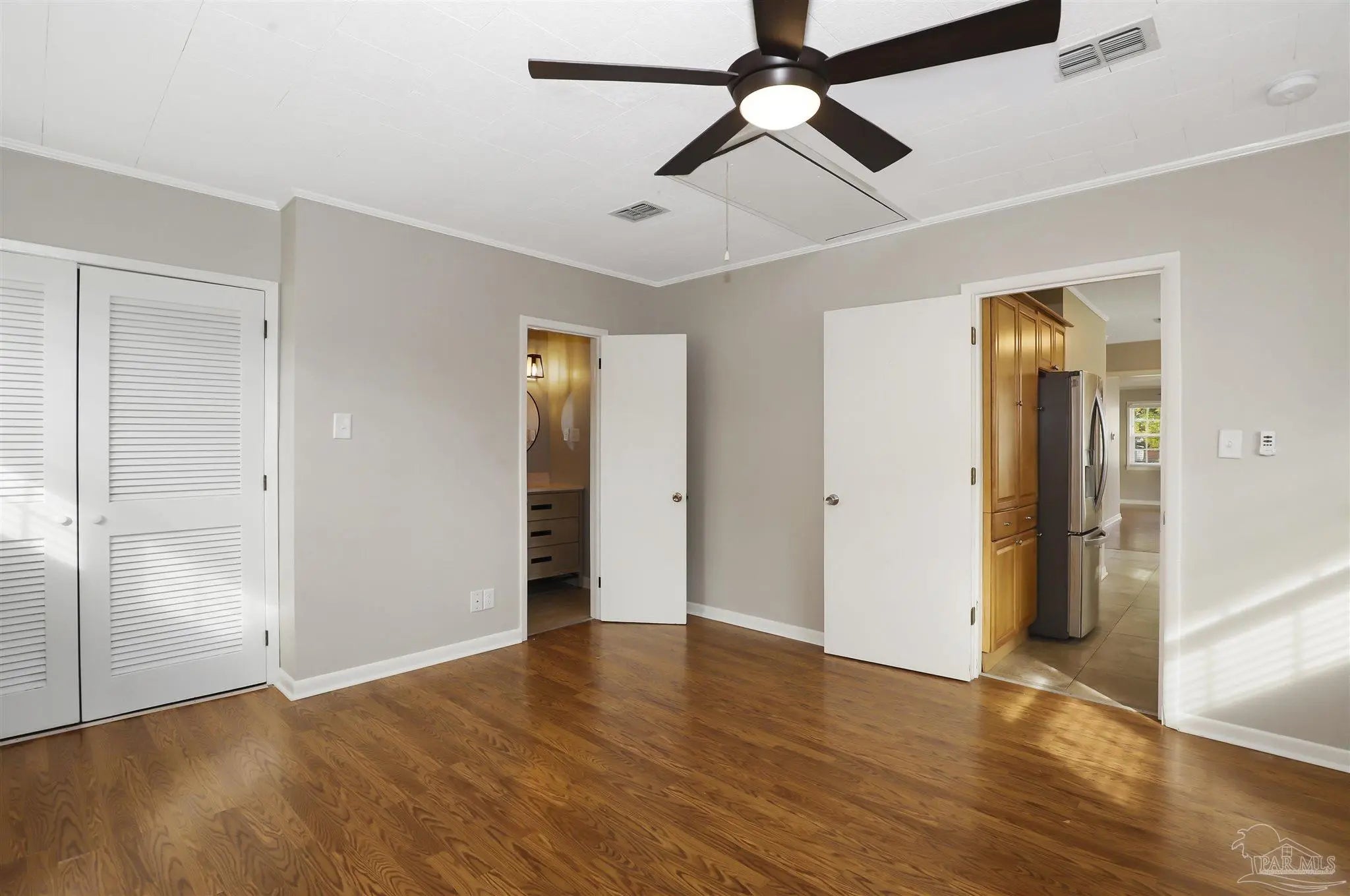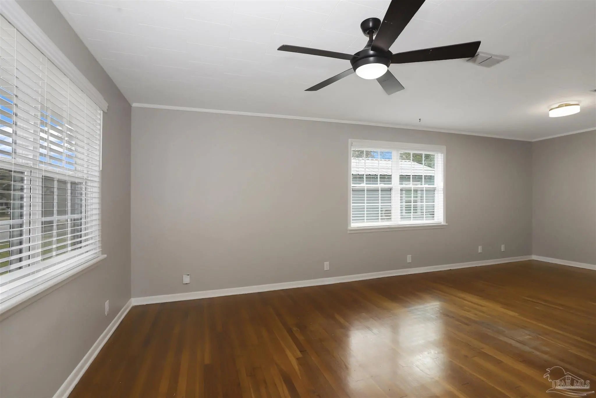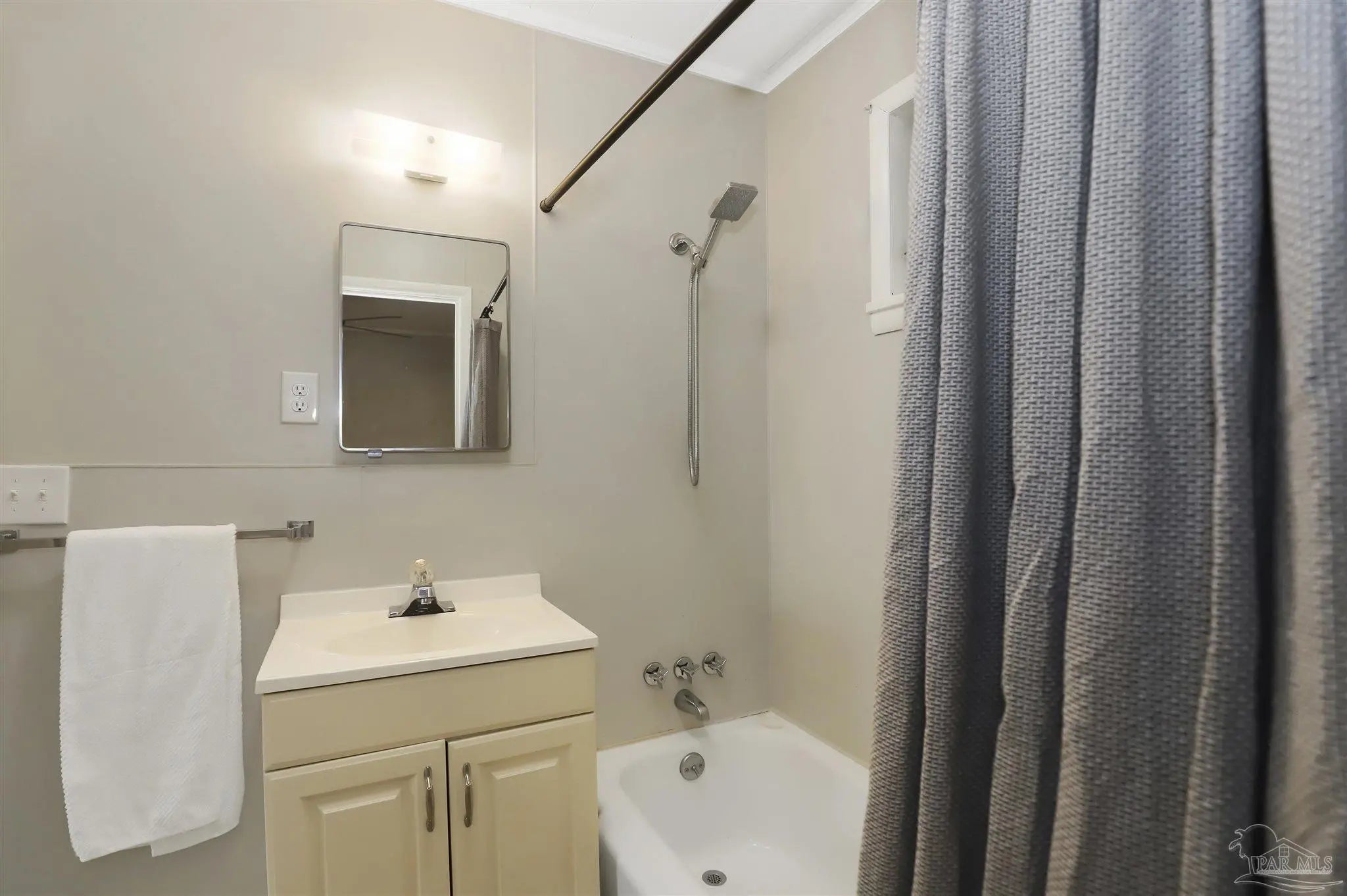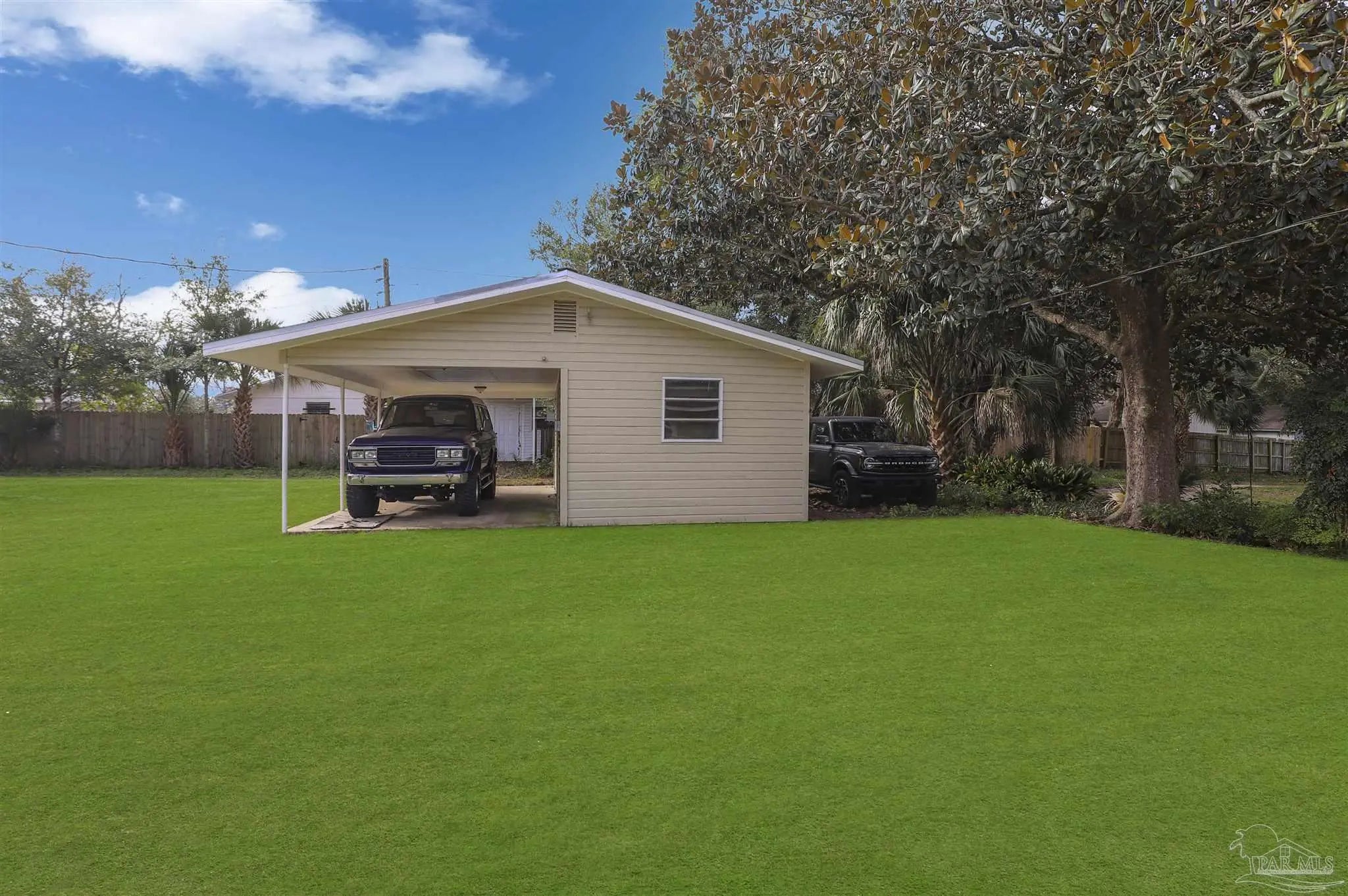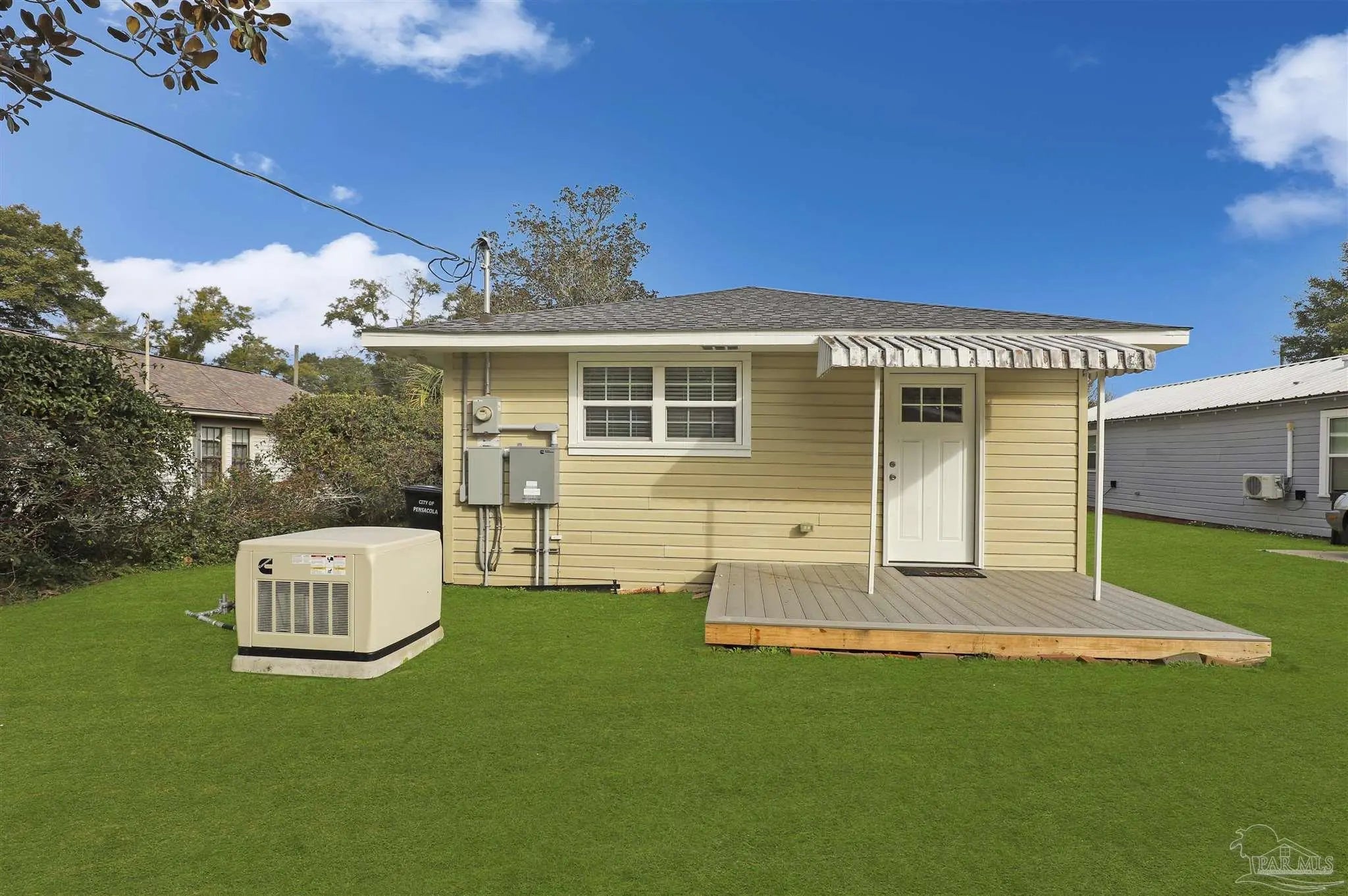 This East Pensacola cottage is looking for some new owners. Just two blocks from A.K. Suter Elementary and minutes from downtown, the airport, and the beach, the location strikes that rare balance between neighborhood charm and convenience. Inside, hardwood floors lead you into a bright, open living and dining space with fresh interior paint and abundant natural light. The eat-in kitchen features solid wood cabinetry, stainless appliances, and a layout that works just as well for quiet mornings as it does for casual dinners. Two bedrooms share a Jack-and-Jill bath, while the private primary suite sits at the back of the home with its own tiled shower, quartz vanity, and adjacent laundry room. A whole-house natural gas generator, added insulation, and major system updates—including a 2021 roof, 2022 HVAC, and 2023 sewer line—offer peace of mind. An attached carport connects to a spacious workshop with alley access, adding flexibility and function. And, even better, no HOA. Comfortable, well cared for, and ready for its next chapter.