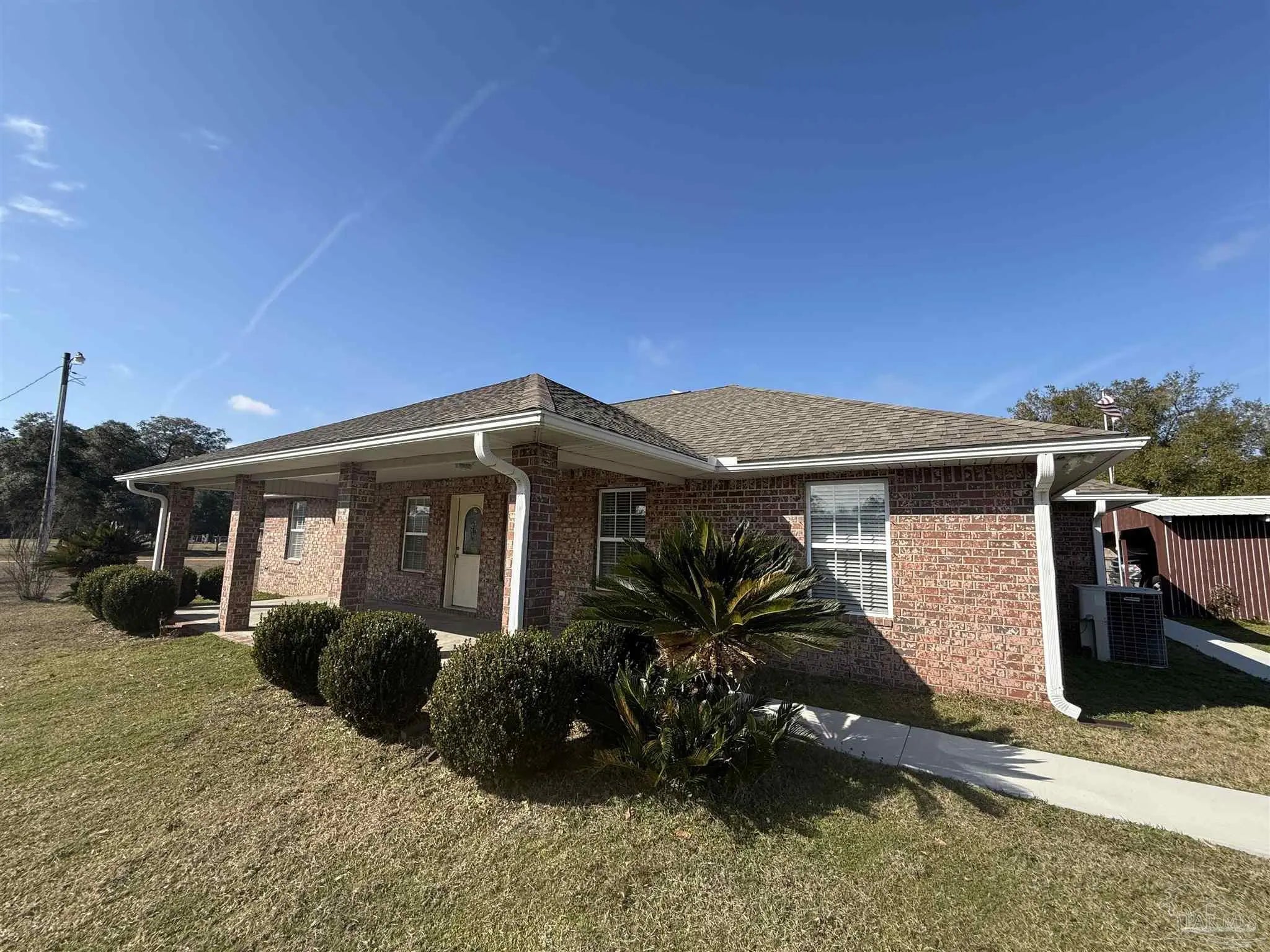 Nestled next to the pristine Perdido River Wildlife Management Area, this stunning property offers both seclusion and convenience, being just 45 seconds away from the Perdido River public boat launch. Spanning ample land, it is ideal for agriculture enthusiasts. The home is built with durable full brick siding and fortified with metal hurricane shutters, including fully upgraded hardware to withstand high winds. Inside, you'll find completely remodeled kitchen and baths, adorned with luxurious Brazilian quartzite countertops, all wood cabinets, and sleek stainless steel appliances. The main suite is a true retreat, boasting two separate walk-in closets and an elegant bath with a tub. The property features a versatile shop 15x36 with high ceilings, and a deep covered parking area 26x36 with a concrete base and a two-post vehicle lift, suitable for accommodating a 21' boat. Additionally, there are three covered parking spaces 35x20 by the house, with a concrete walkway leading to both entrances. Enjoy expansive, open spaces with easy-to-maintain grass, and stay seamlessly connected with 1GB up and down fiber internet. An entirely separate but included 0.91-acre lot adjoining the main property offers limitless possibilities. Step outside to an 800 square foot raised bed fenced garden, perfect for cultivating your own produce, and large chicken coop. Relax on the large covered front porch and enjoy the comfort of three separate climate-controlled zones within the home. Efficient powered active attic ventilation ensures optimal air circulation. Conveniently located, you're just 8 minutes from Navy Federal and 5 minutes from Publix. Discover your perfect blend of nature's serenity and modern amenities.