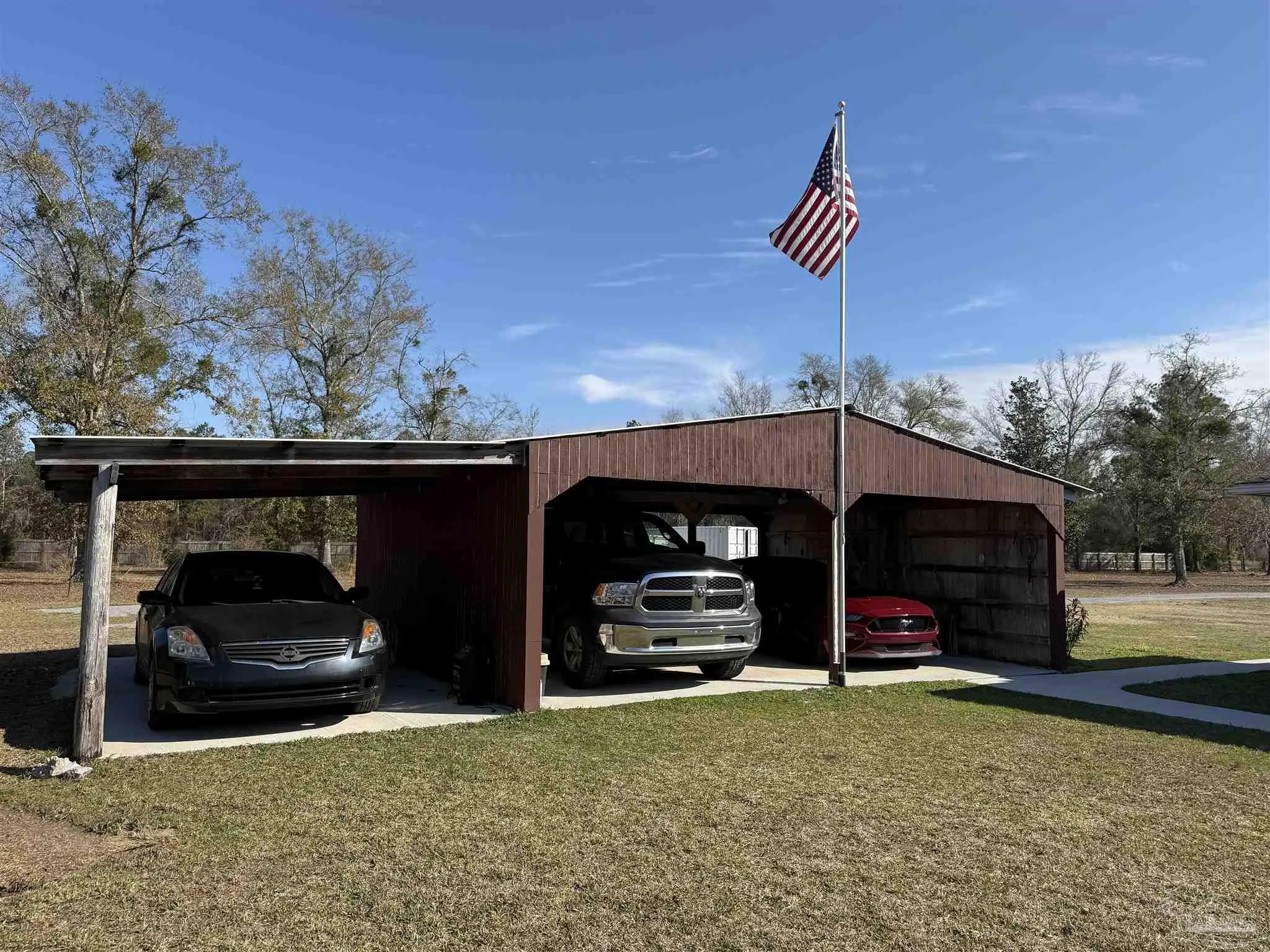 - 3 Car Carport, Covered, Detached, Side Entrance