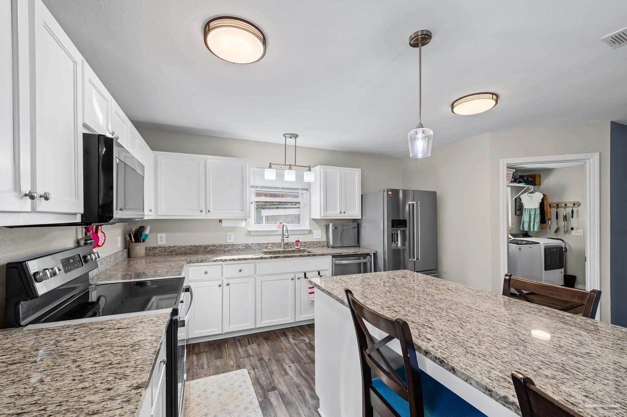 Welcome home to this beautifully remodeled all-brick Pensacola property which offers a functional layout, quality updates, and a convenient location just minutes from I-10. This beautiful 3-bedroom, 2-bath home is truly move-in ready. A welcoming entry opens to formal living and dining spaces, ideal for both elegant entertaining and everyday living. The heart of the home is the expansive great room featuring vaulted ceilings opening up the space with eye-catching character. The kitchen has been intentionally updated and features beautiful granite countertops, stainless steel appliances, convenient pantry, and a light-filled breakfast nook perfect for fun gatherings. The split primary suite offers privacy and features a walk-in closet, double vanities, tub and shower. Additional highlights include inside laundry, updated lighting throughout, and refreshed finishes. Major features include a new roof 2021, HVAC system 2021, water heater 2021, Impact rated hurricane windows throughout 2022, new toilets, garage door, a whole house Generac generator and a new privacy fence with side fencing and gates. Outside, enjoy an inviting patio and huge backyard space ideal for relaxing or casual gatherings. You can enjoy your pool, plant a garden in the raised beds, grill out with friends and family all in this ample outdoor space. This is an exceptional opportunity to enjoy a stunning Pensacola home—where every upgrade has already been completed and the next chapter begins simply by moving in.