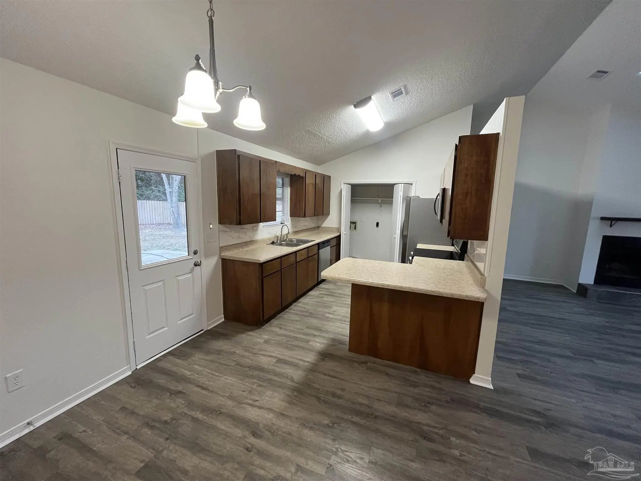 3 bedroom, 2 bath home located in North West Pensacola. Pebble Creek S/D. 1512 Square Feet of new flooring, new appliances, two new bathrooms, new ceiling fans and lighting fixtures. Vaulted living room ceiling with two Sky Lights and Wood Burning Fireplace. Master bedroom with oversized walk-in closet. The long Front Porch runs 6 X 36. A good sized fenced rear yard. Double Car Garage. New Water Heater, Recent Septic Tank Install and recent Roof installation. See document section for a list of recent improvements.