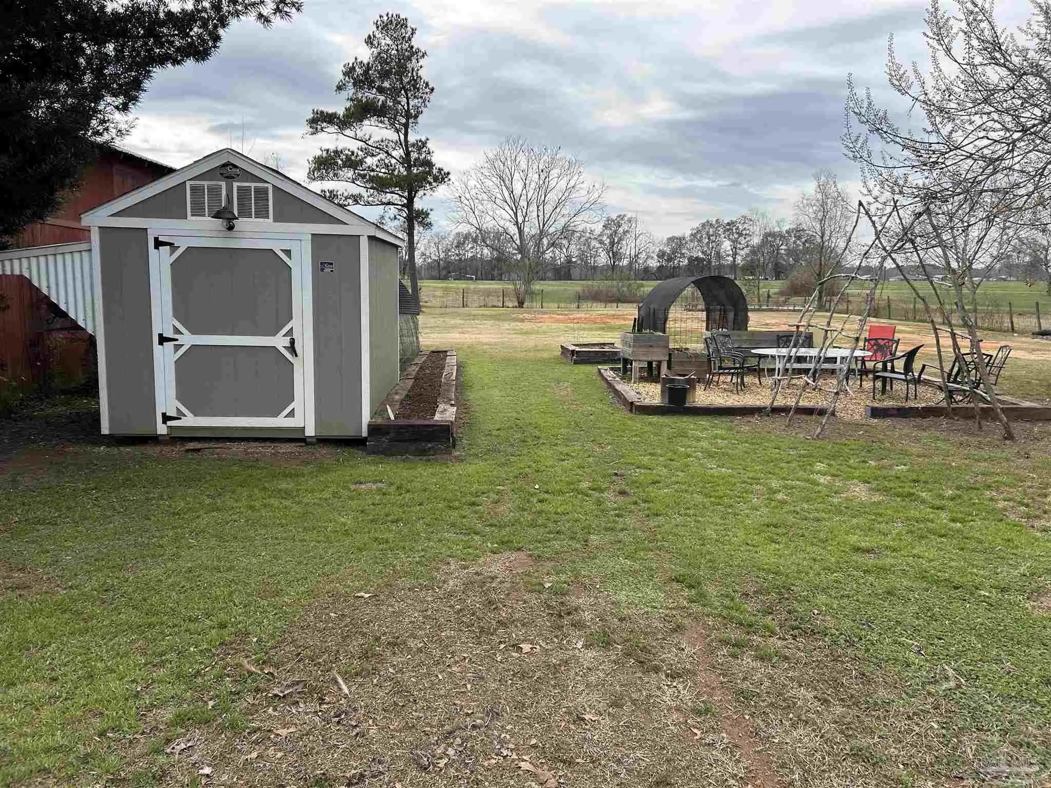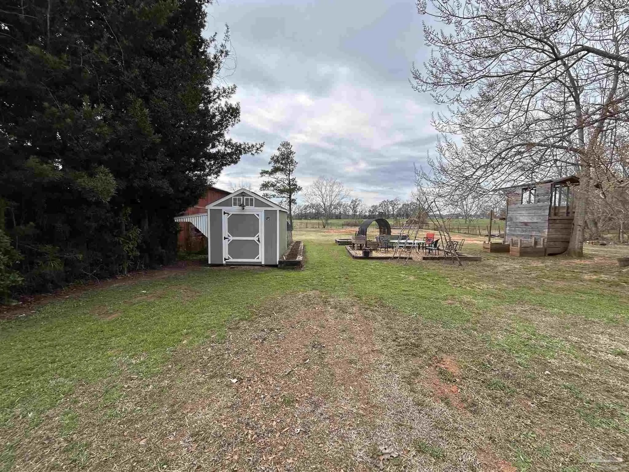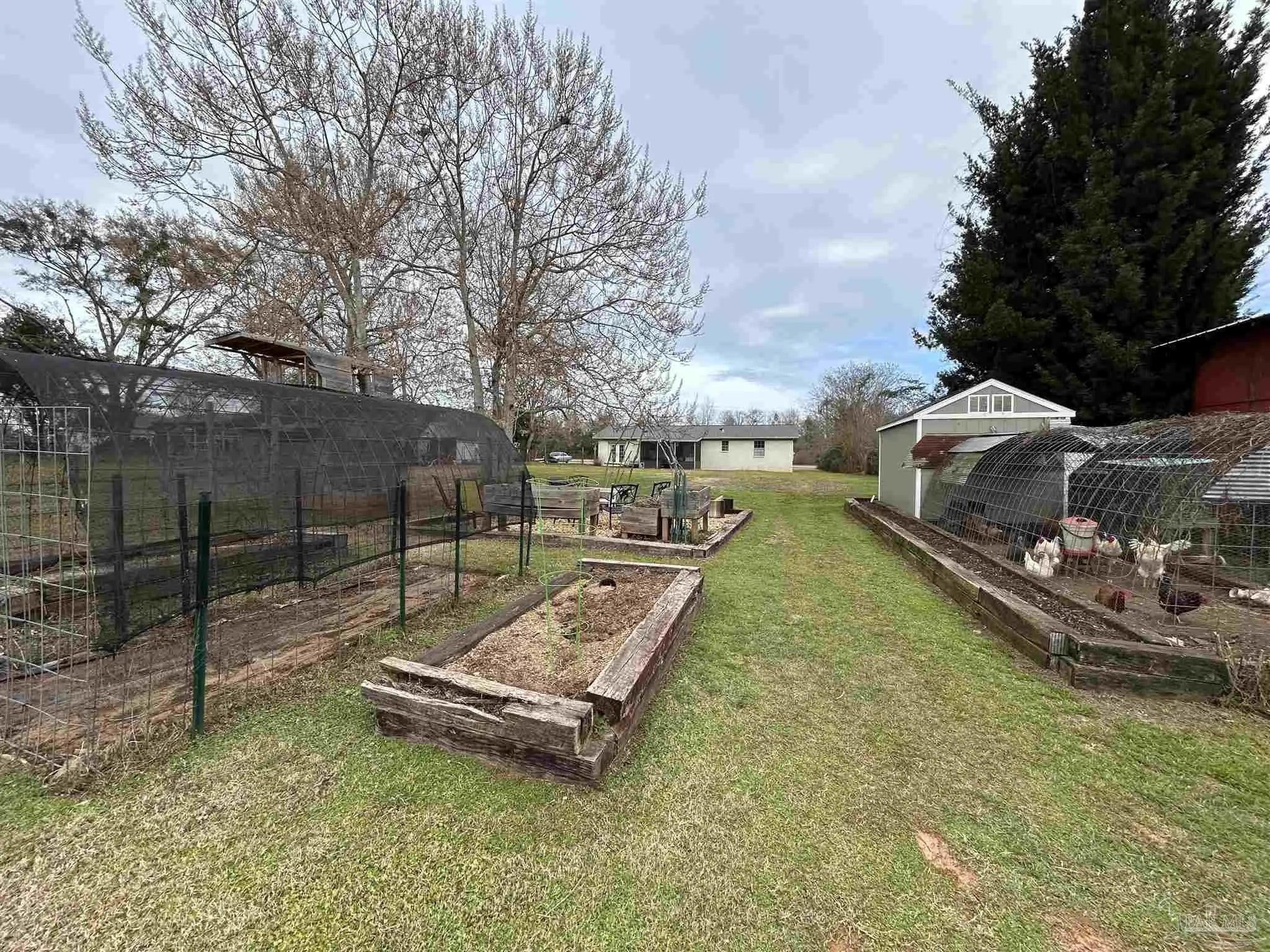 Welcome to this spacious four-bedroom, two-bath ranch-style home situated on a full acre in a peaceful rural setting within an up-and-coming area. Step inside to an open floor plan designed for easy entertaining and comfortable everyday living. The seamless flow between the living, dining, and kitchen areas creates a welcoming space for gatherings and daily life alike. The outdoor features truly set this property apart. Enjoy a charming chicken coop, a playhouse, multiple garden areas, and a variety of established trees including Princess tree, Cypress, and Purple Heart, along with mature fruits and vegetables ready to be enjoyed from your own backyard. With plenty of room for RV and boat parking, storage buildings, a future pool, and wide-open space for kids and pets to run and play, this property offers flexibility and opportunity to make it your own.