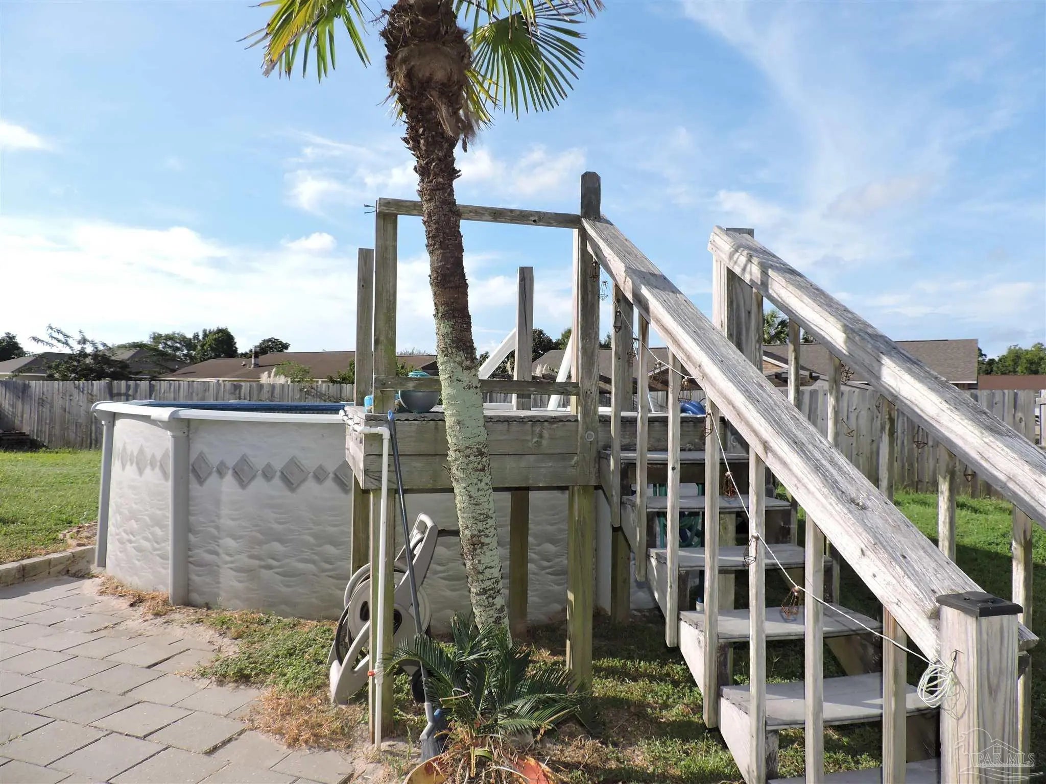 Easy access to bases & Perdido Key! Fully furnished home. Wood-look vinyl plan, tile & wood laminate flooring throughout. Living room with decorative fireplace, recessed lighting, ceiling fan & wet bar. Formal dining room. Family room with access to sun room. Fully equipped kitchen. Reading nook located off living room with ceiling fan & vaulted ceiling. Ceiling fans in all bedrooms. Updated bathroom with double vanity, soaking tub & oversized shower. Laundry area located in garage & includes washer & dryer -- units are "as is" - no warranty. Privacy fenced backyard with above ground pool, open patio & outdoor kitchen area. Small pets considered with owner approval.