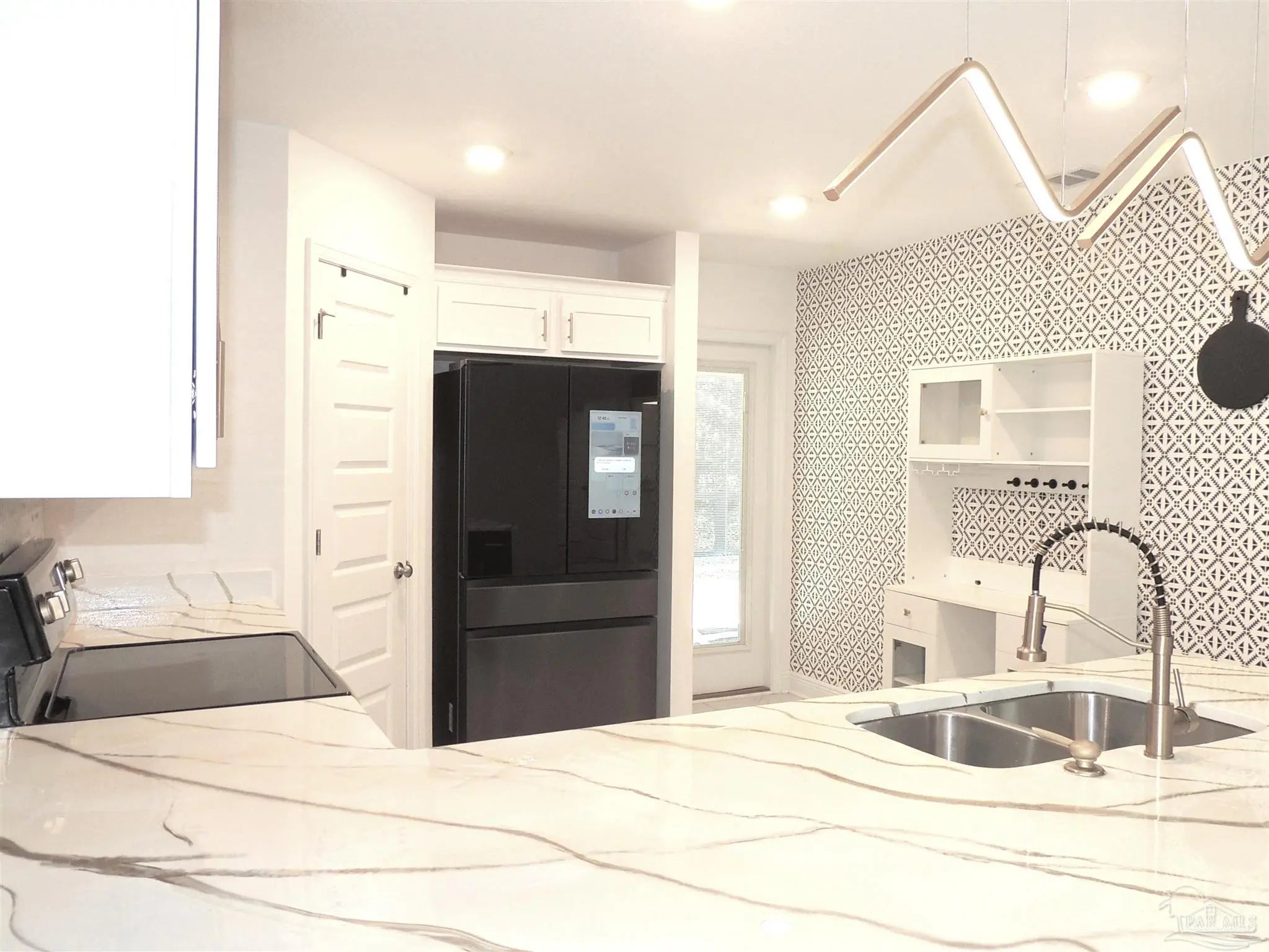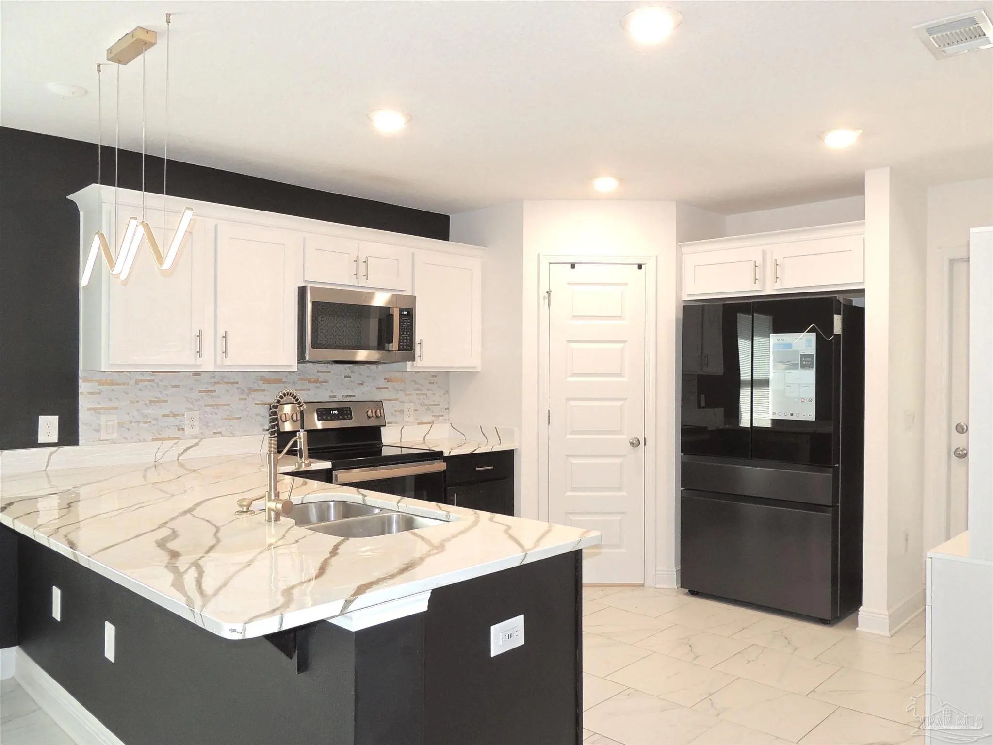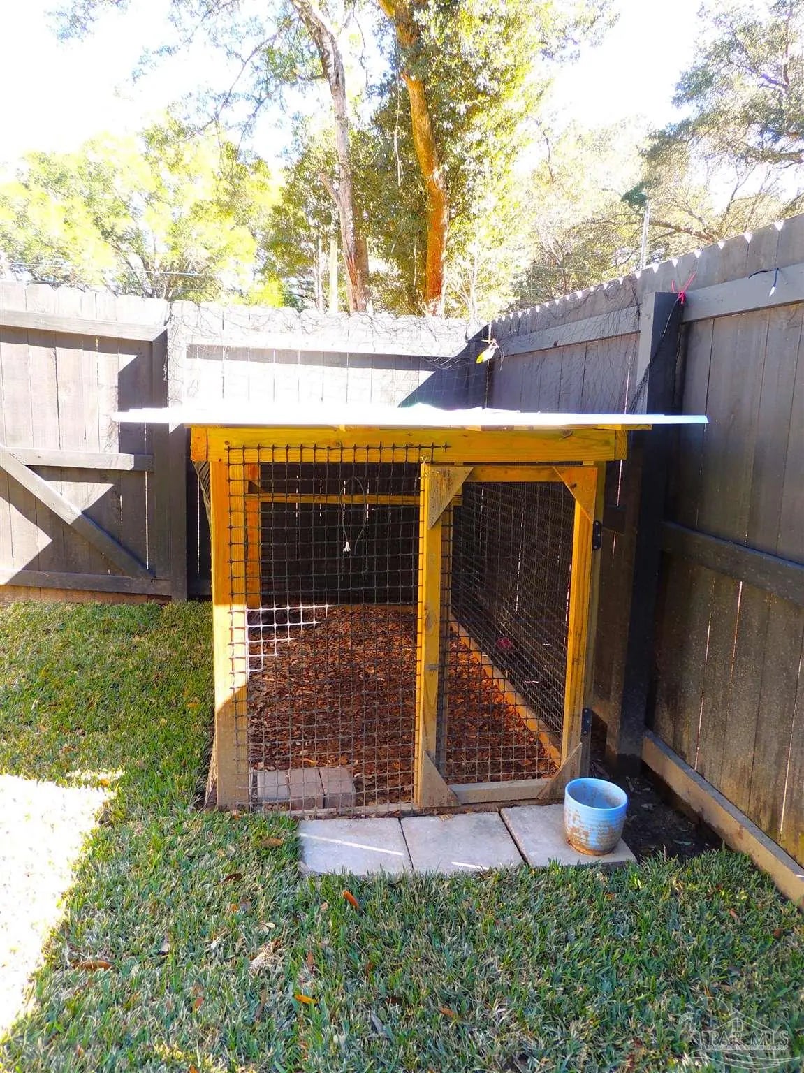 At just barely 3 years old, this highly coveted Flynn-built craftsman home is move-in ready with tons of upgrades and bonuses! Upon approach, you’ll notice the extra-wide driveway giving you plenty of parking space as well as the front porch just right for relaxing with your morning coffee. Prepare to fall in love as you enter the wide open living room featuring an elegant boxed ceiling with recessed lighting, floating electric fireplace that includes many features (most importantly right now is the extra heat!), and an 84” smart TV excellent for watching movies or live sports. Open to the living room, the kitchen is a dream including gorgeously unique custom countertops & backsplash, large step-in pantry for added storage, chic appliances with gold accents including a Samsung Smart Refrigerator with touch screen, stylish fixtures, and an extra-long breakfast bar for casual dining & easy conversation. There is just enough room for a small breakfast table if so desired. The primary bedroom also features an elegant boxed ceiling along with a walk-in closet with pocket door, and a 64” smart TV for those of us that enjoy watching TV in bed. The primary bathroom includes tall double vanity with granite countertops, a spacious garden tub/shower combo, gold accented fixtures, and windows for nice, natural light. The conveniently located laundry room complete with washer and dryer is situated right off of the garage and just down the short hall to the primary bedroom. You wouldn’t have to tote your laundry across the house. As you step out back into the fully-fenced backyard, you’ll find a generous covered patio complete with patio furniture as well as a fan to keep you cool while you enjoy relaxing or entertaining. Concerned about the price of eggs? Here. you’ll have your own chicken coop ready to go. Priced to move! Call for your private tour today!