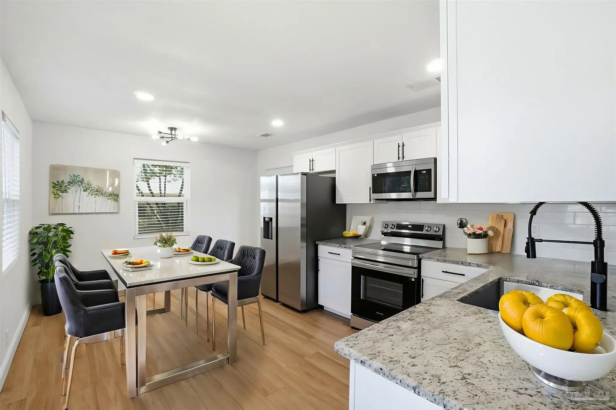 Welcome to this completely renovated home offering 1,125 square feet of comfortable living. Inside, you’ll love the easy -care durable luxury vinyl plank flooring throughout most of the home. The modern kitchen is complimented by sleek granite countertops, New white cabinets, stylish white tiled kitchen backsplash and stainless steel appliances that give the home that fresh, modern feel. A large laundry room adds extra convenience and storage. Beautifully renovated bathroom has tile floors, solid surface countertop, new vanity and a fully tiled tub surround. Thoughtfully updated from top to bottom, new windows, new wiring, new plumbing, freshly painted, and all new fixtures. This move-in-ready property blends classic charm with contemporary finishes. Roof, water heater and hvac 2024. Electrical update in 2024 —don’t miss your chance to make it yours.