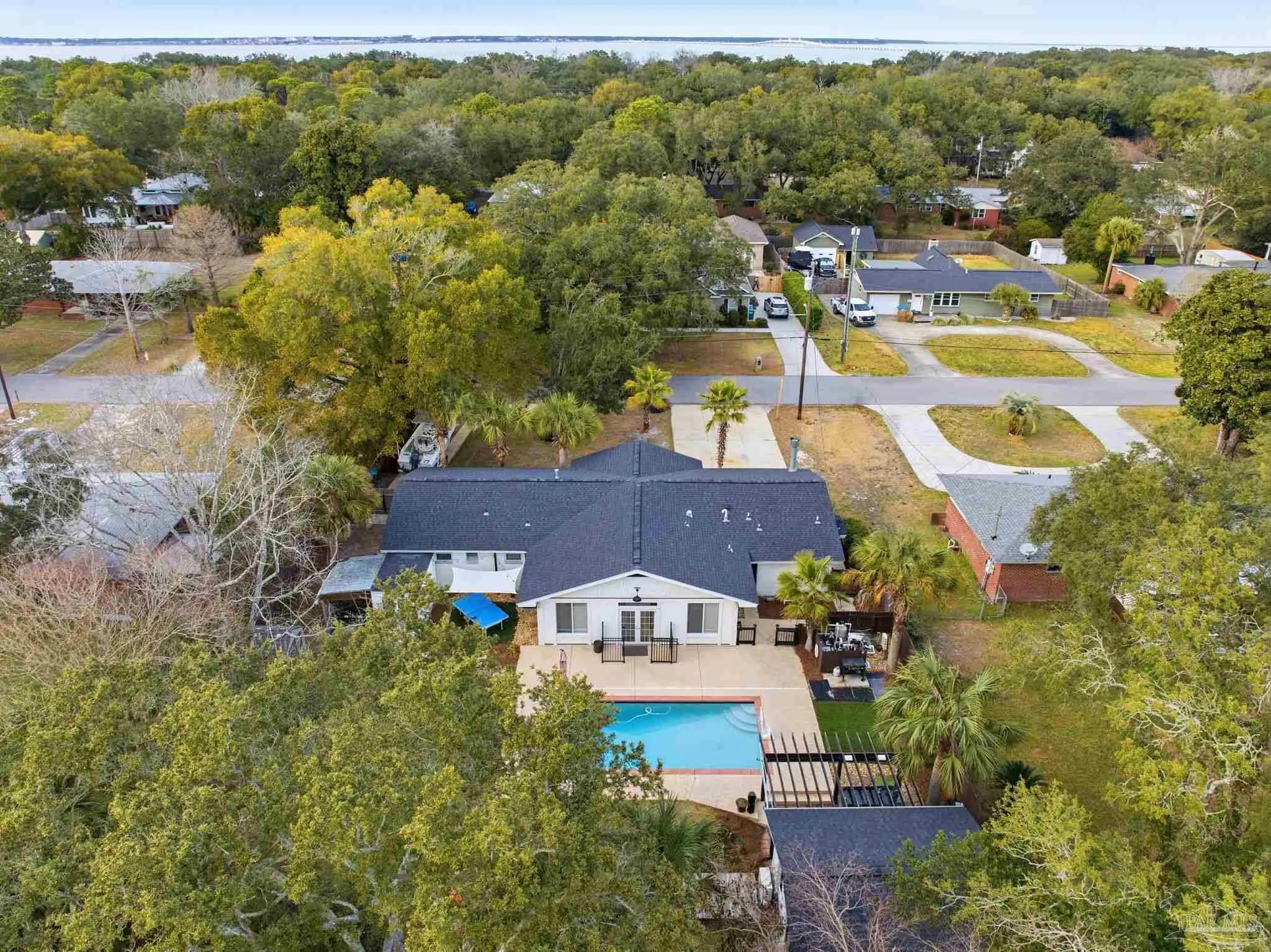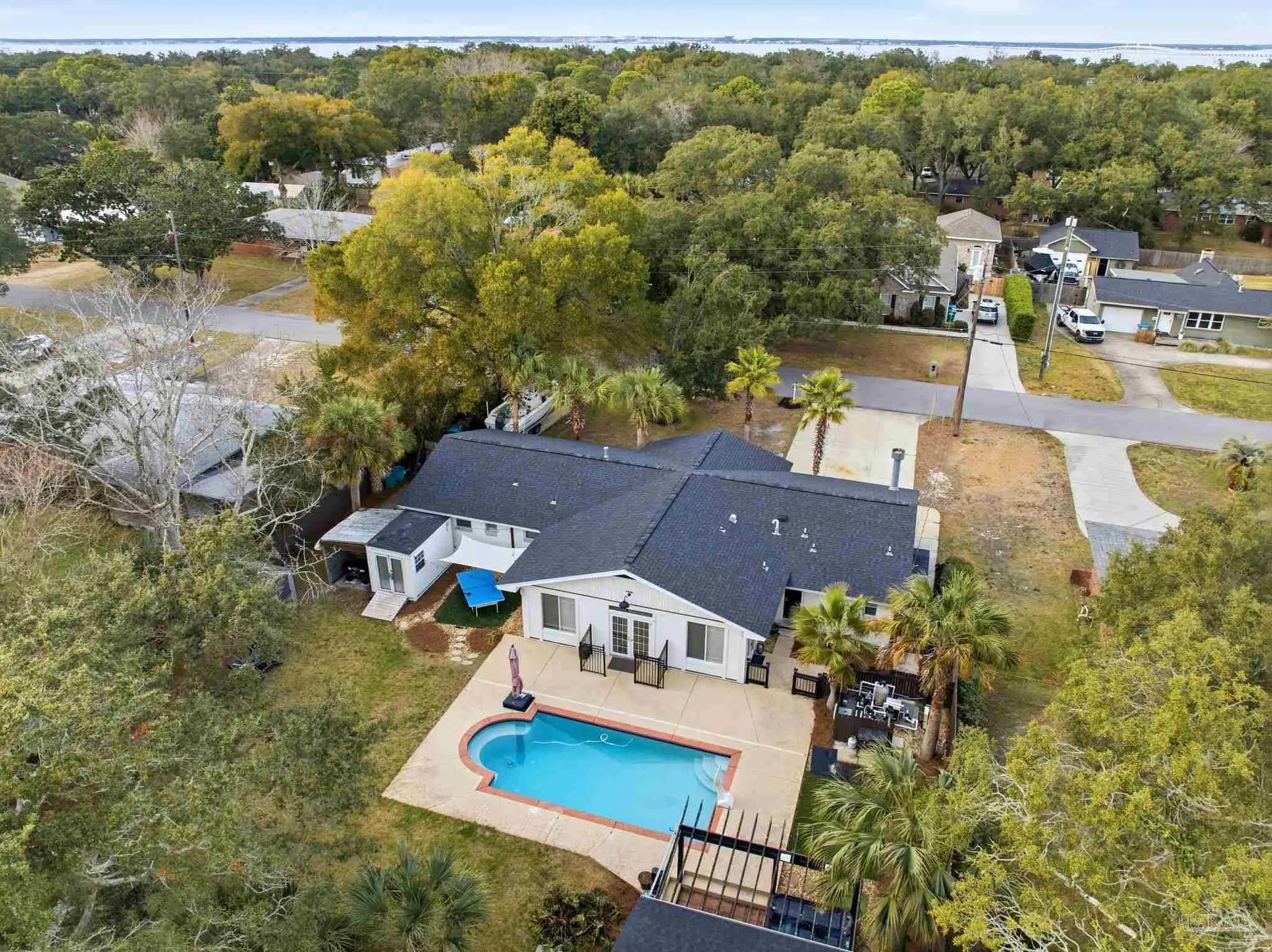 Location, location, location. Luxury and lifestyle converge in this beautifully landscaped ranch-style pool home located in the heart of Gulf Breeze Proper. With 4 bedrooms and 3.5 baths, this light-filled residence offers refined upgrades, generous living spaces, and exceptional indoor-outdoor flow, perfect for both everyday living and elevated entertaining.This home has been thoughtfully and extensively updated, beginning with a new roof in 2021 and a new HVAC system in 2025, delivering comfort and peace of mind.Inside, enjoy two expansive living areas, a beautifully appointed kitchen with all-wood cabinetry and a built-in breakfast nook, and a sunken living area with a wet bar and wine fridge, ideal for hosting unforgettable gatherings.Step outside to your own private resort-style oasis. The fully fenced backyard showcases a custom saltwater gunite pool with a heater, fountain, LED lighting, and therapeutic jets in the sitting area. The outdoor half bath, conveniently accessible from the backyard, was renovated in 2025, making poolside entertaining effortless. The pool house, remodeled in 2023, includes a mini-split HVAC system and offers versatile space for guests, a studio, home gym, or office. Just outside the pool house, you’ll find a hot tub with a TV, creating the perfect spot to unwind, watch the game, or relax after a day at the beach. The backyard also includes a shed and a lean-to that will convey with the home, providing ideal storage for surfboards, paddleboards, beach gear, golf carts, and other outdoor toys. Additionally, there is extra space available for parking an RV, boat, or trailer, perfect for those who love adventure and coastal living. Ideally situated just minutes from top-rated schools and the sugar-white sands of Pensacola Beach, this exceptional Gulf Breeze Proper residence offers luxury, versatility, and an unbeatable coastal lifestyle.This is a rare opportunity in one of Gulf Breeze’s most coveted neighborhoods.