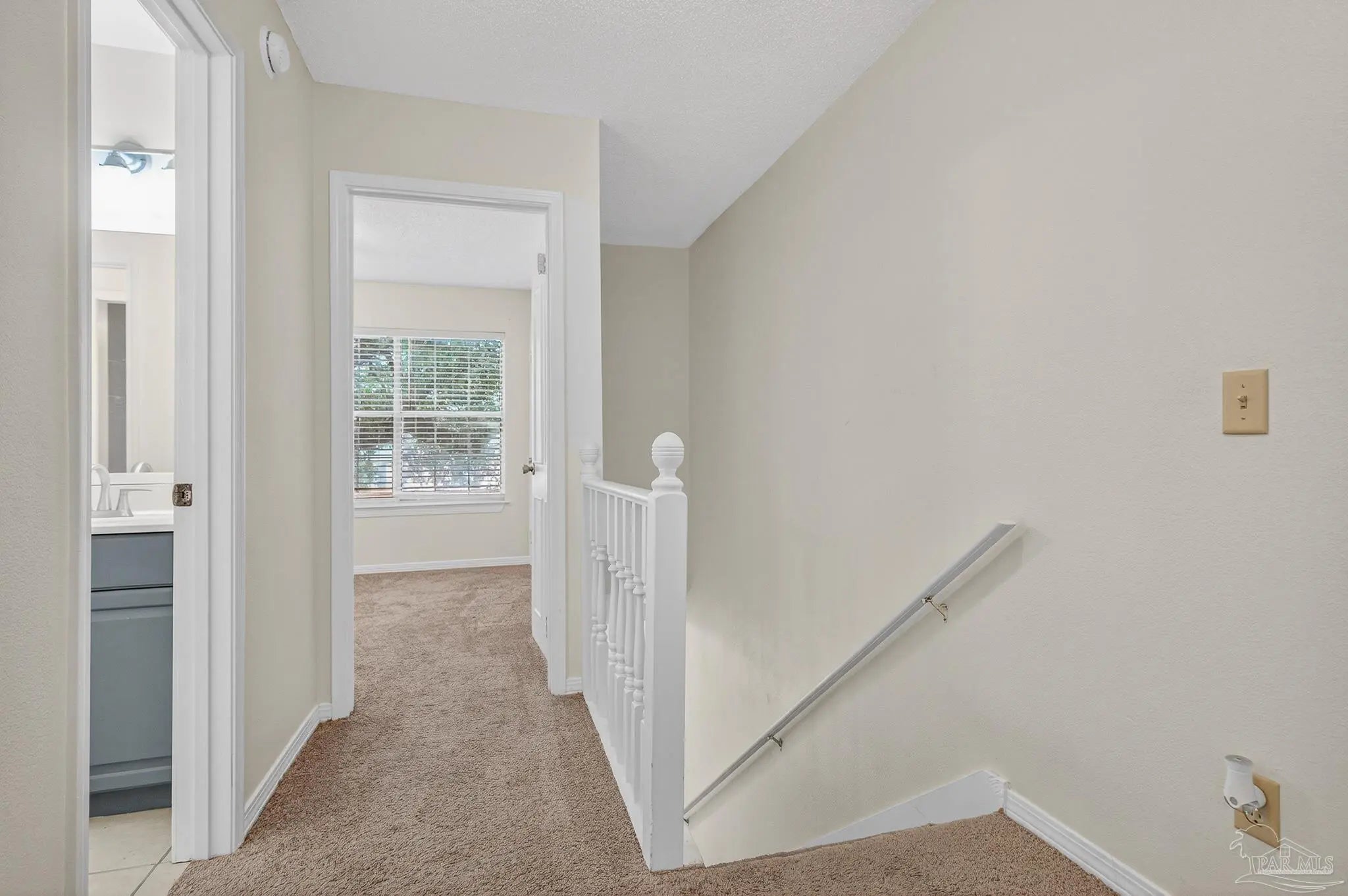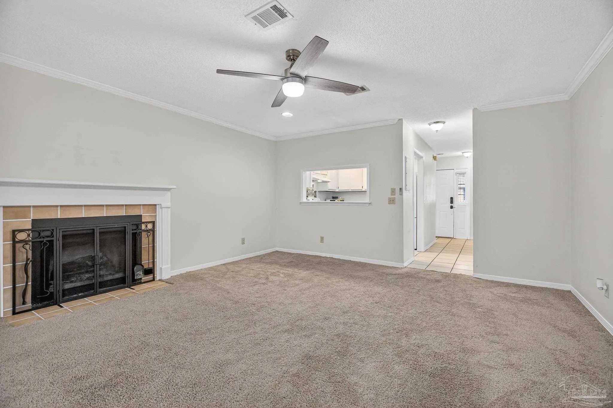 Welcome home to this charming end-unit townhome in the highly sought-after Foxborough community. As a coveted corner unit featuring a private covered back patio, this home offers a level of seclusion and natural light rarely found in mid-row properties. Step inside to a bright, open-concept living and dining area anchored by a cozy fireplace—the perfect centerpiece for crisp Florida evenings. The functional kitchen layout flows seamlessly into the dining space, making hosting friends and family a breeze. For added convenience, the main floor includes a guest-friendly half-bath and a dedicated laundry closet. The second floor is dedicated to rest and privacy, featuring two generously sized bedrooms, each boasting its own large closet. These retreats share a spacious central bathroom equipped with dual sinks and a dedicated linen closet for extra storage. Location is everything; you are within walking distance of the Scenic Heights Country Club and just minutes by car from the University of West Florida, West Florida Hospital, and the 9-Mile Road shopping and dining corridor. Whether you are looking for a move-in-ready personal residence or a high-potential income-producing rental, this townhome is perfectly situated to meet your needs.